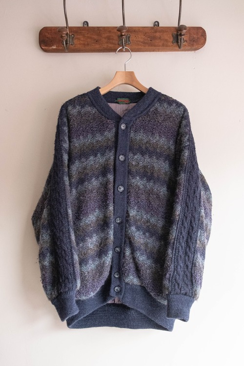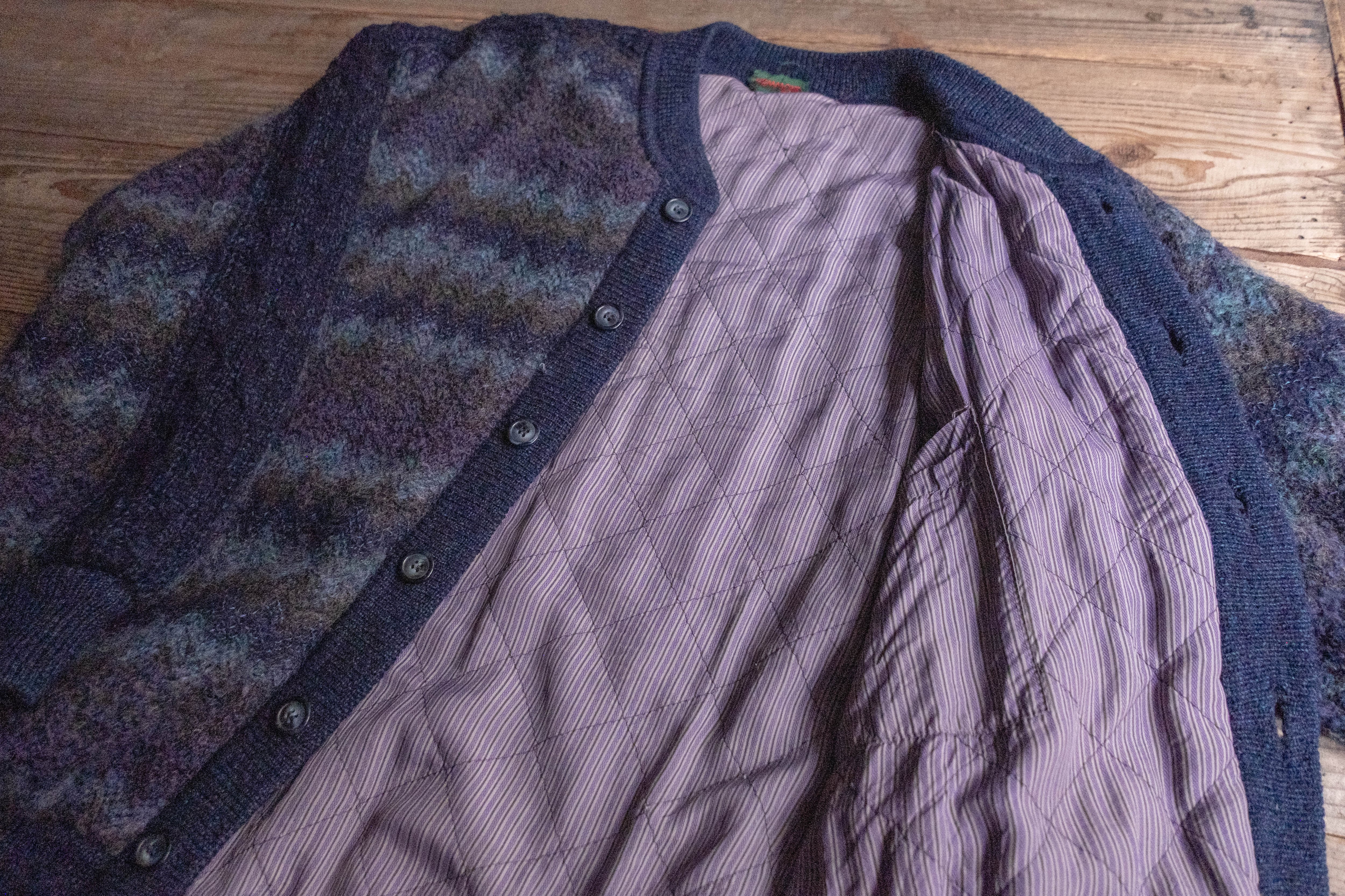 1980〜90年代にヨーロッパでジェントルマンの実用服として一般的だったニットカーディガンジャケット。様々なブランドがこの形で作っていました。