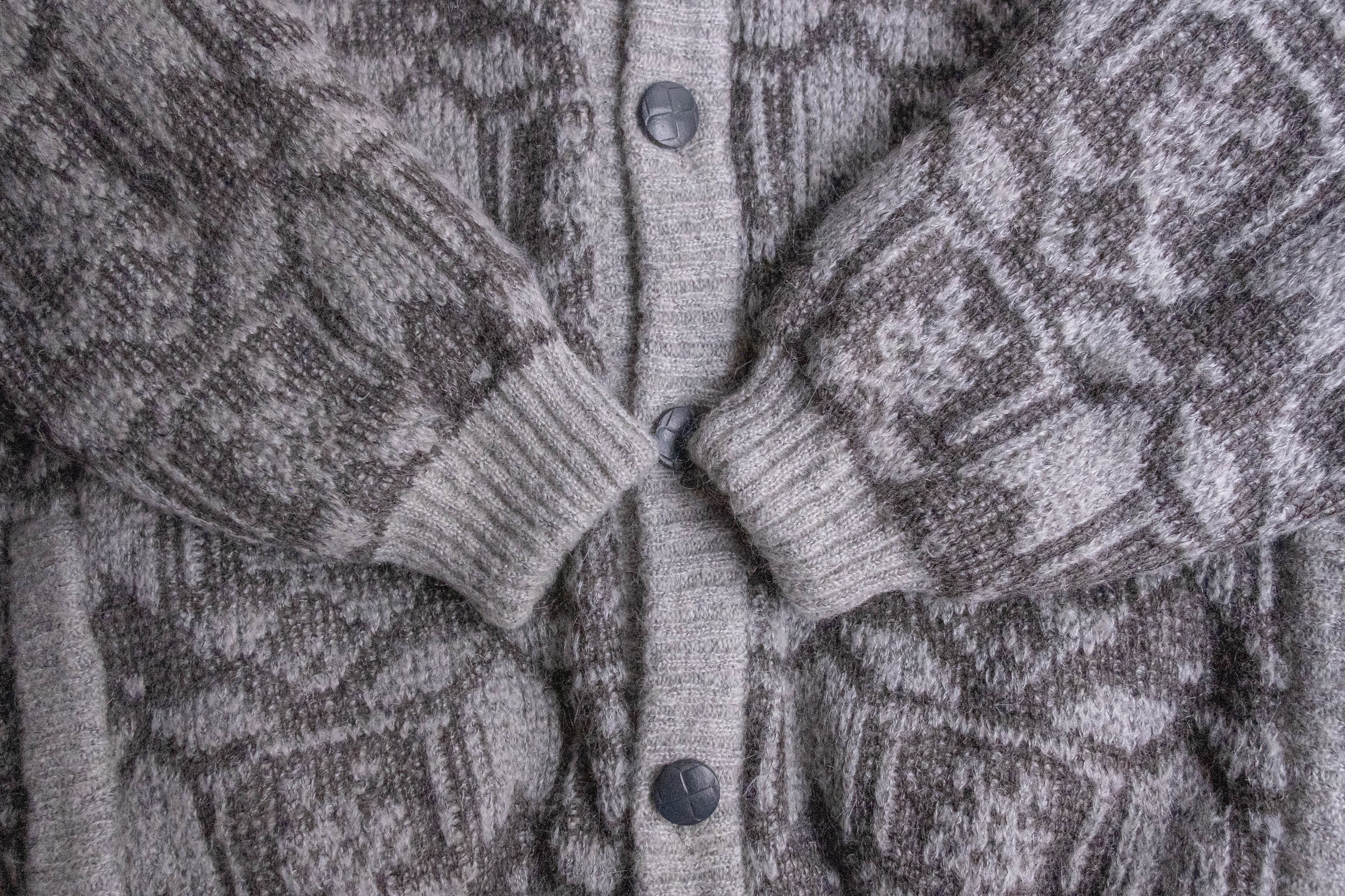 1980〜90年代にヨーロッパでジェントルマンの実用服として一般的だったニットカーディガンジャケット。様々なブランドがこの形で作っていました。