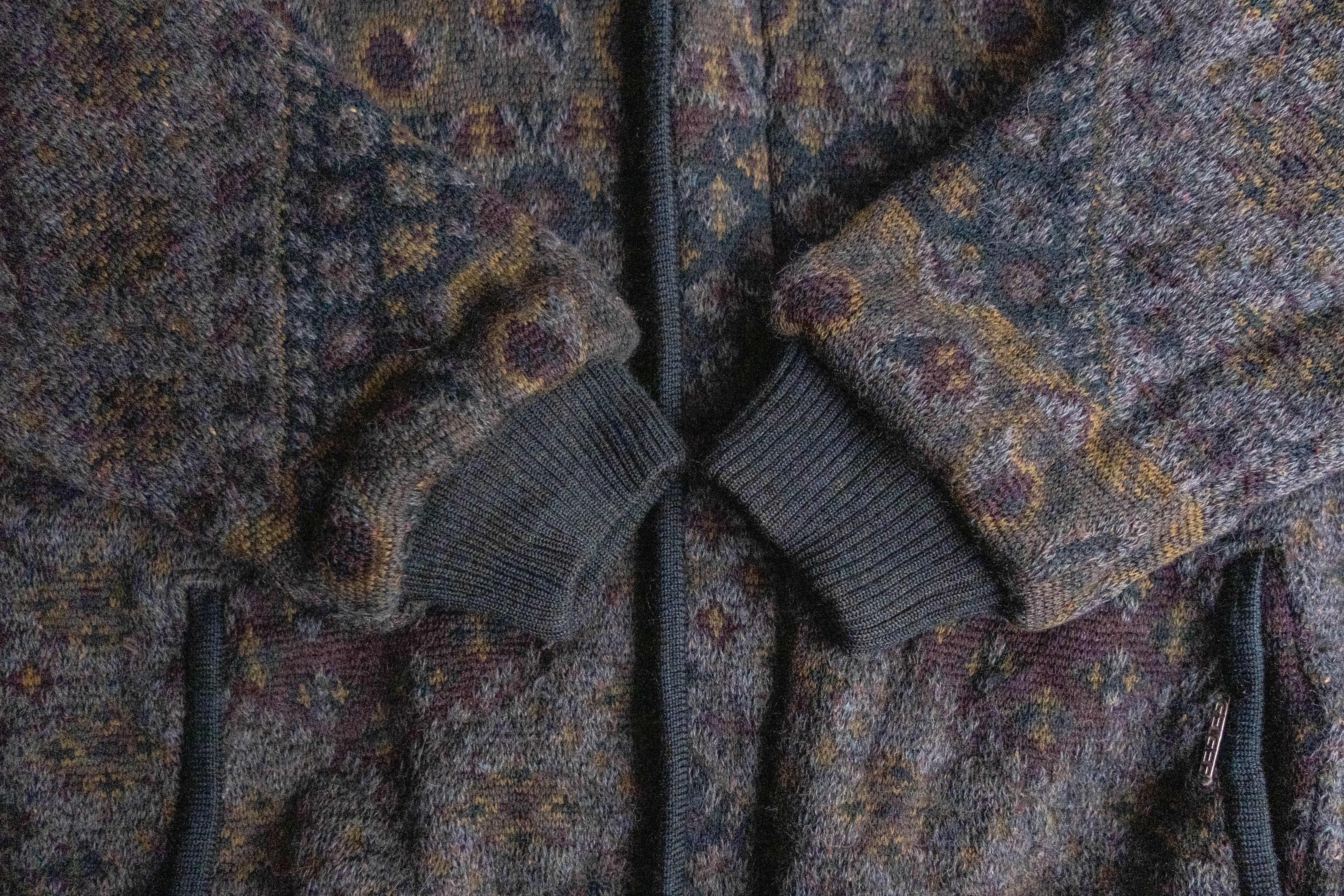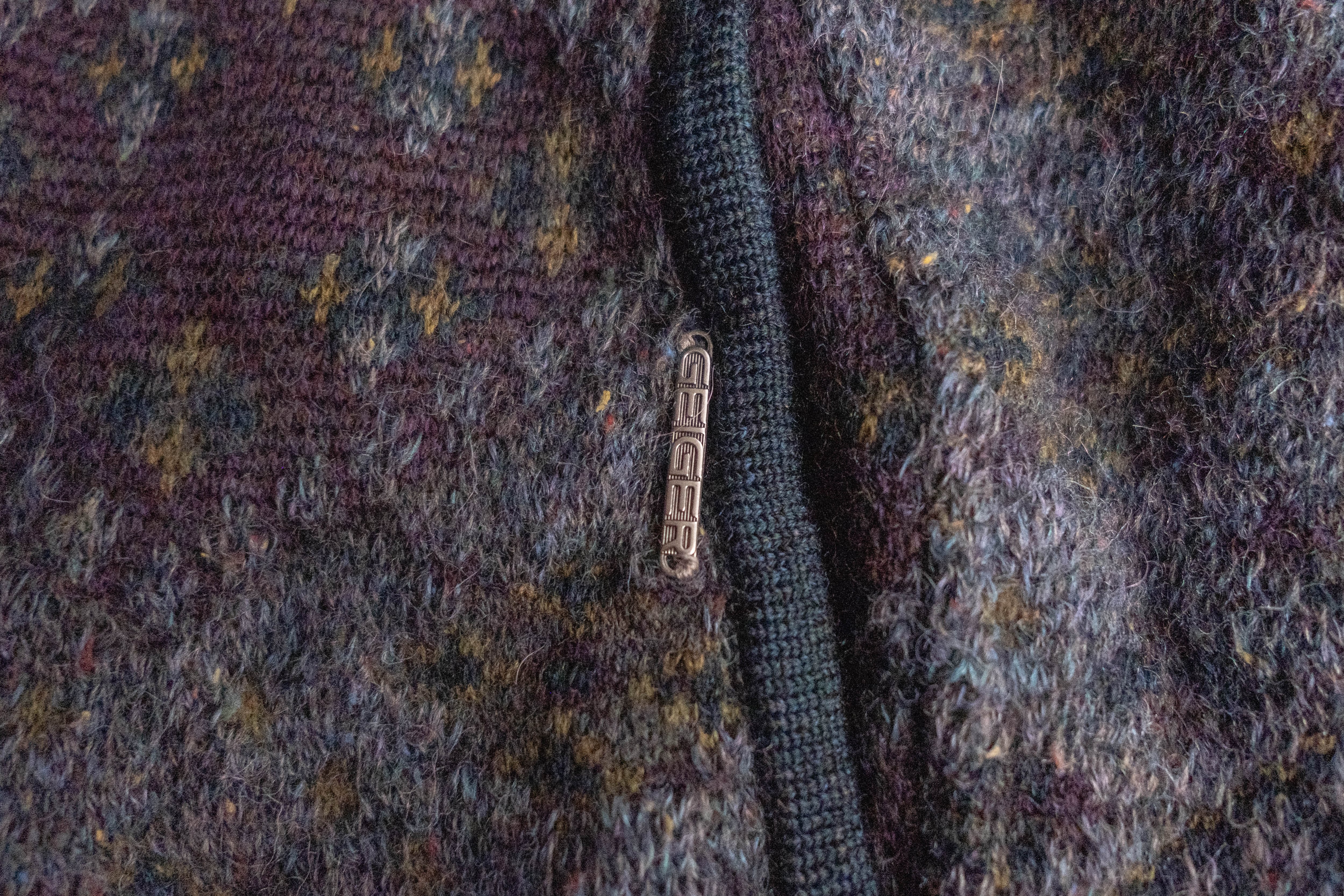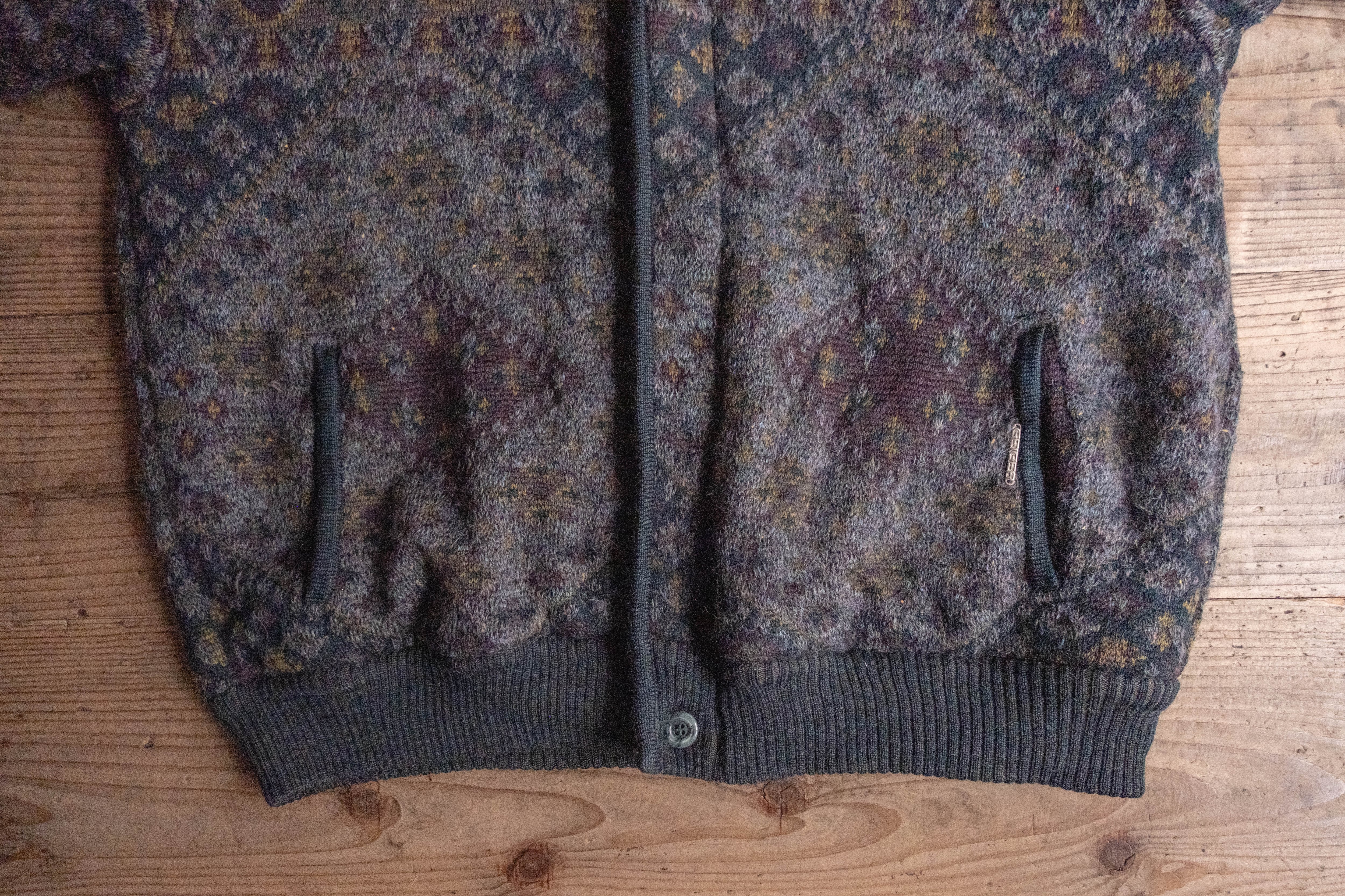 1980〜90年代にヨーロッパでジェントルマンの実用服として一般的だったニットカーディガンジャケット。様々なブランドがこの形で作っていました。