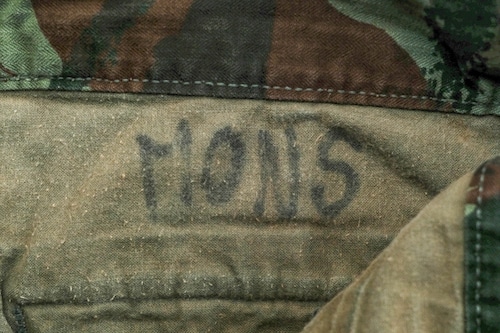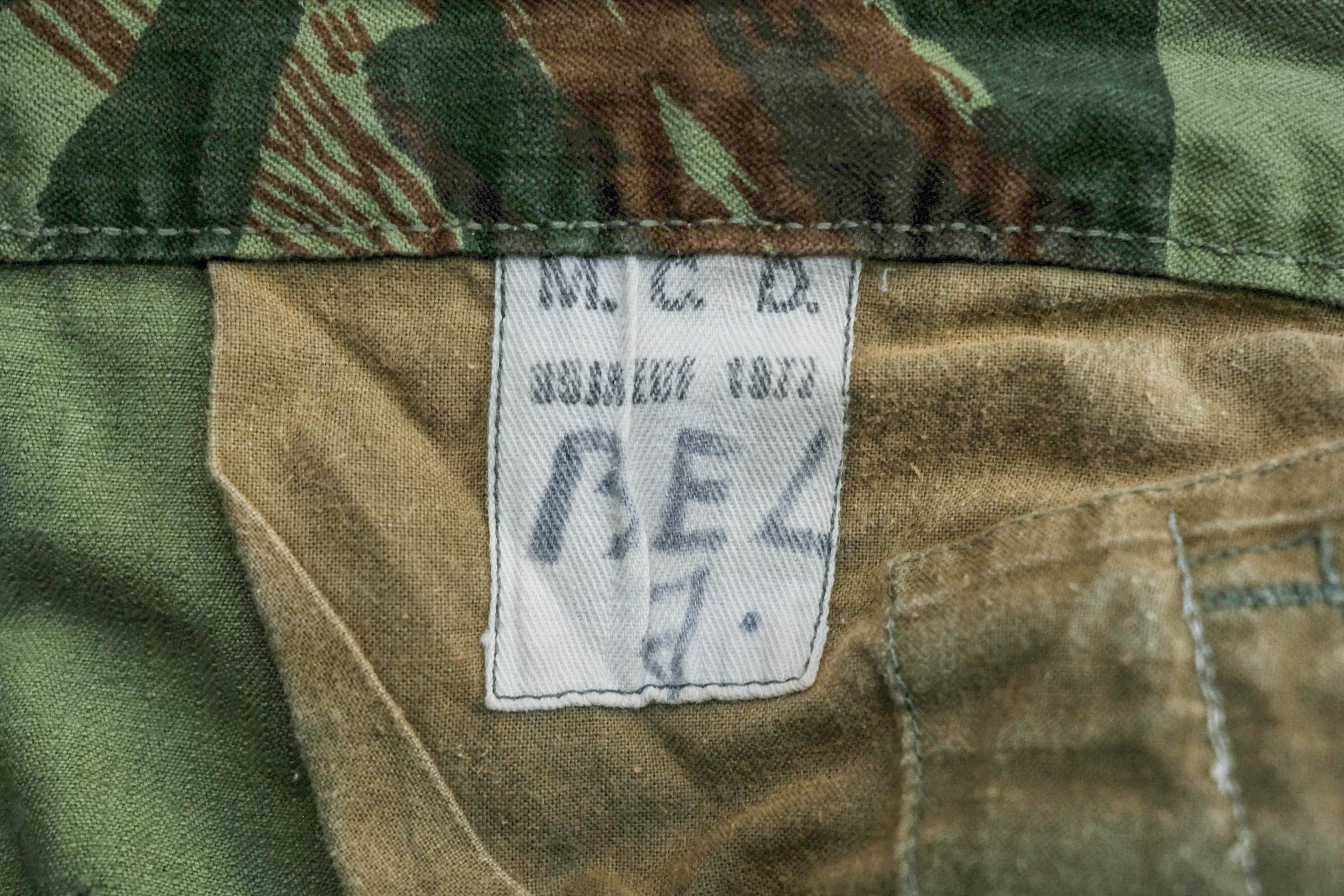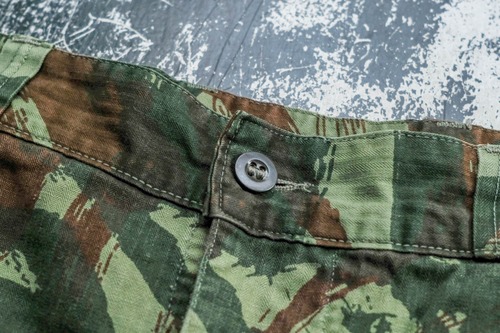 ブラシで描いたような迷彩柄が目を引くパンツはフランス軍外人部隊が使用していたもの。
