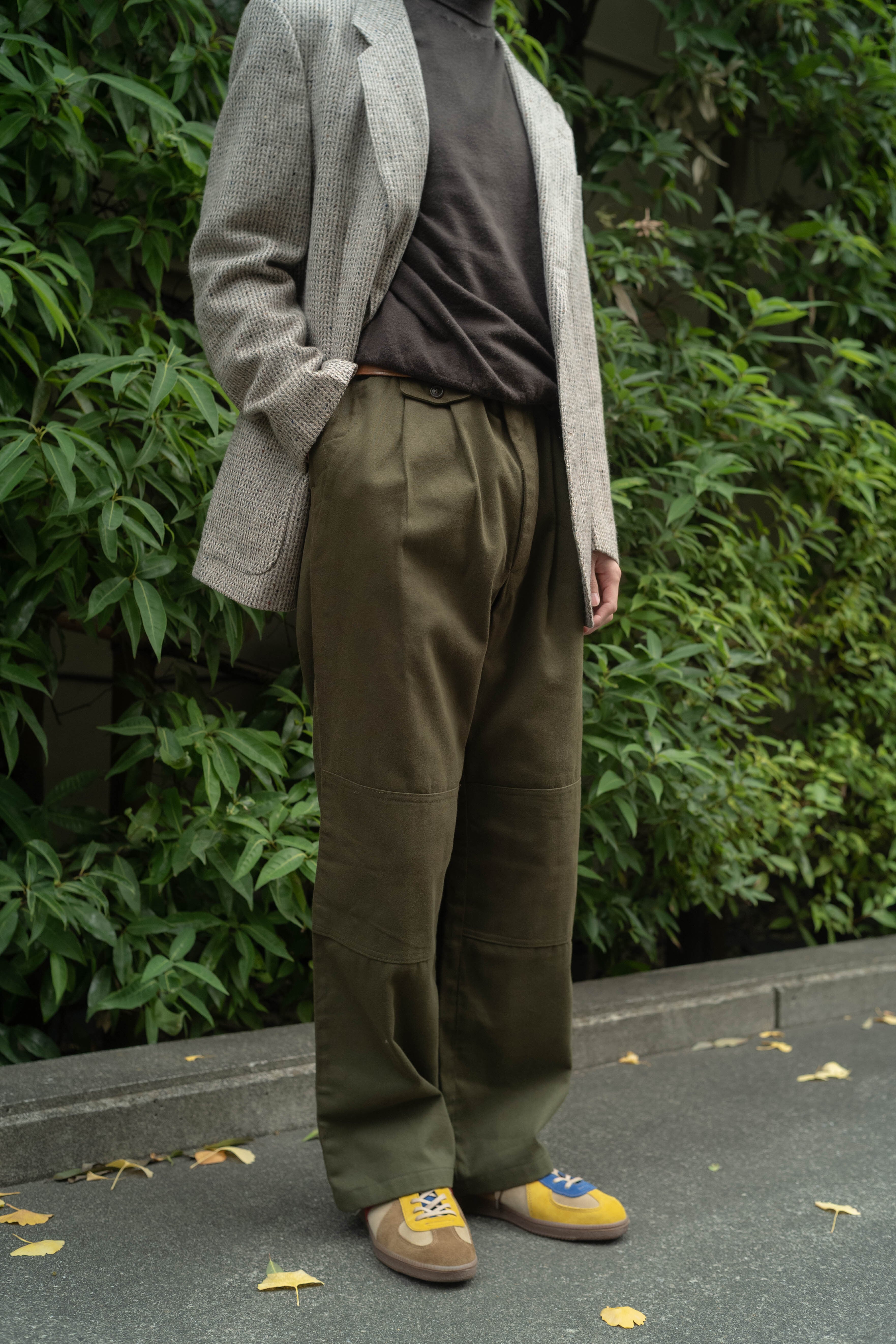 ダブルニーの仕様や、ポケット口、ファスナー前立てのステッチングなど細かい部分まで作り込まれたパンツです。
