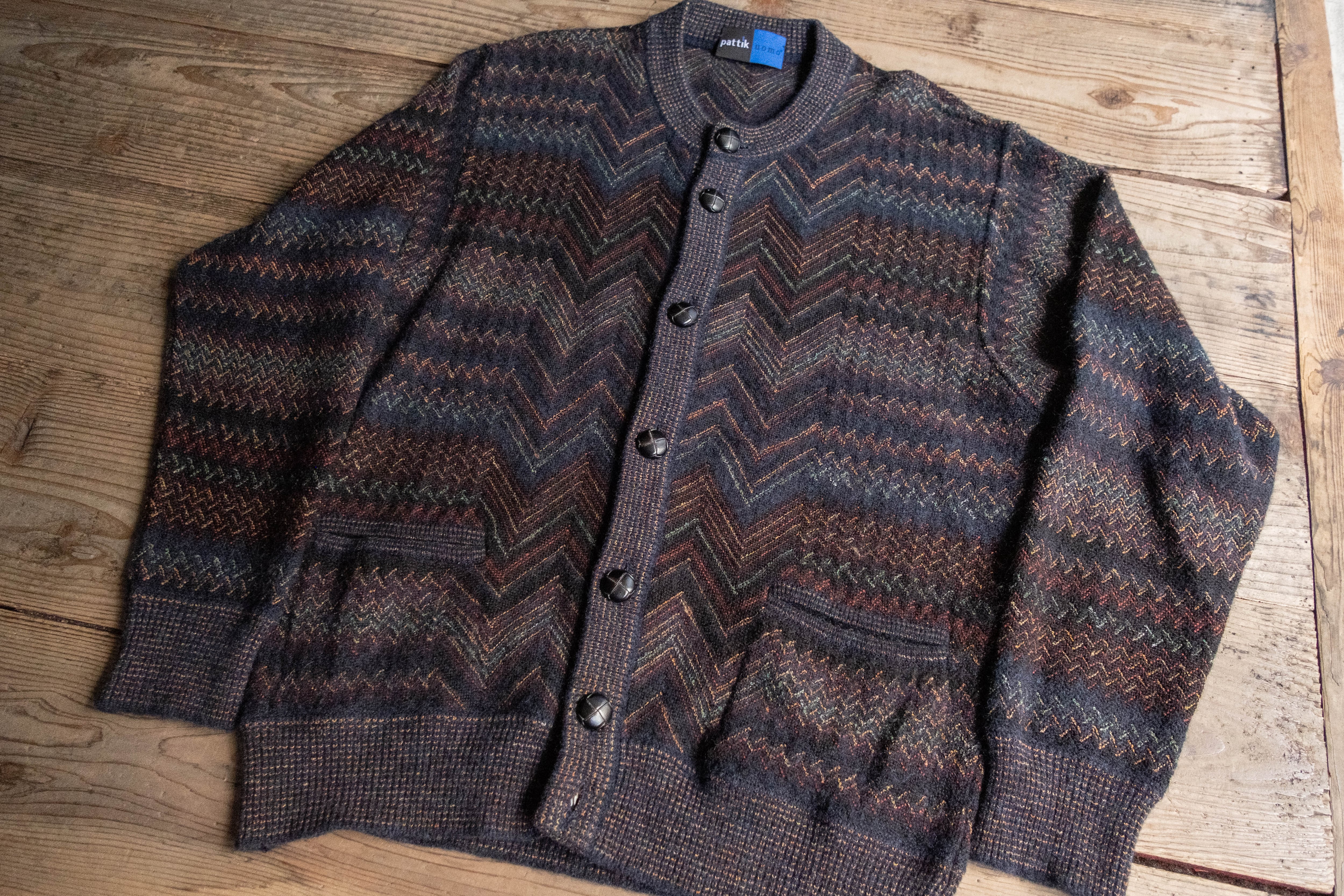 1980〜90年代にヨーロッパでジェントルマンの実用服として一般的だったニットカーディガンジャケット。様々なブランドがこの形で作っていました。