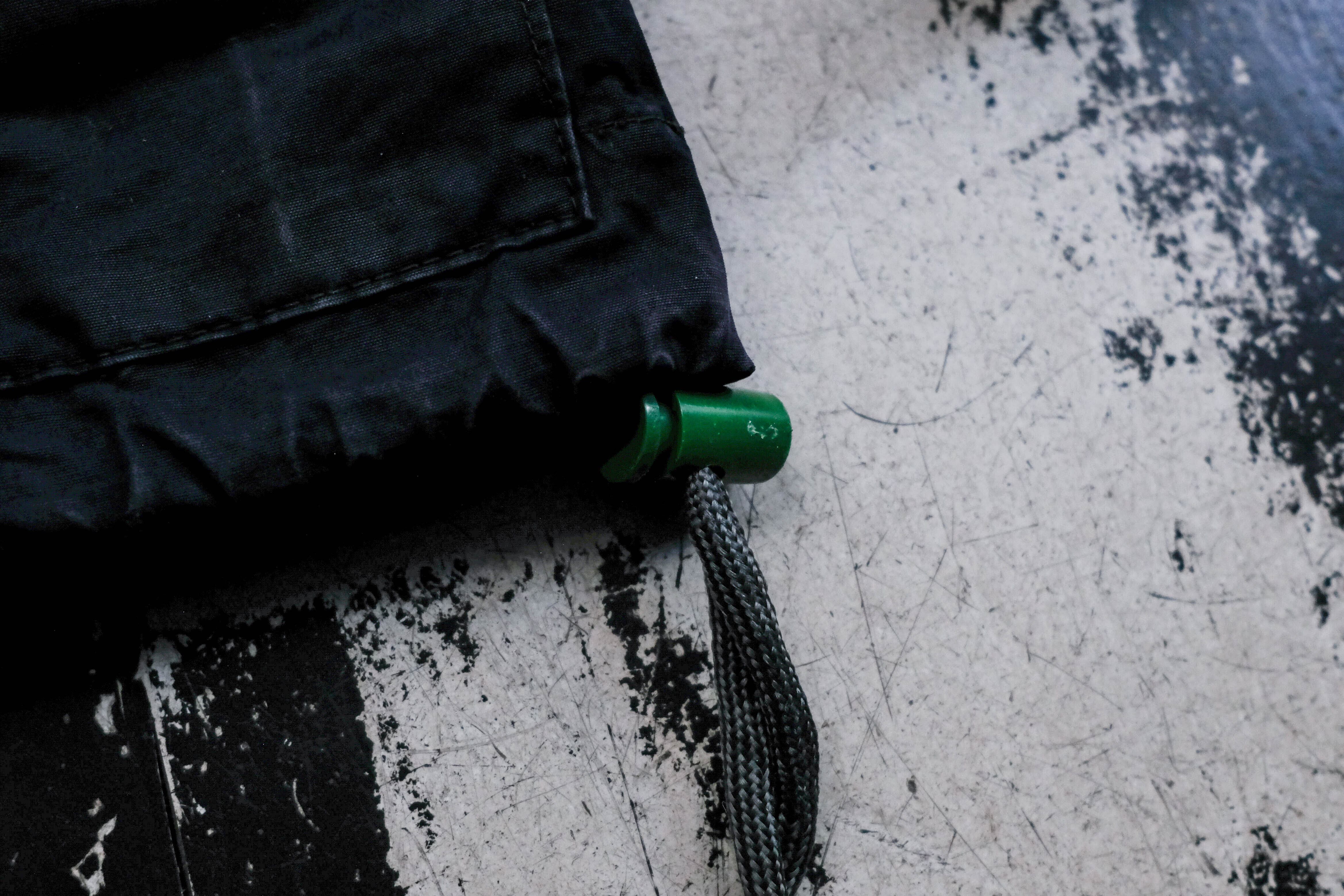 特徴的なコードを通すフラップや高い襟。