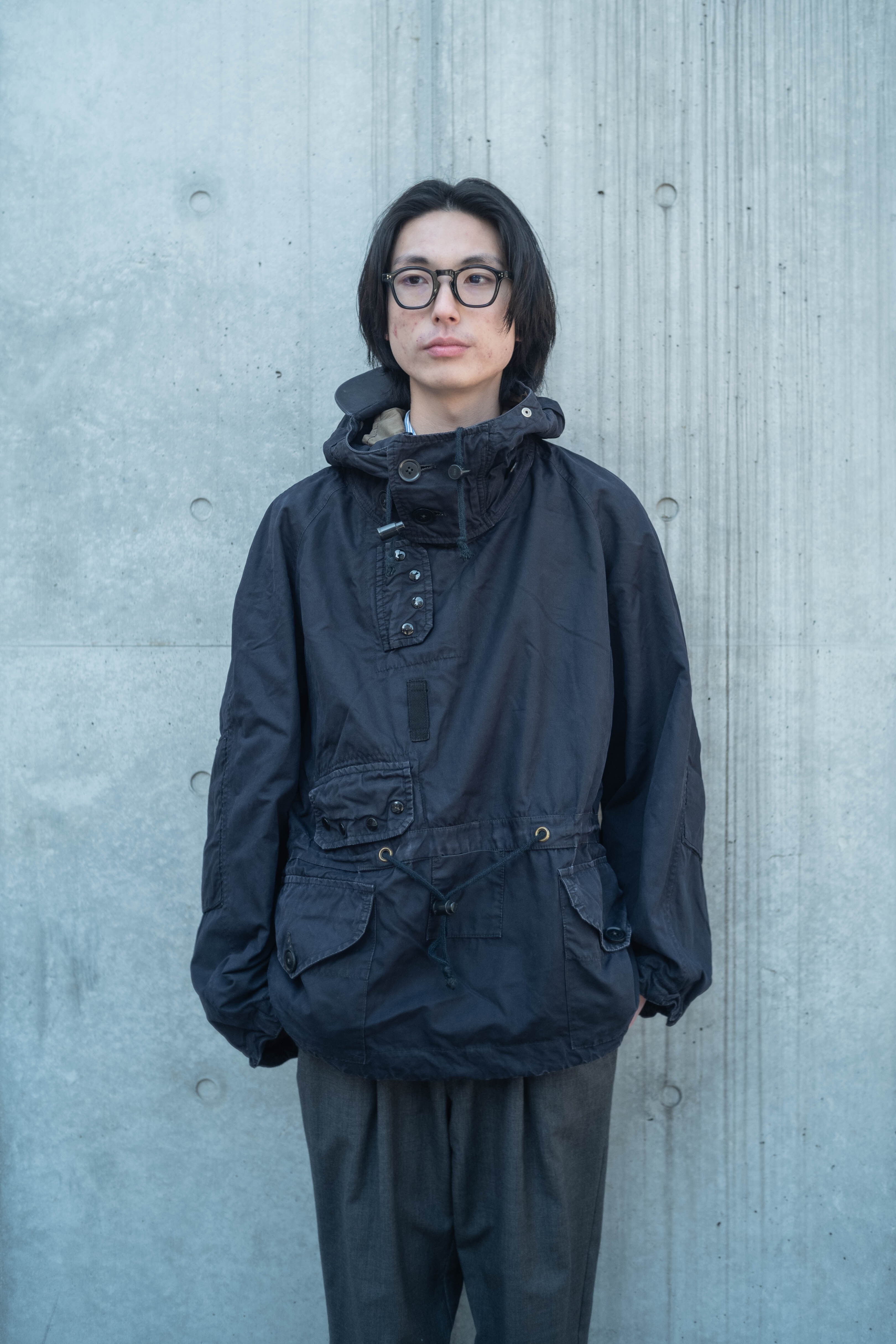 肩が張ることが多いベンタイルスモックですが、こちらの個体は生地がかなり柔らかいおかげかストンと綺麗に落ちてくれます。