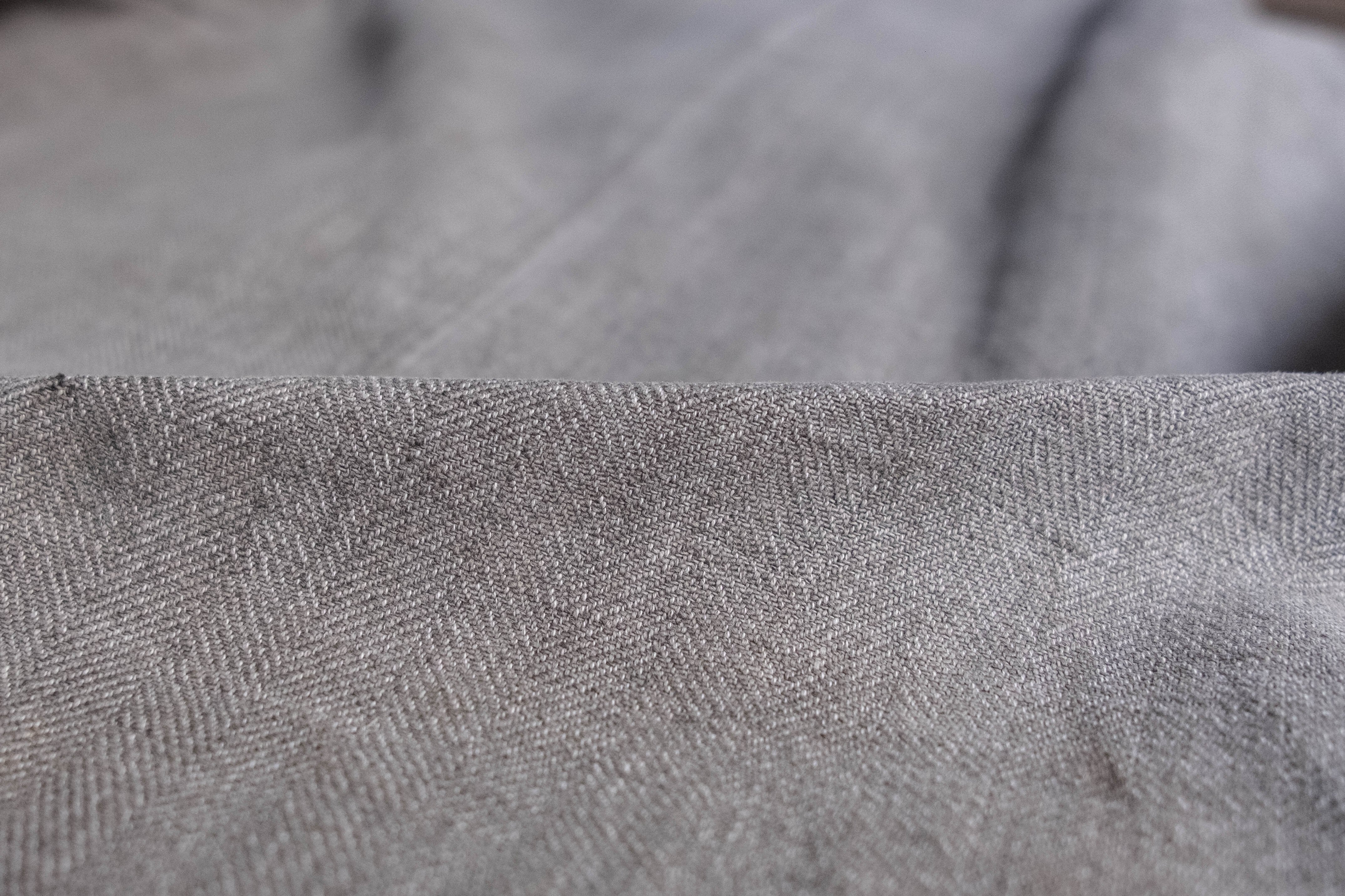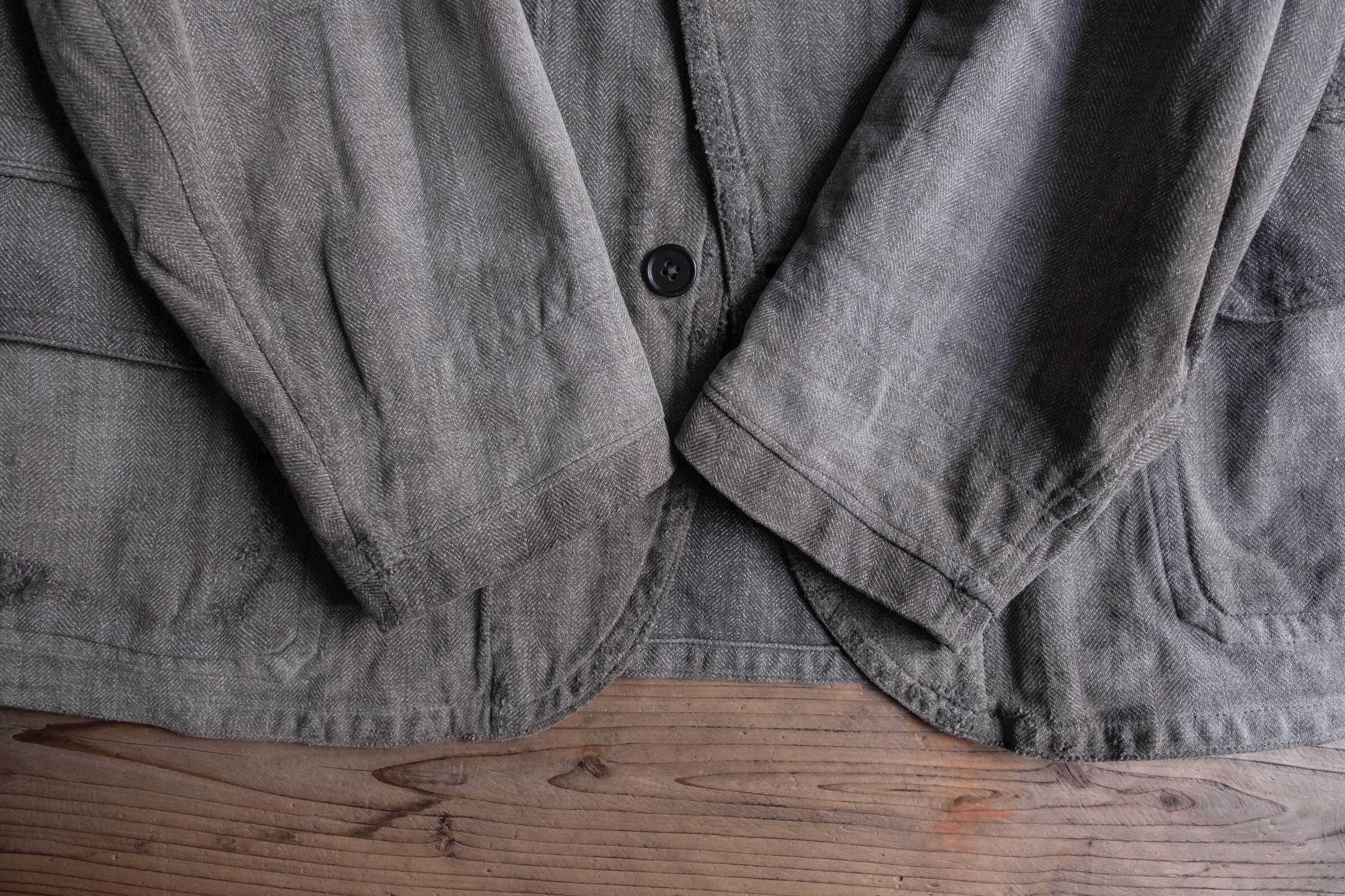 ブラックシャンブレーのヘリンボーン織という奥行きのある生地感です。