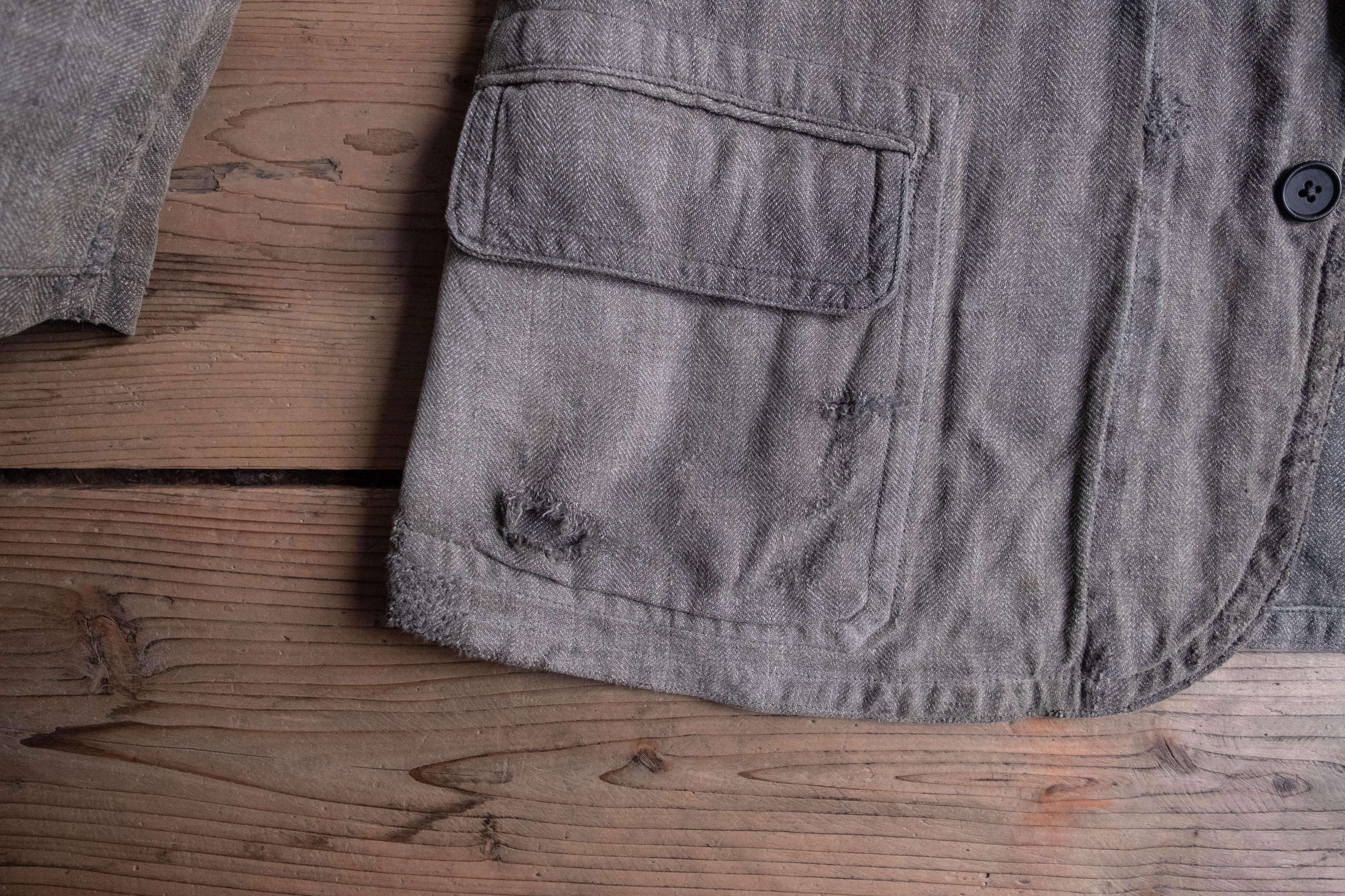 汚れ、破れ、ほつれ、リペア跡など多数ダメージがあります。