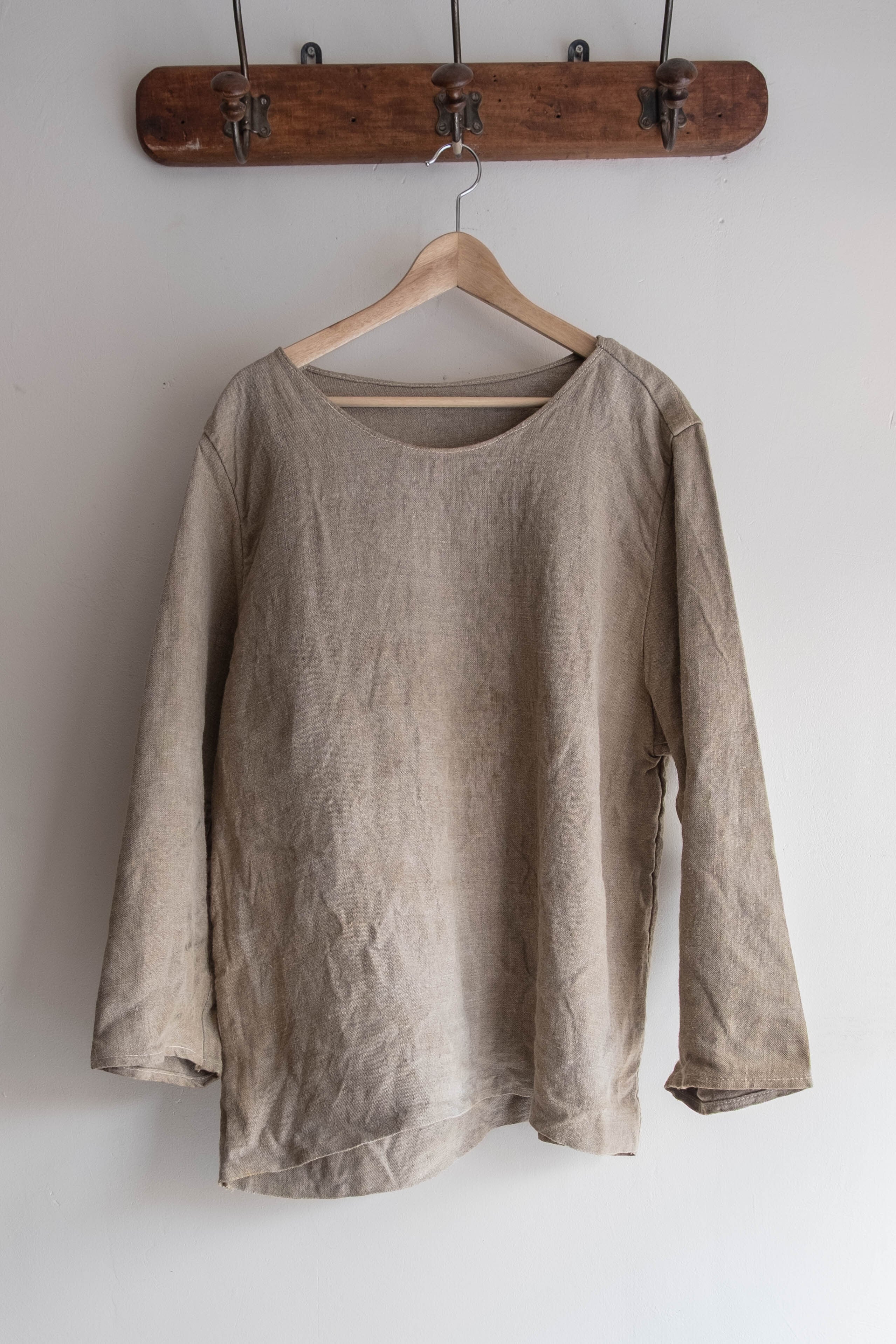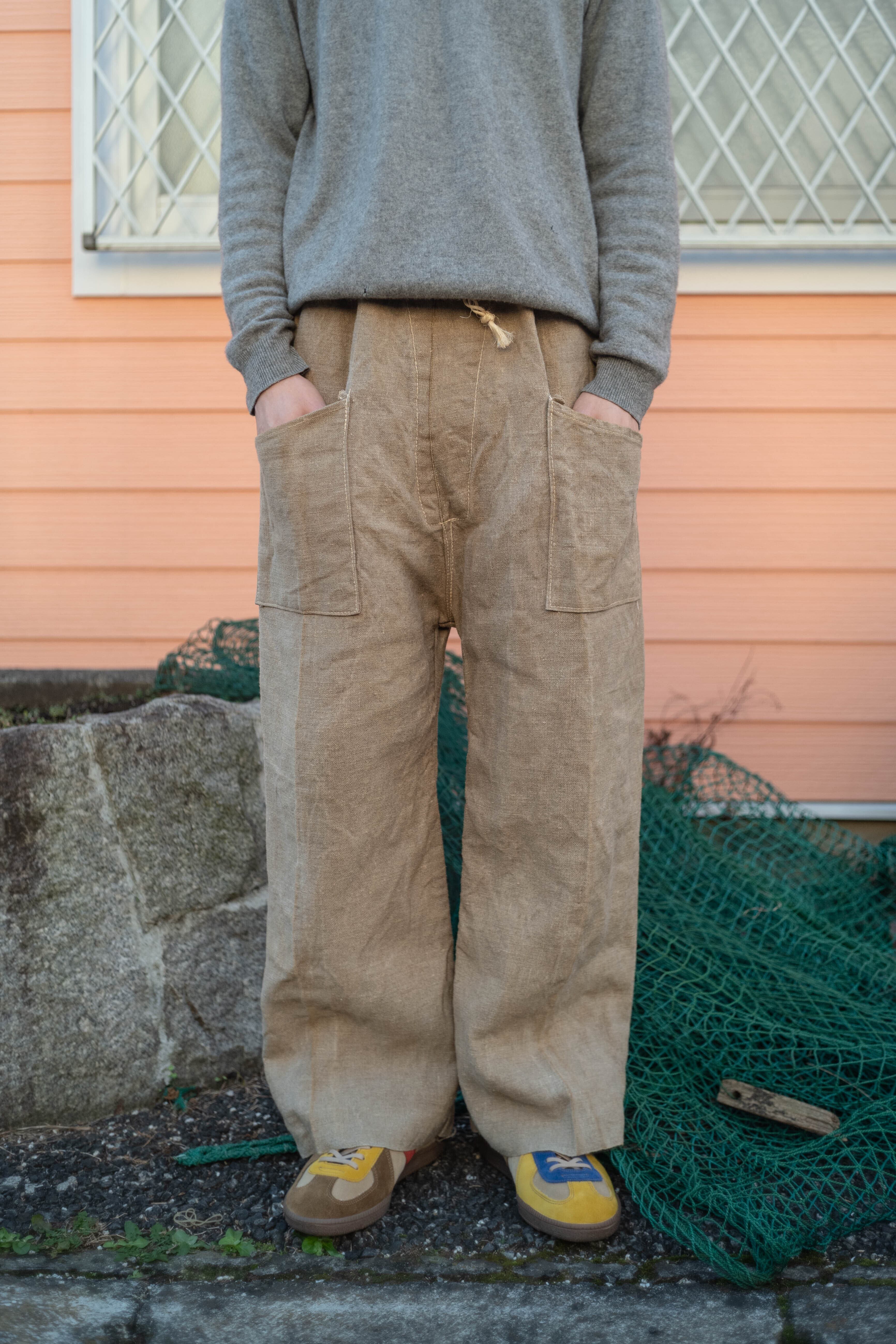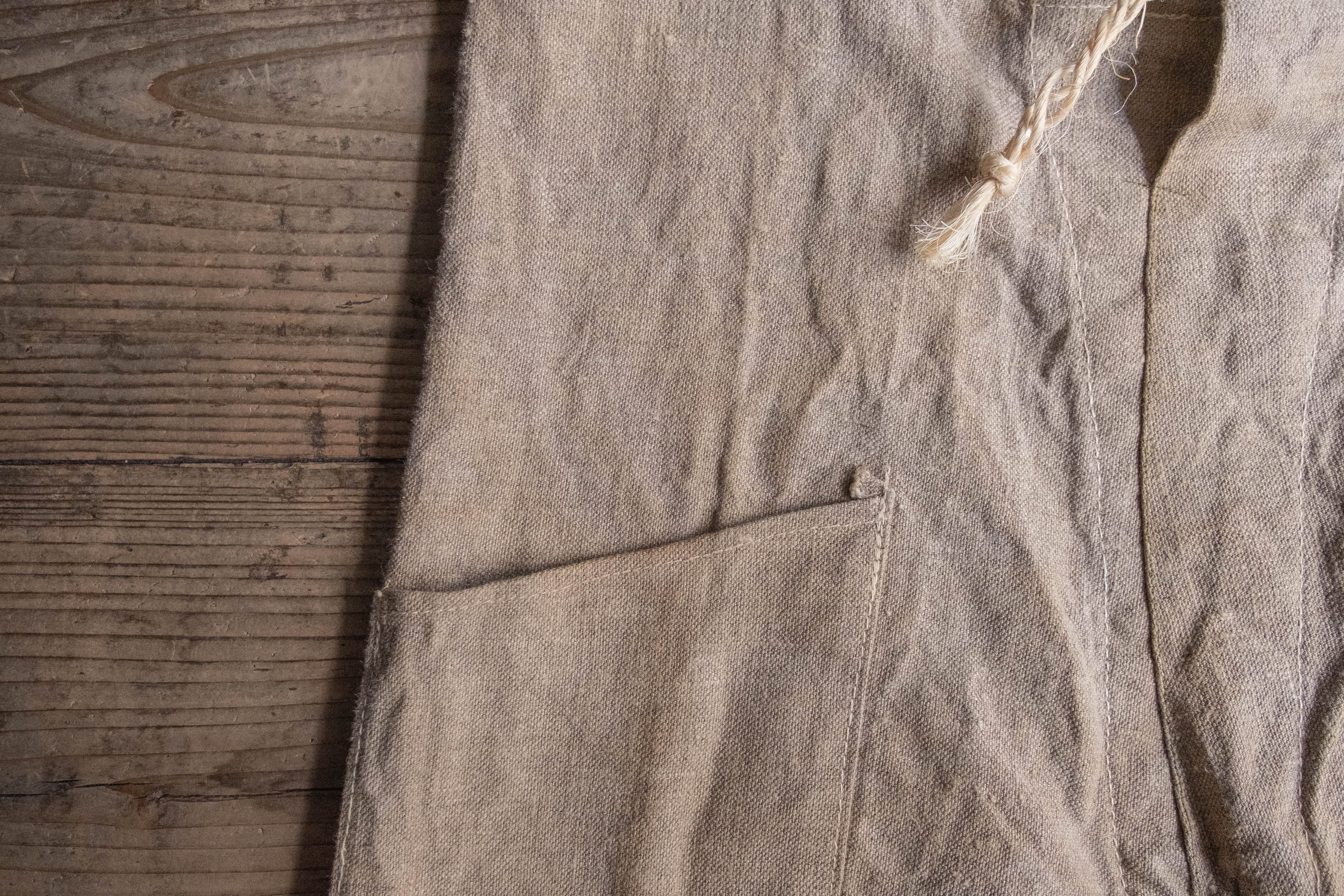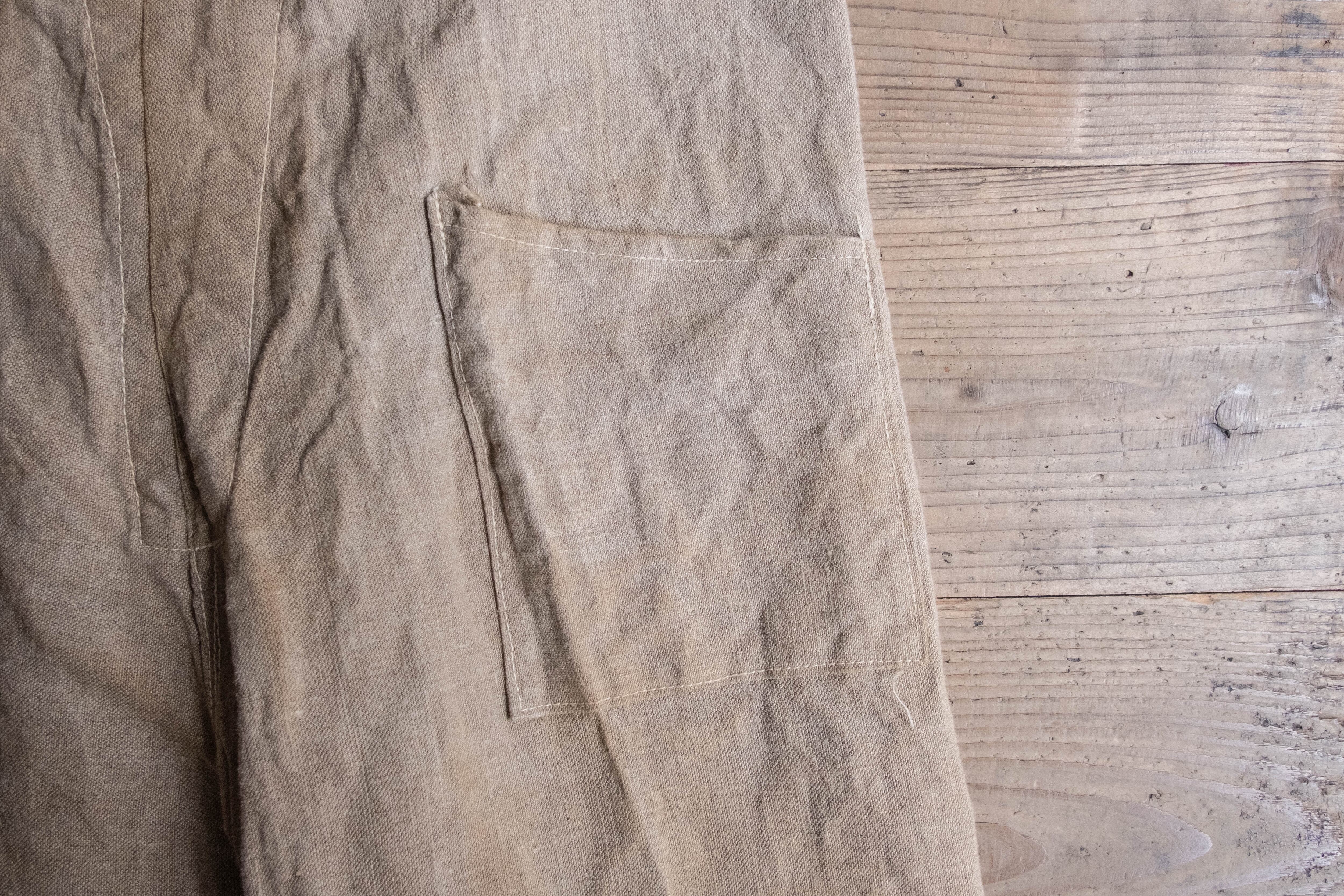 丈夫さを最優先にしたガシッとブルブルなヘンプリネンの生地選びと、動きやすさ・作りやすさに振り切った素朴なパターンが今見ると逆にファッションとなっています。
