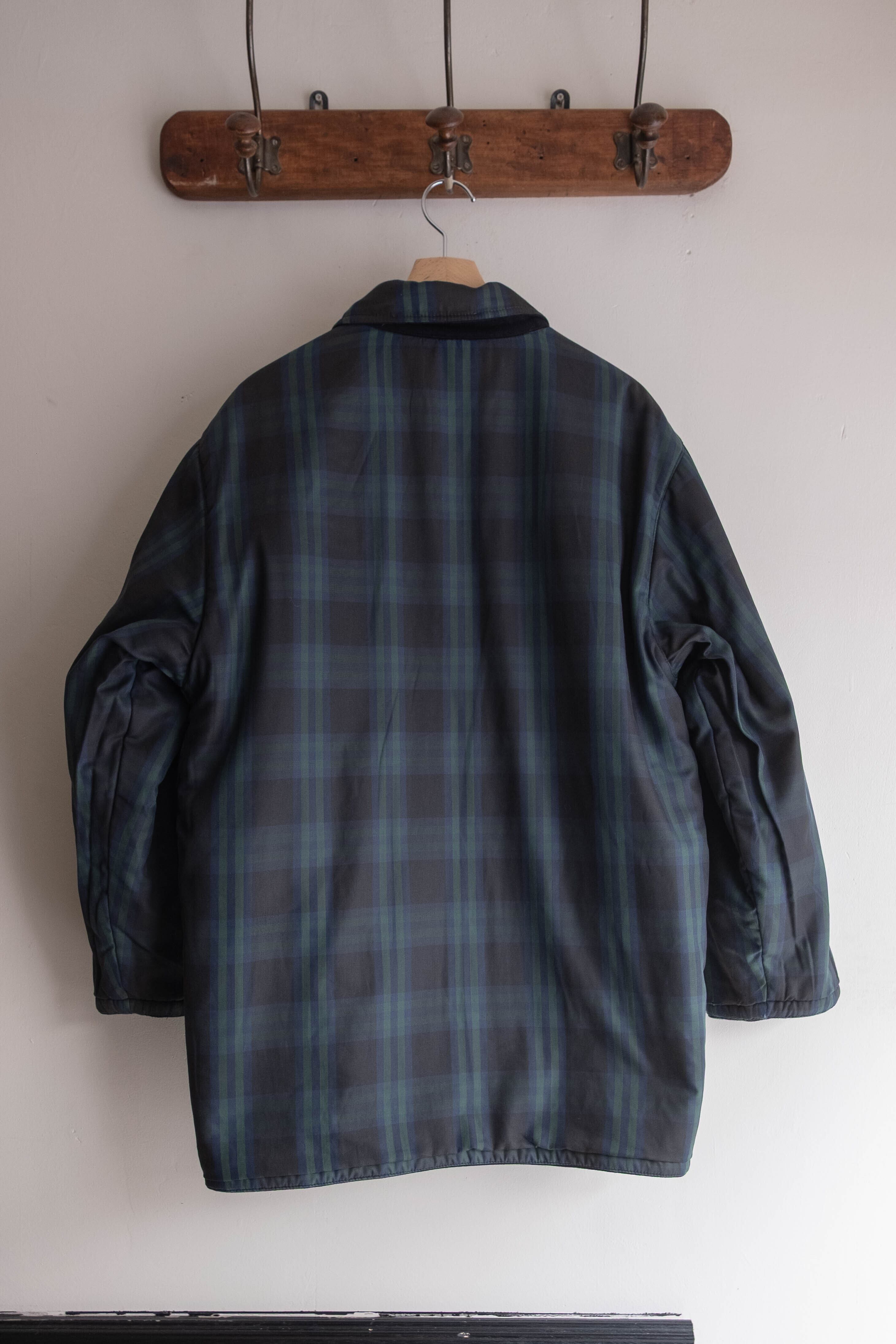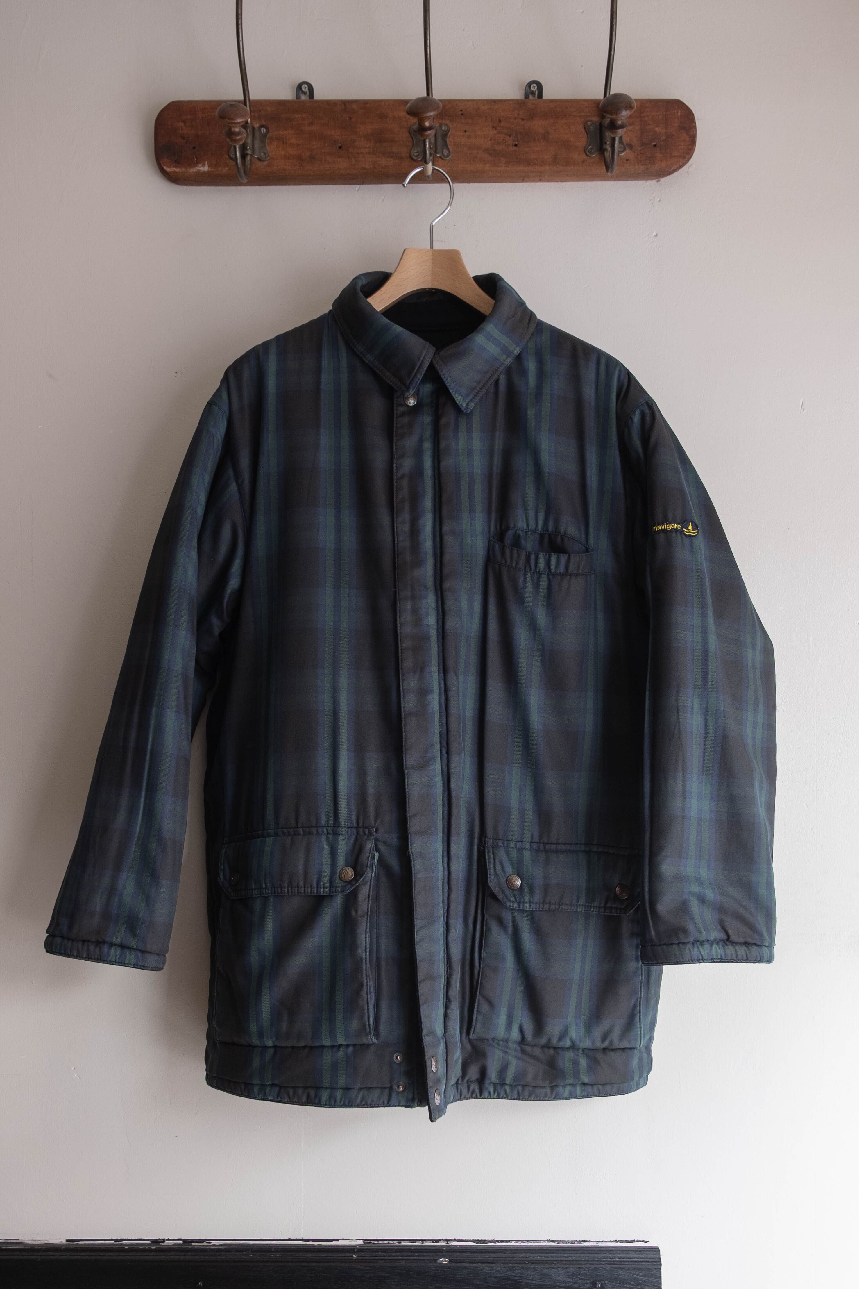 一見シンプルな無地のフィールドコートですが、裏返すとチェック柄が現れるリバーシブル仕様。