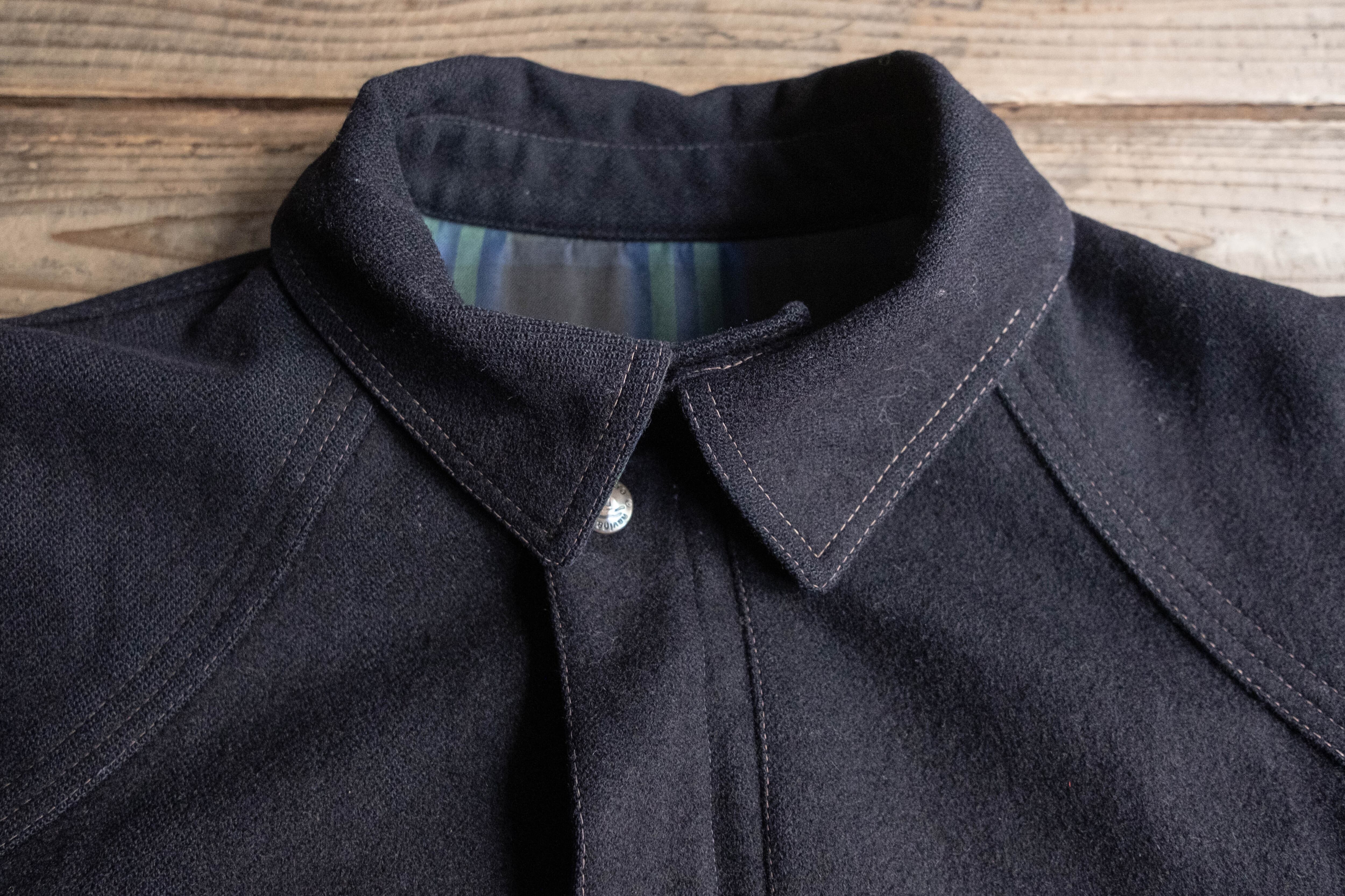 街着として落ち着いた印象のダークネイビー無地のA面と、ハンティングやアウトドアの空気を感じさせるチェックのB面です。
