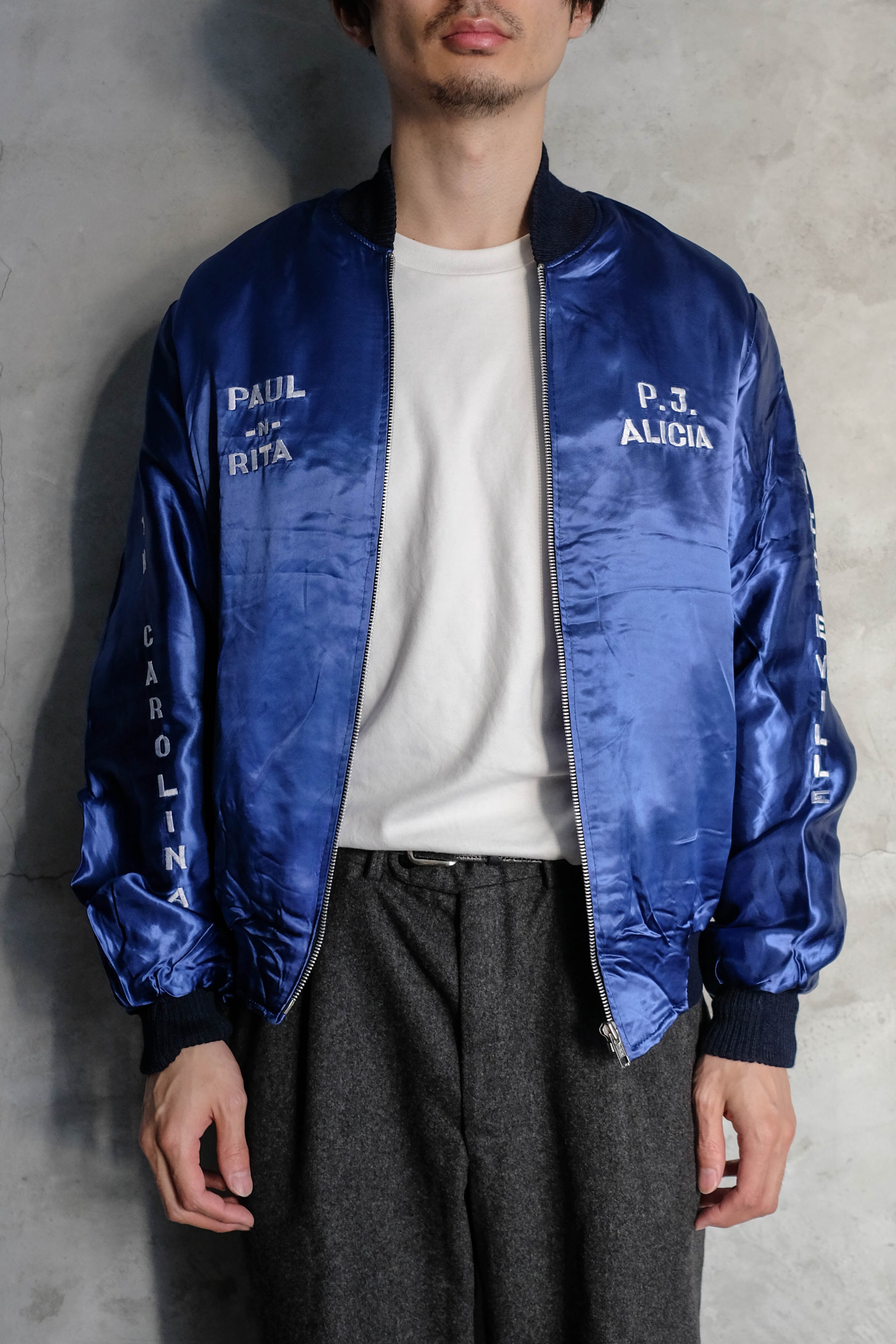 派手さよりも落ち着きのある刺繍が多く、スカジャンとはまた違った大人っぽい表情が魅力です。