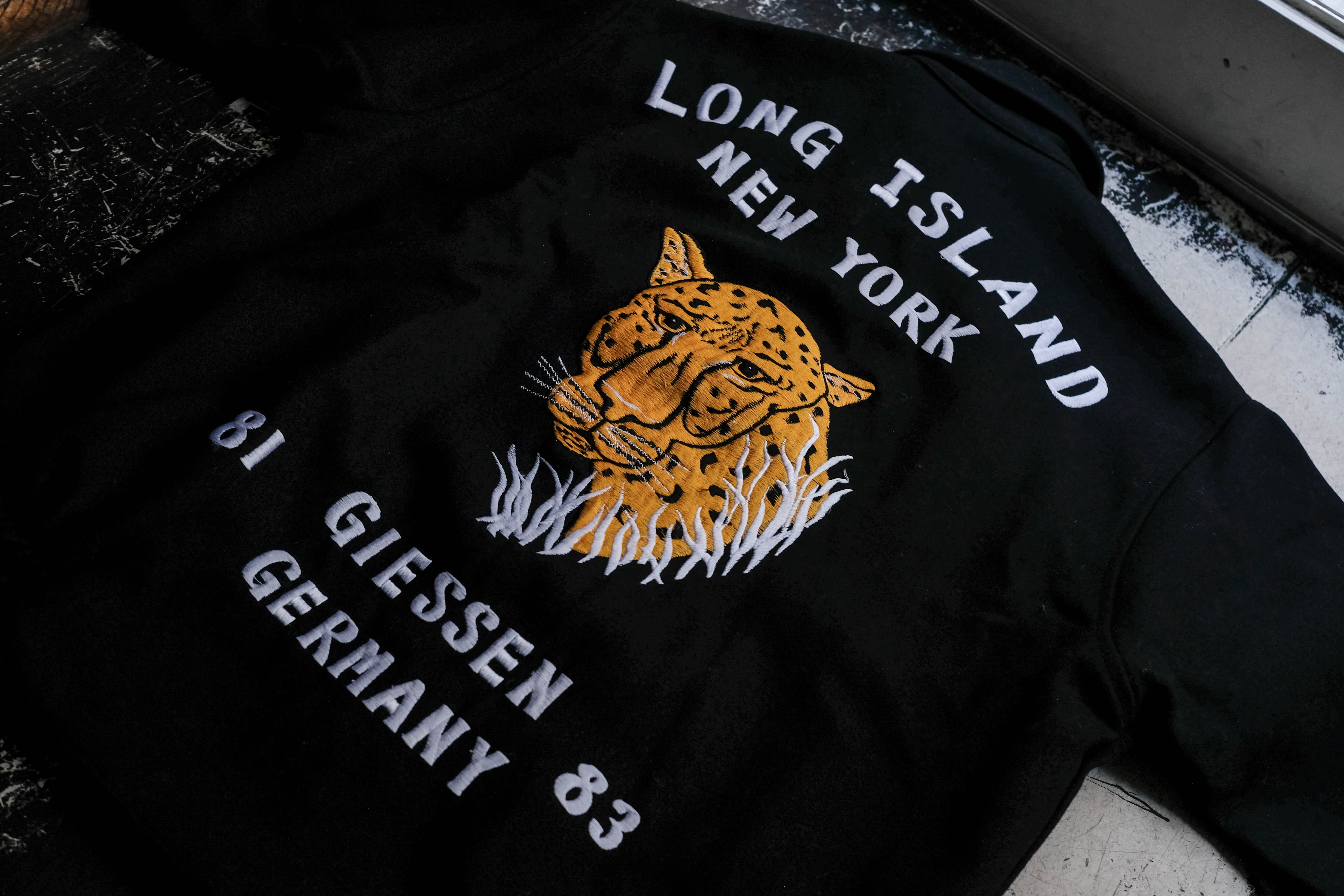 ベルリンやフランクフルトなどの地名刺繍、鷲や紋章モチーフ、年号やテキストのみの無骨なデザインまで。