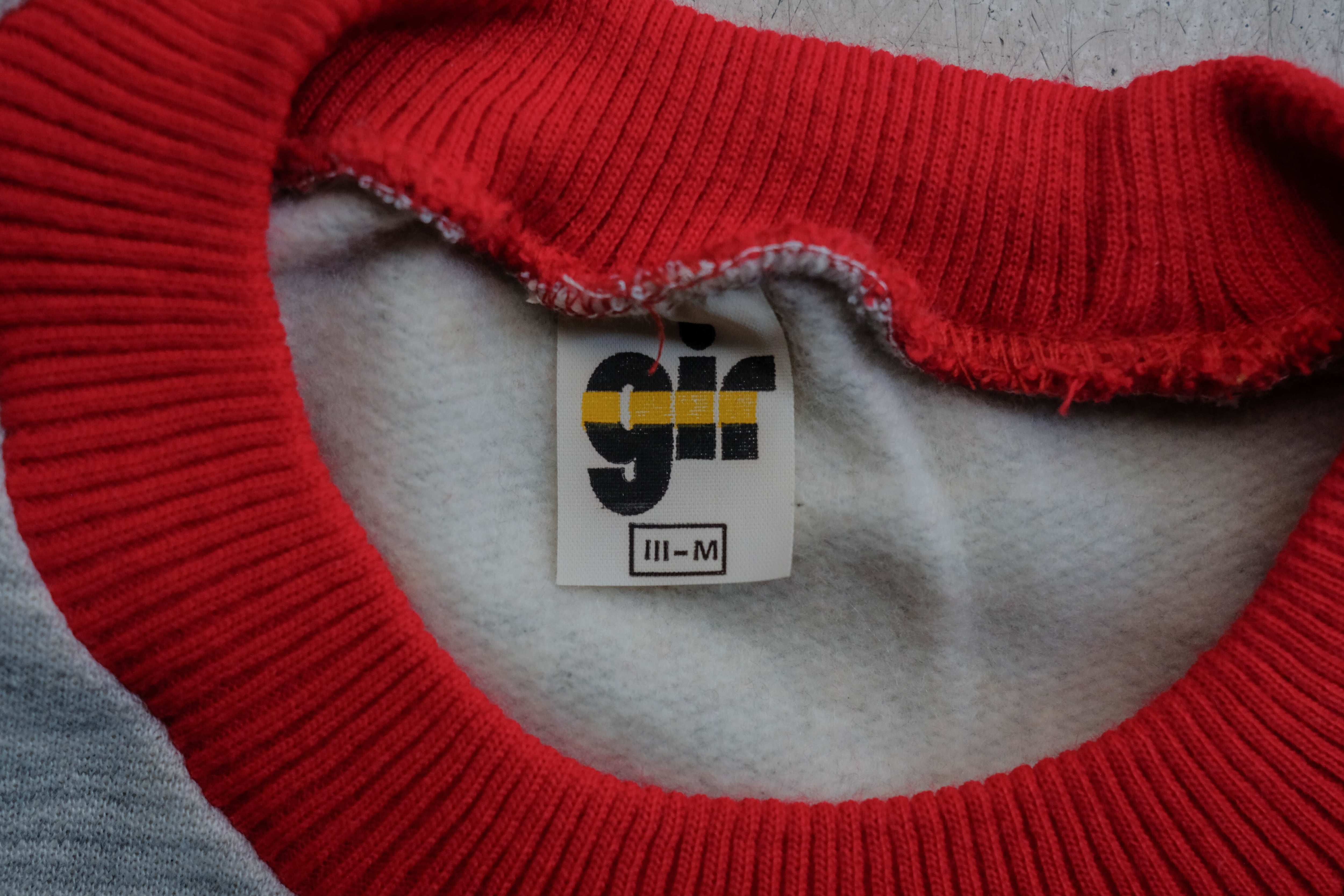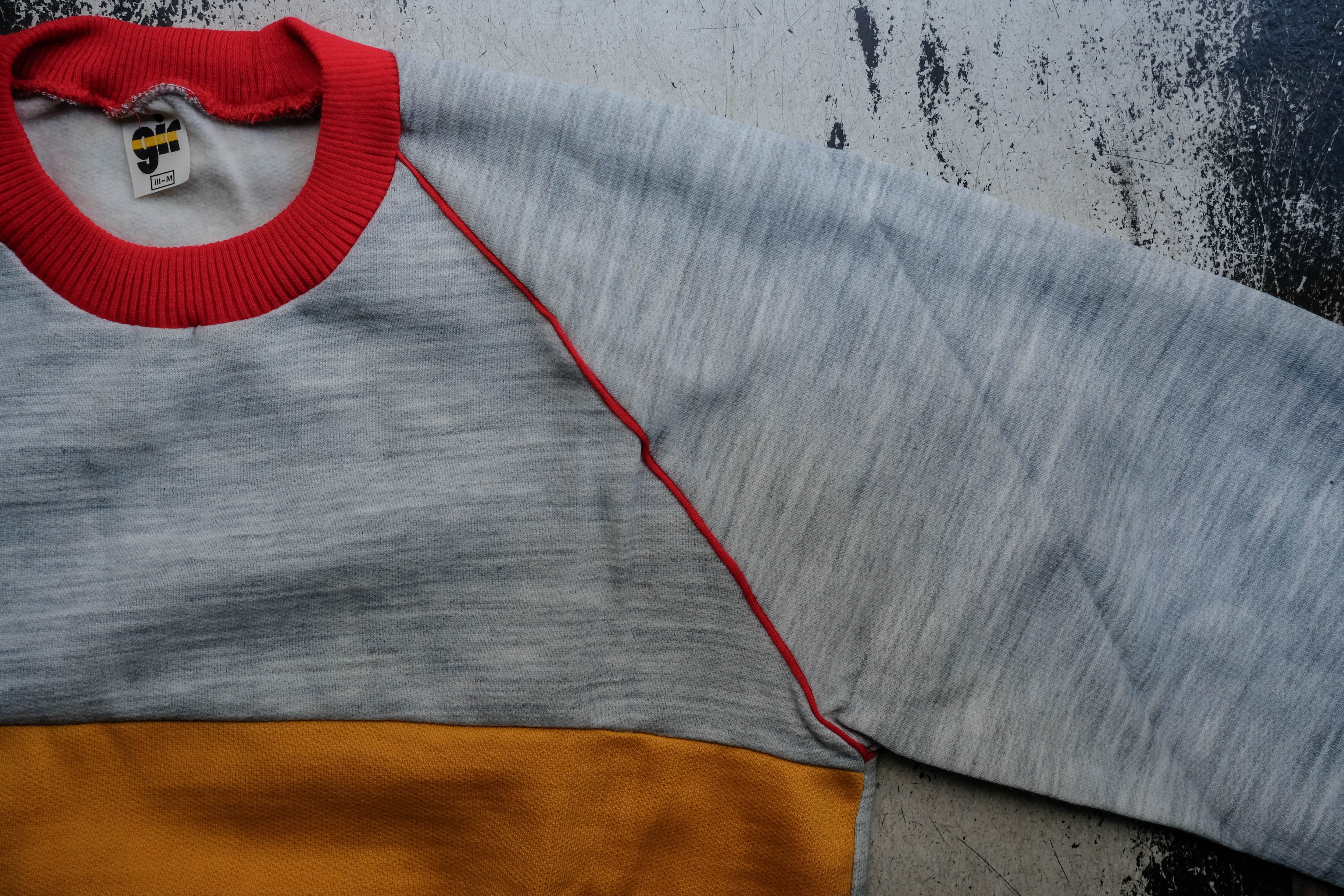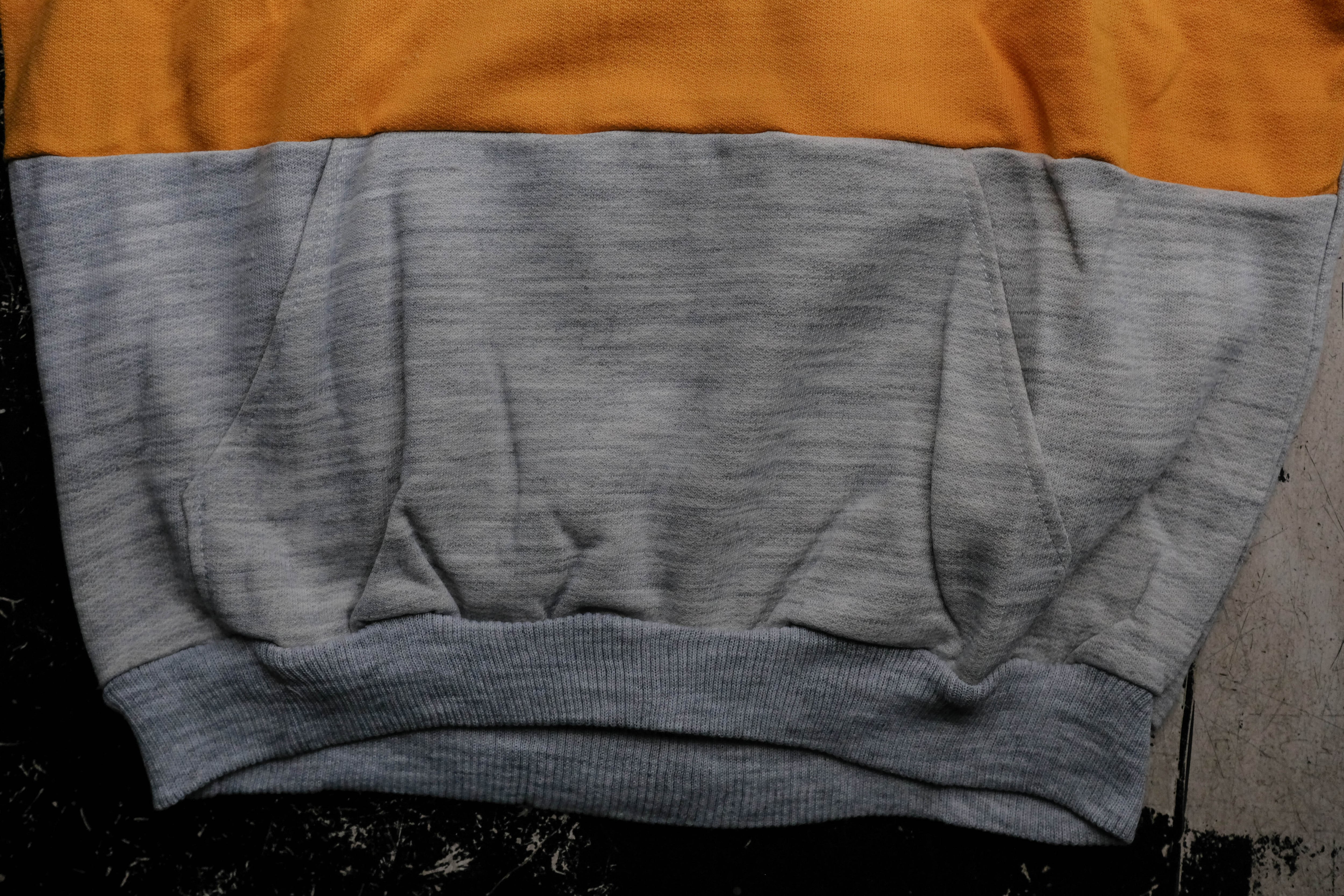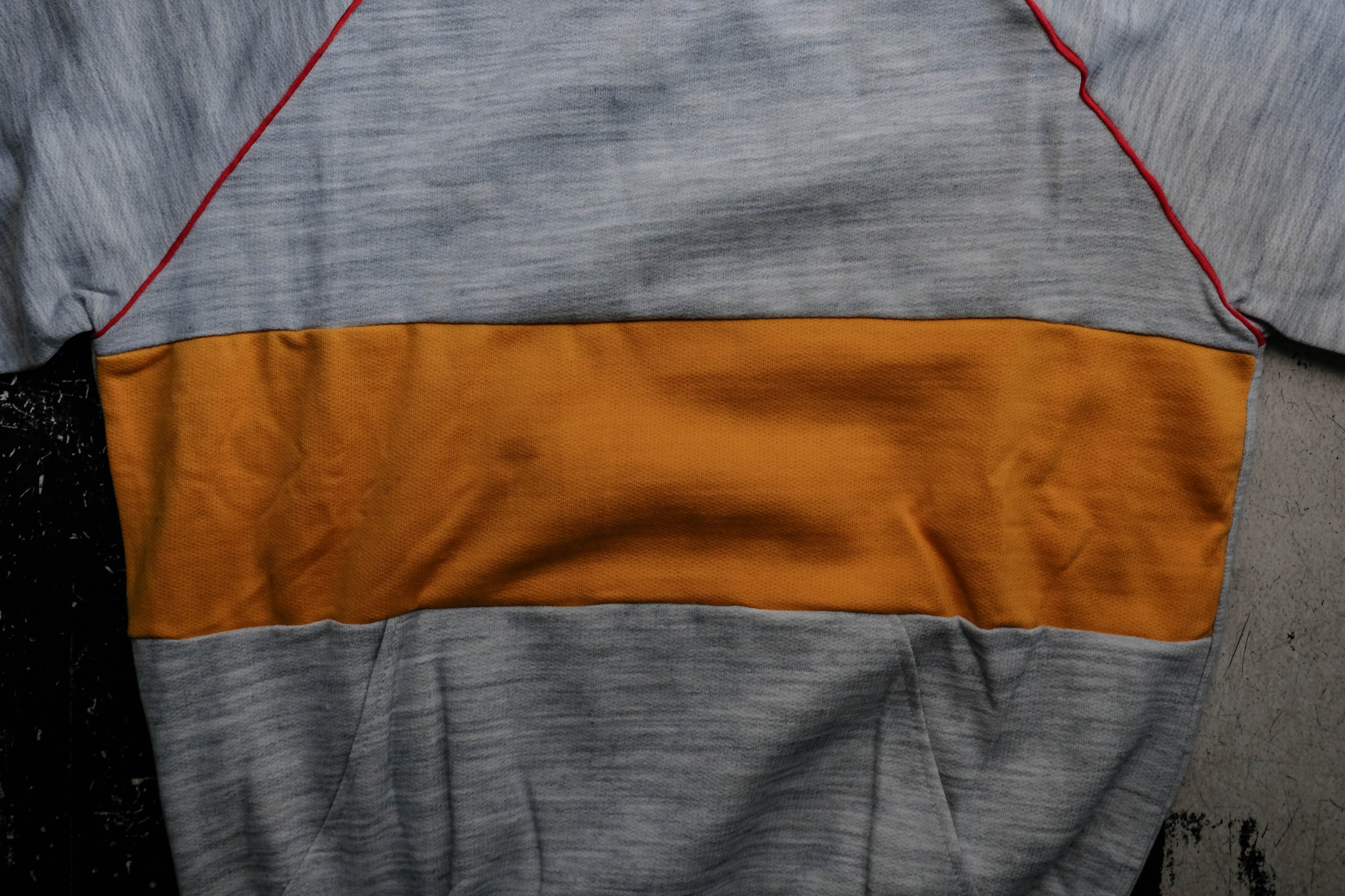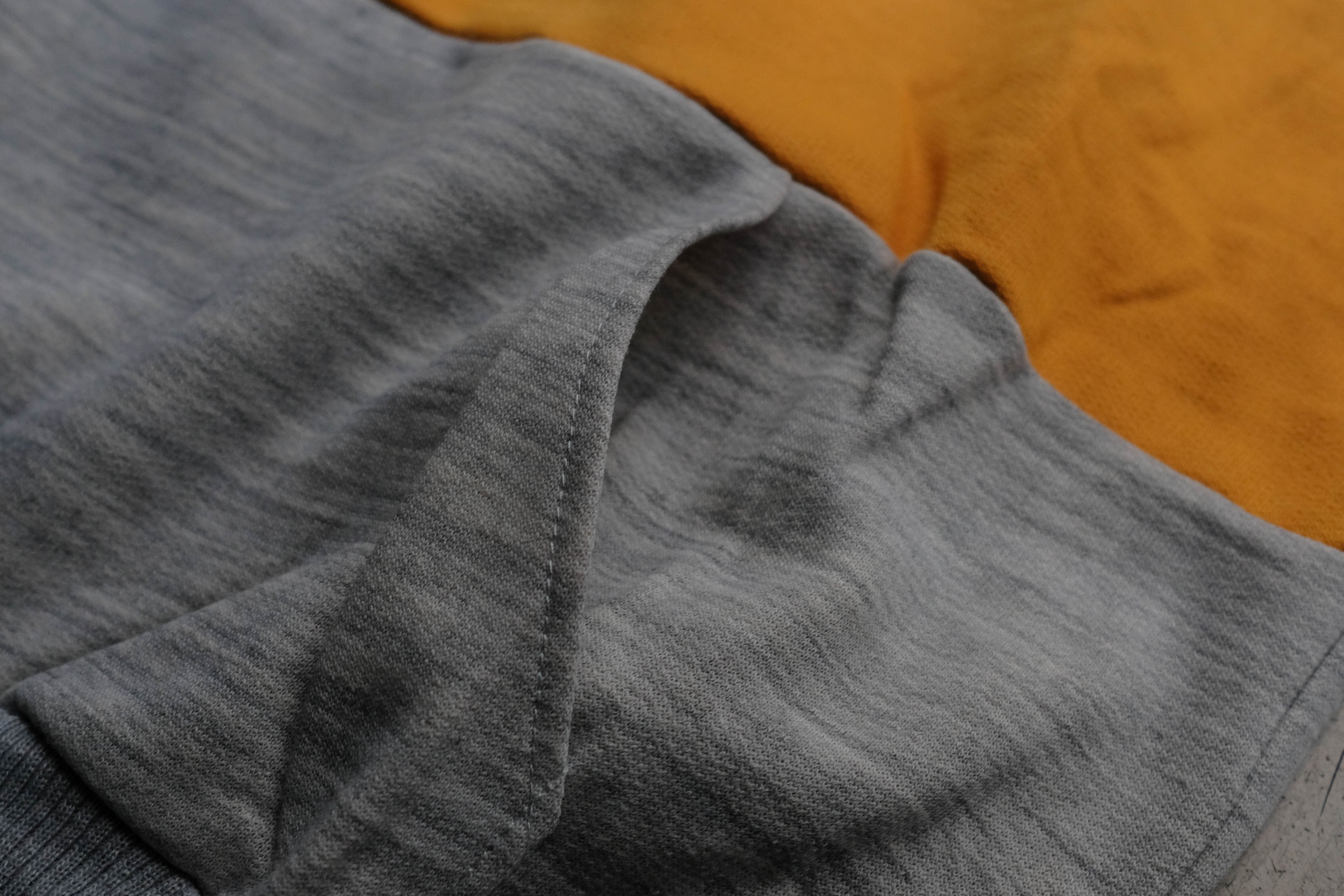 グレーの杢ボディにイエローのジャージのような素材で切り替えが入ります。