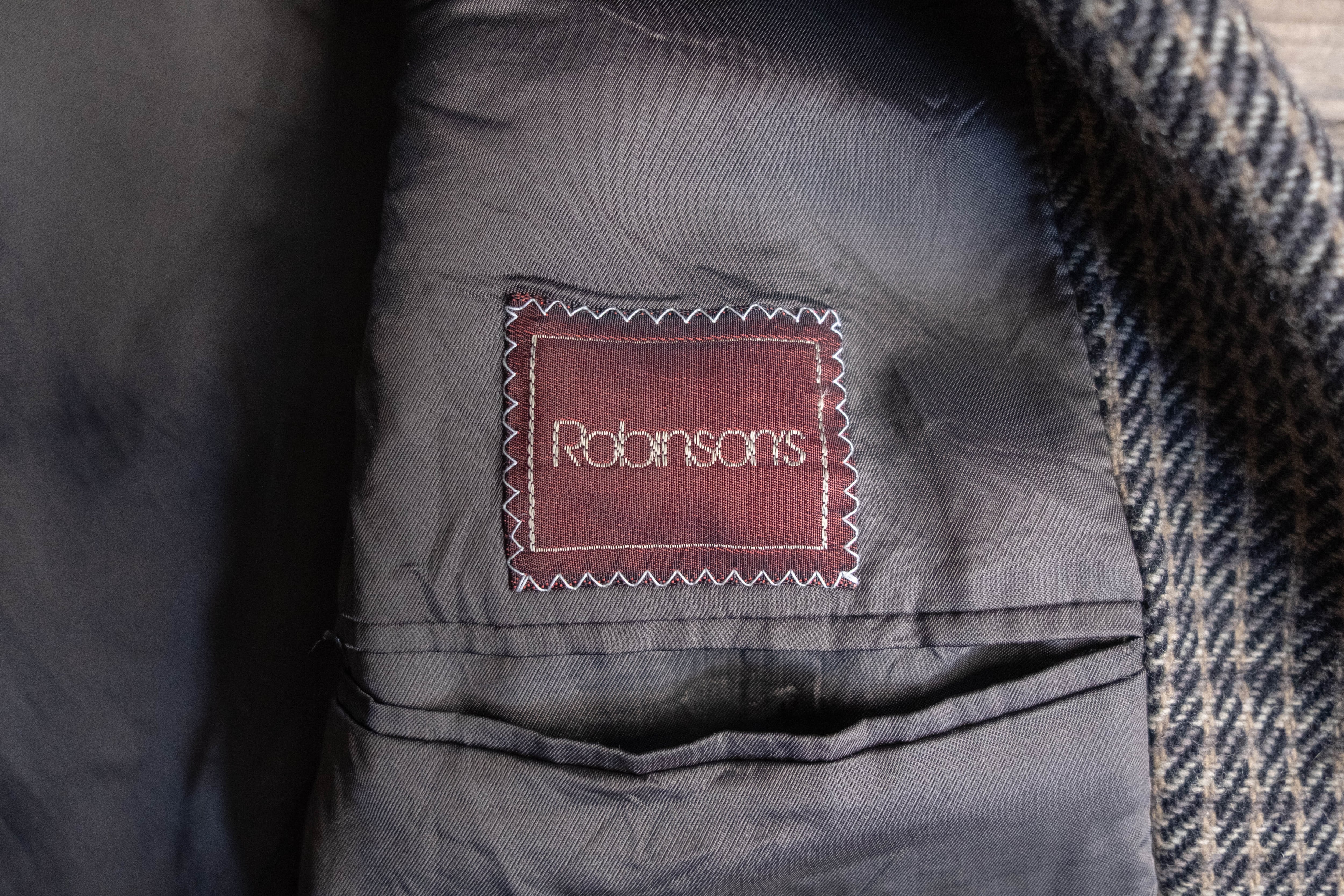 落ち着いたブラウンベースに織りで表現された細かなパターンが入り、クラシックでありながらどこか柔らかな印象を与える一着です。