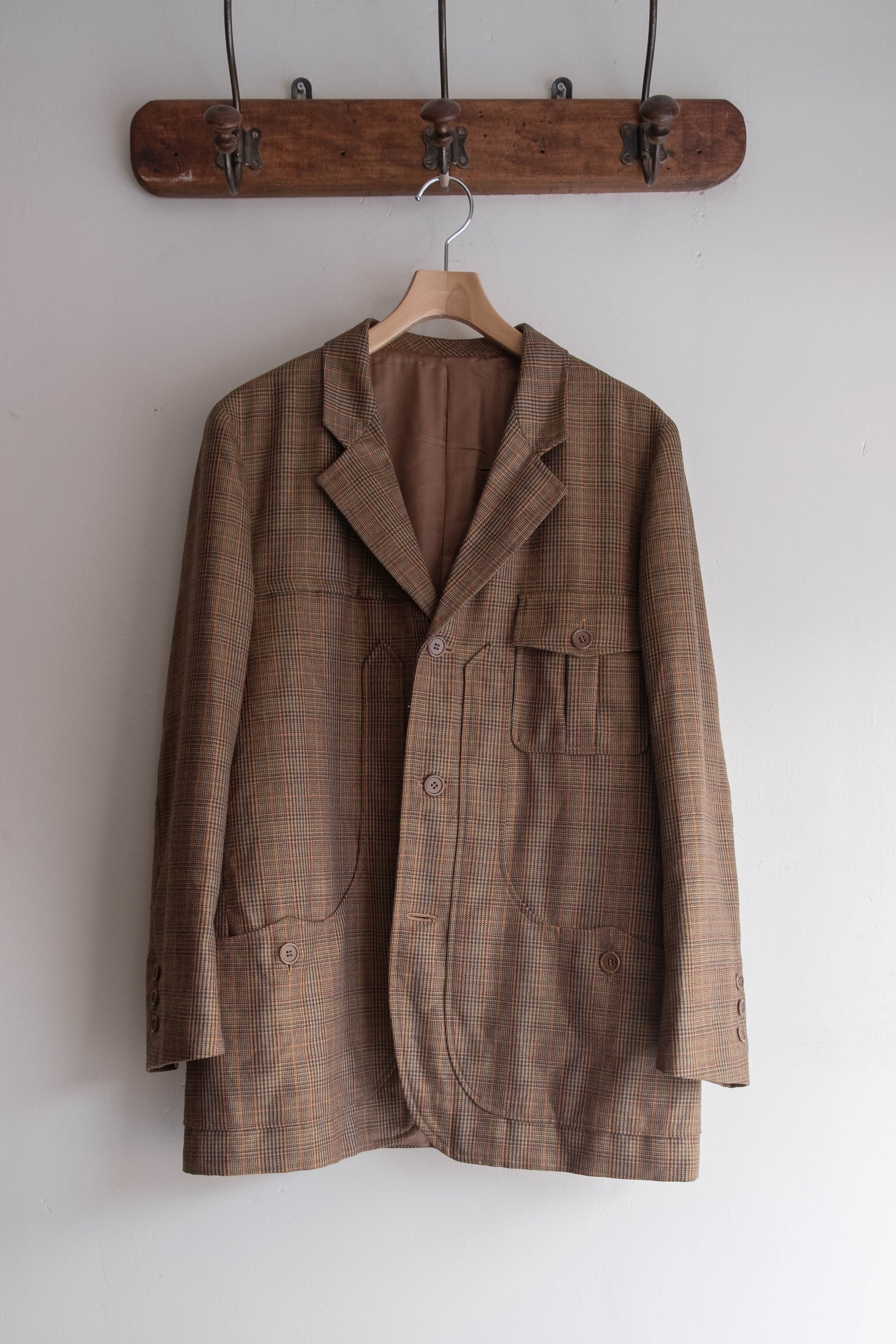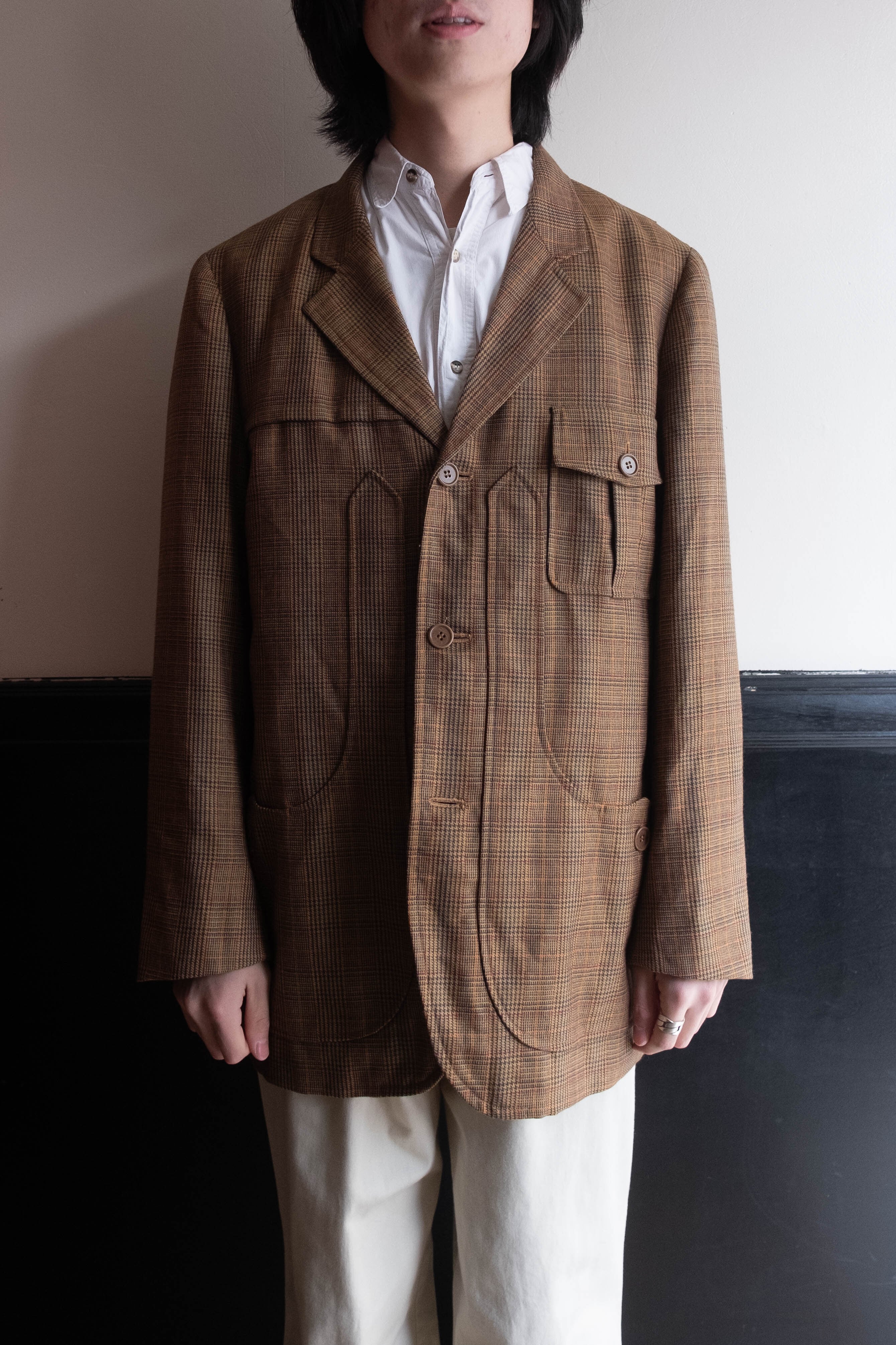 テーラードジャケットの構造をベースに、ハンティングやワークのディテールを掛け合わせた、80〜90年代らしいミックス感のある一着です。