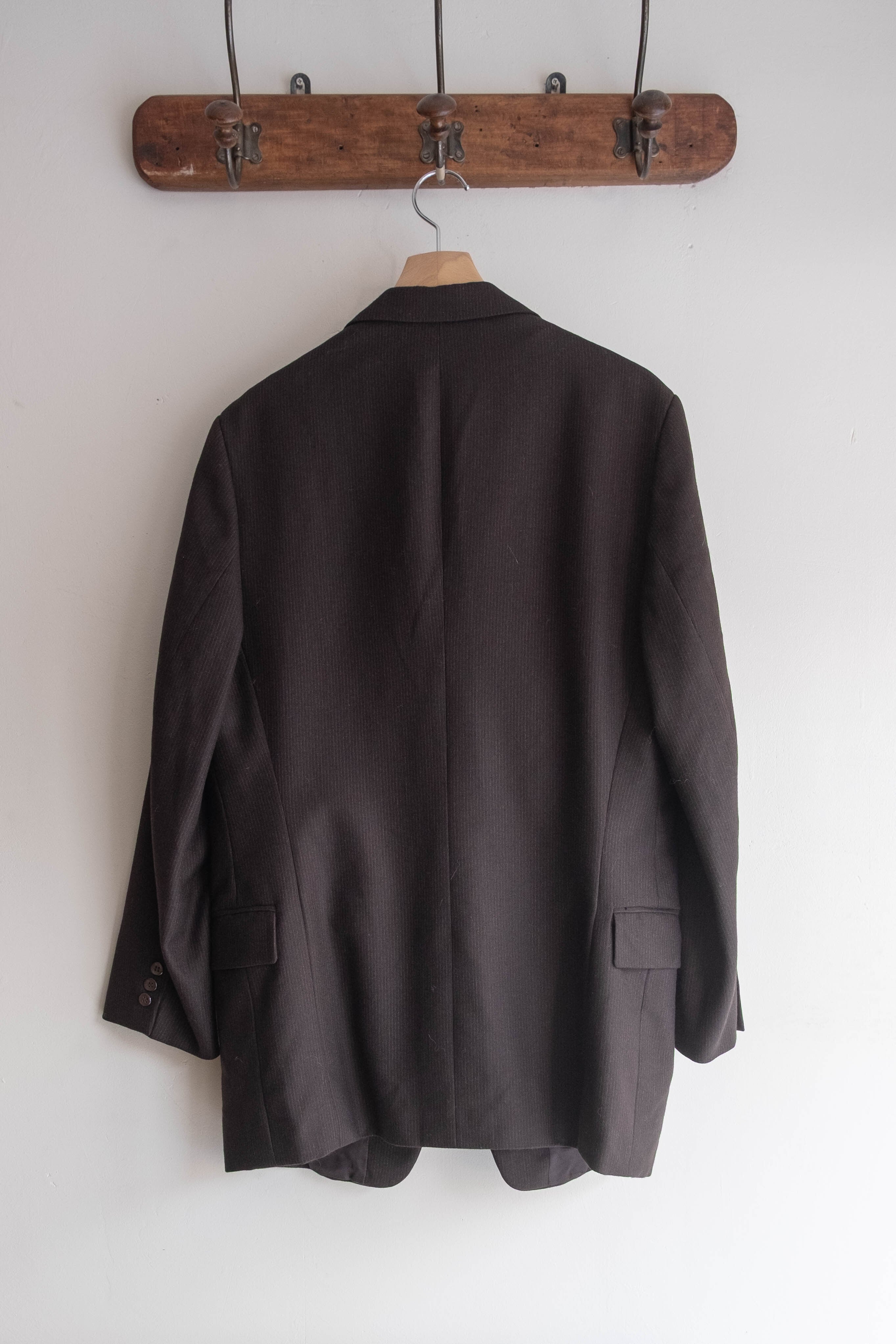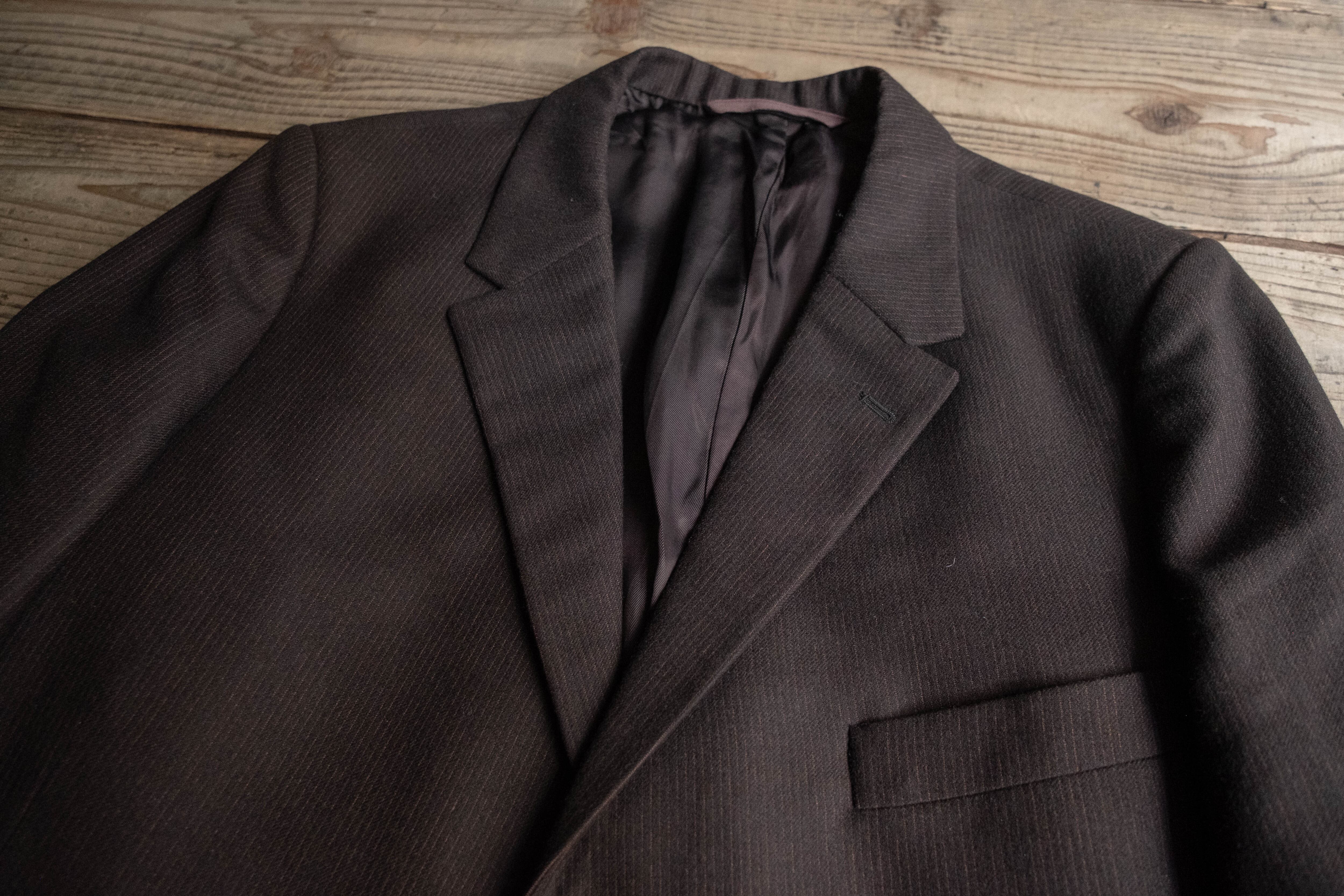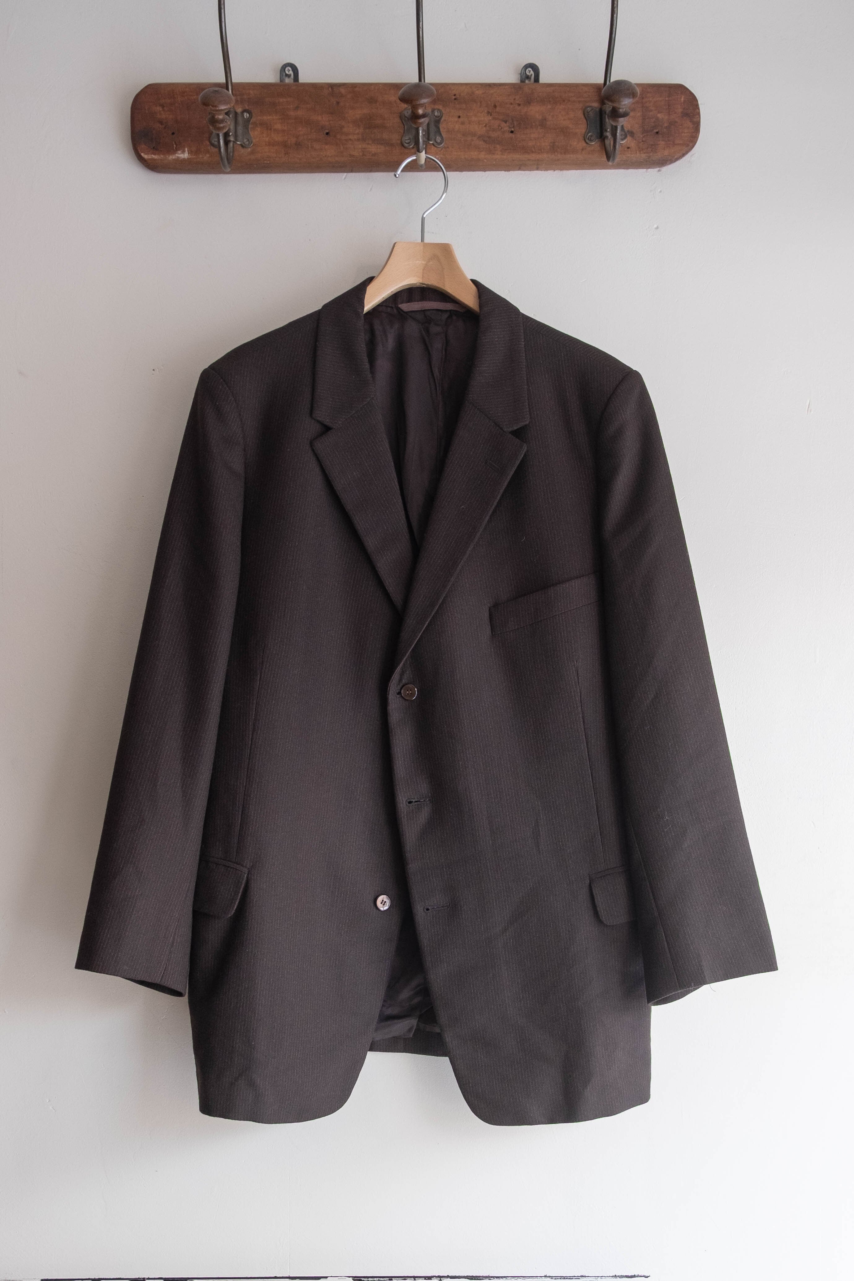 極端な主張のないラペル幅やシルエットで、いかにも当時のヨーロッパの量産既製服らしいバランスです。