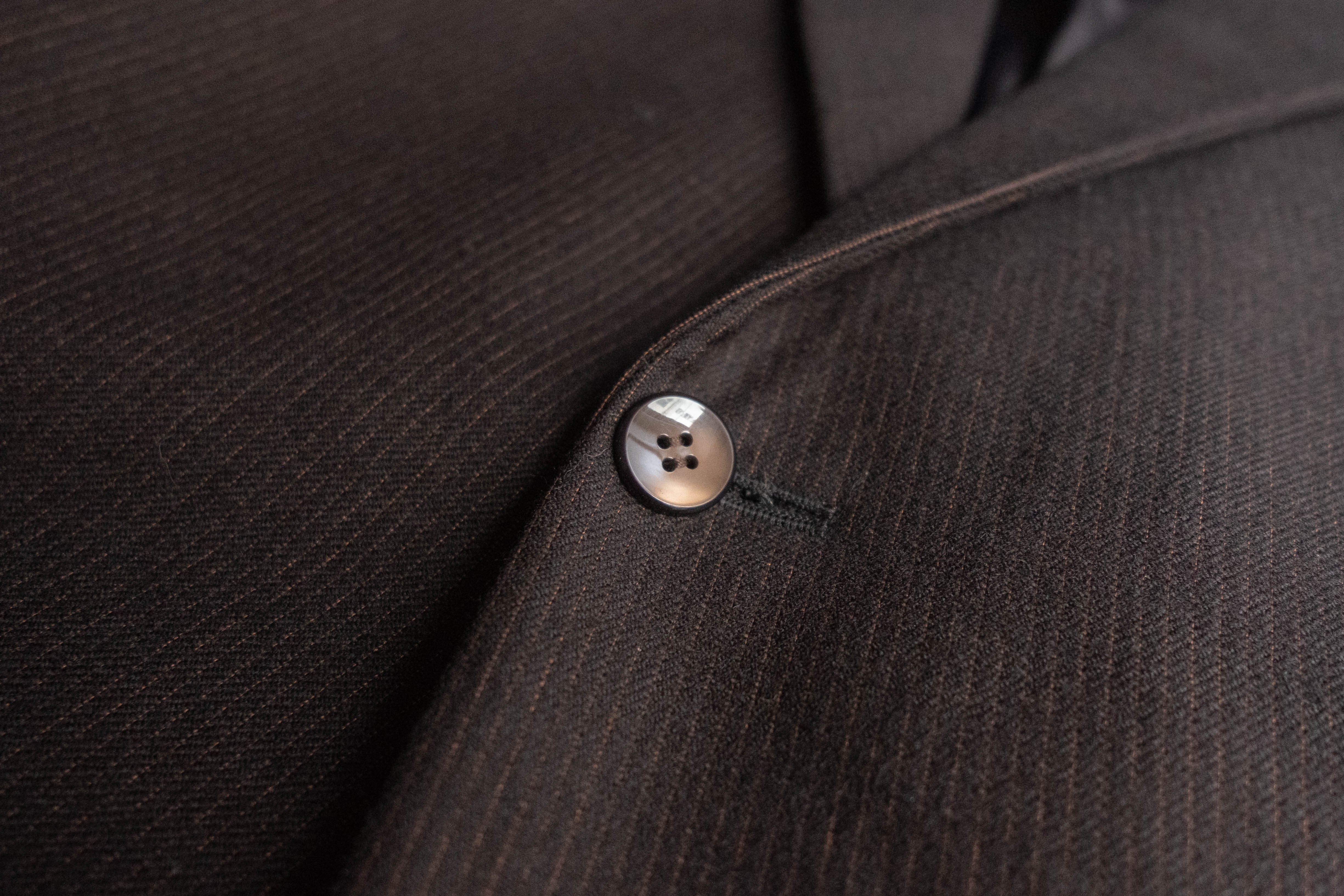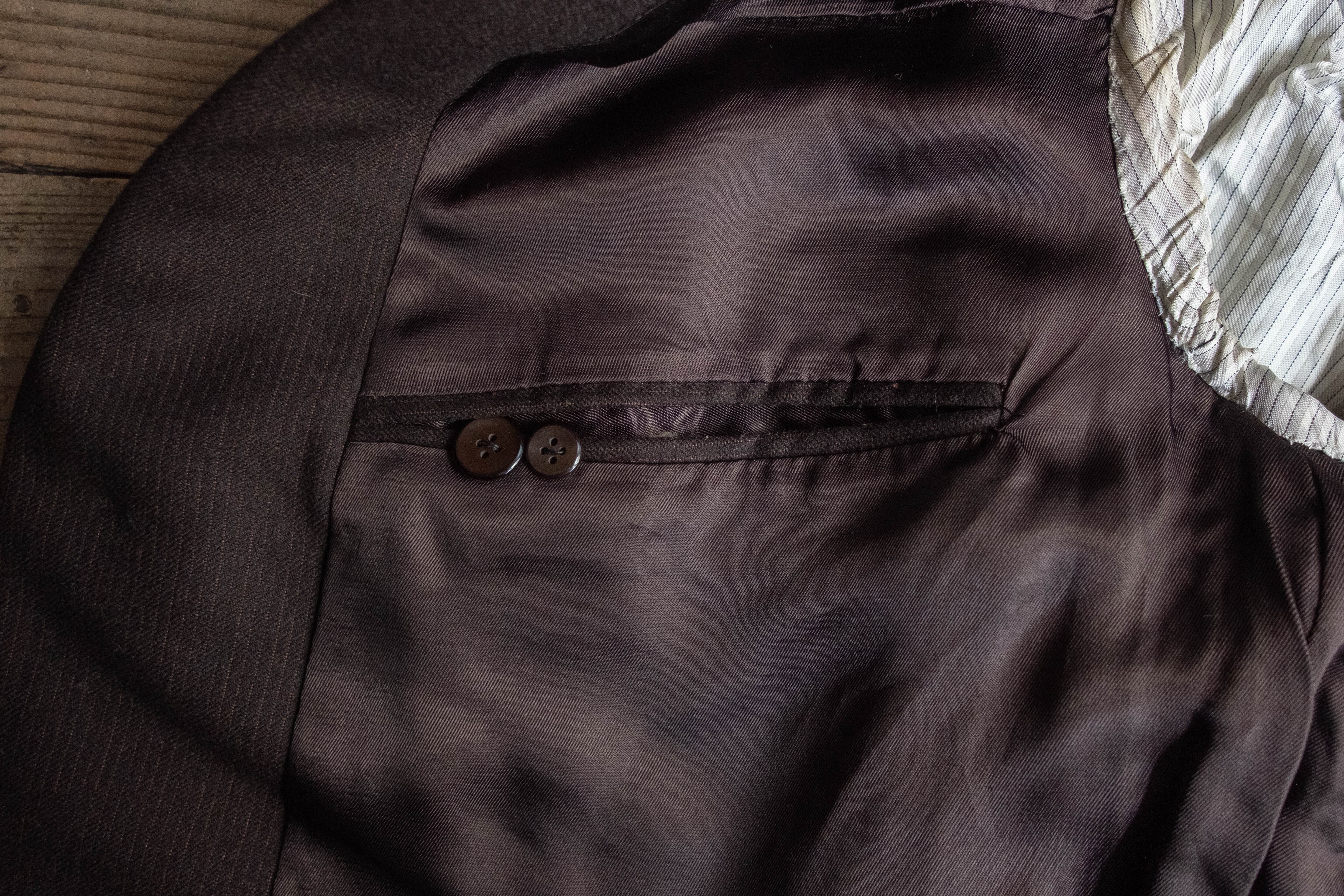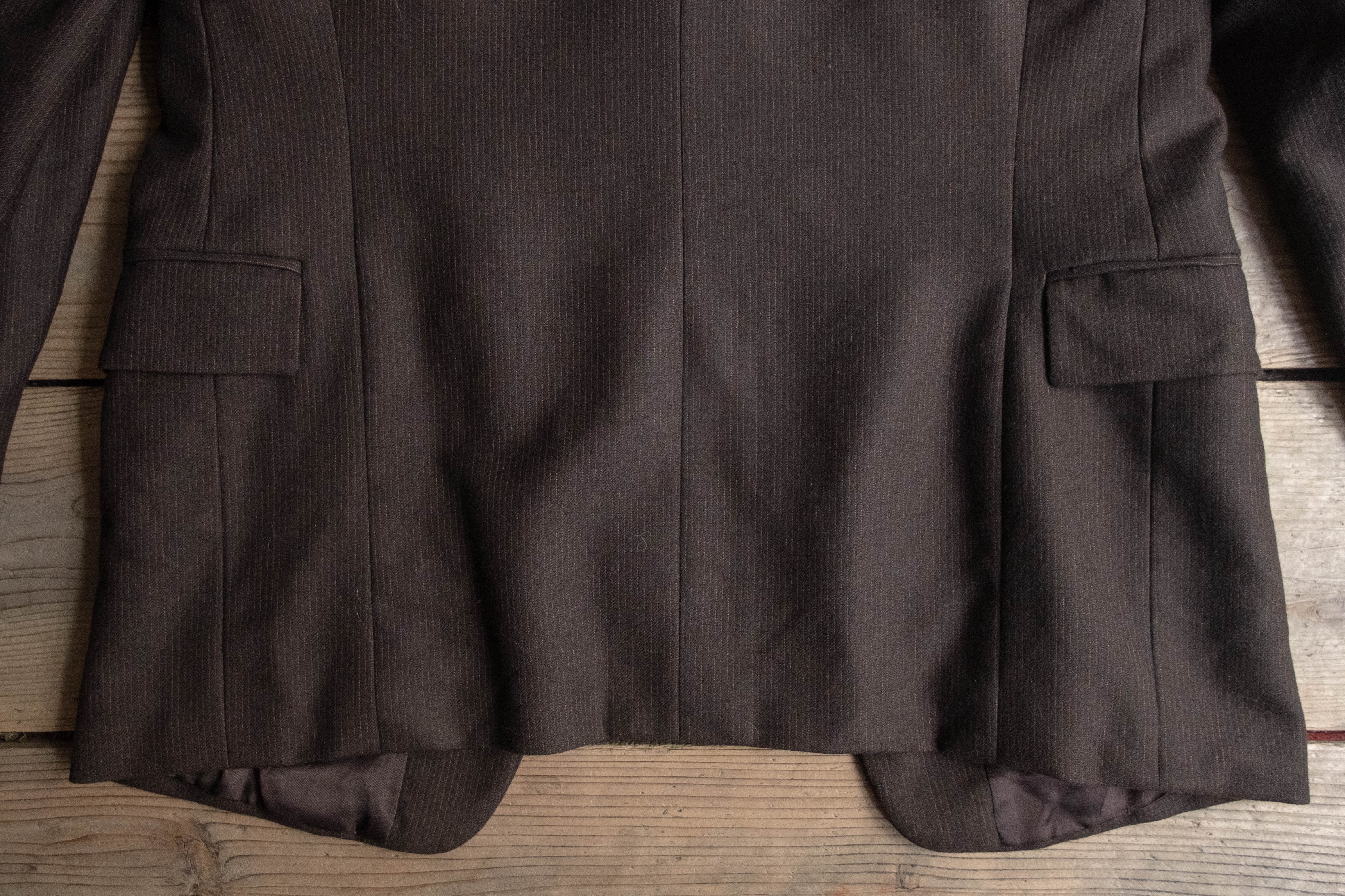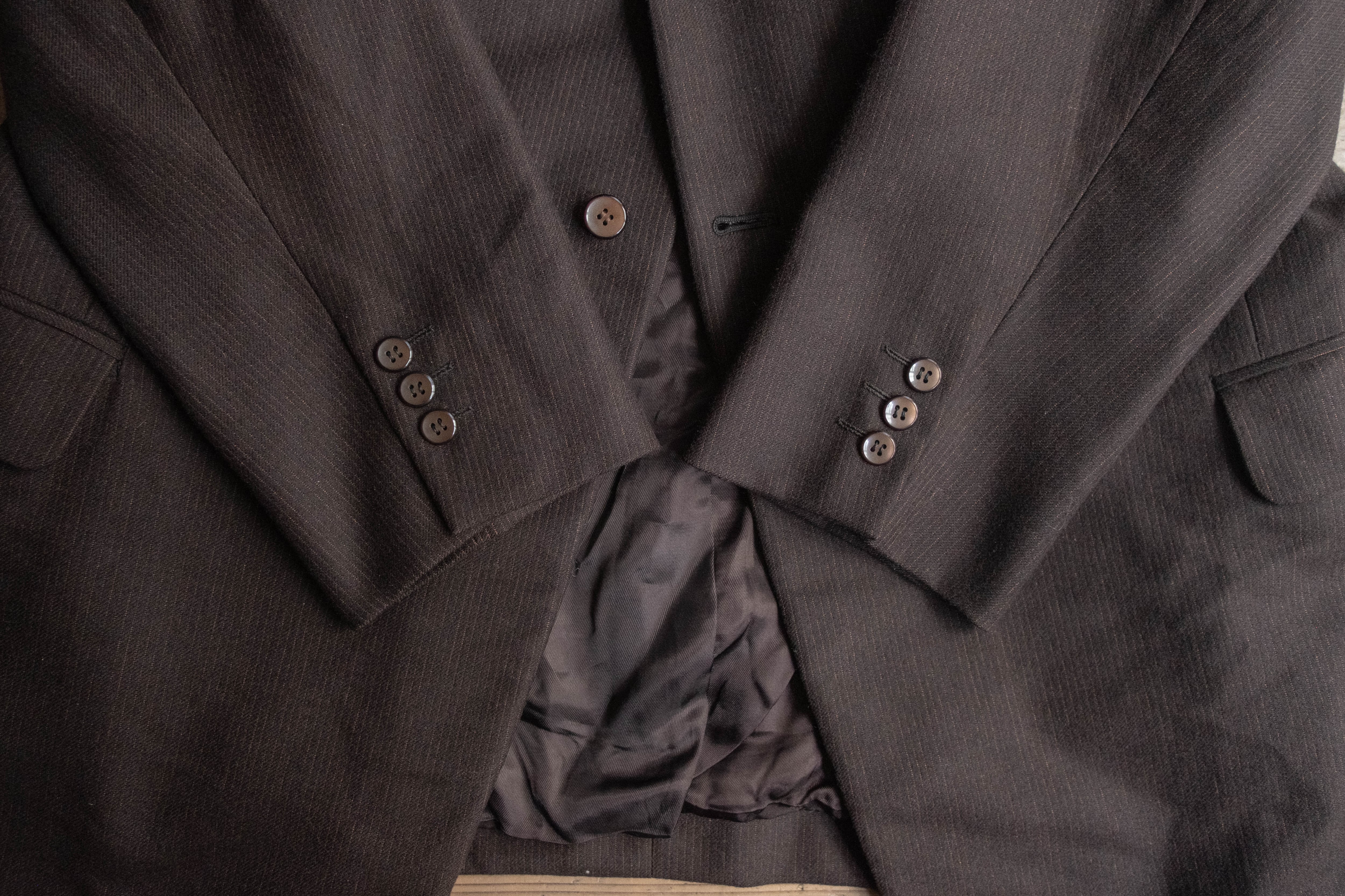 極端な主張のないラペル幅やシルエットで、いかにも当時のヨーロッパの量産既製服らしいバランスです。