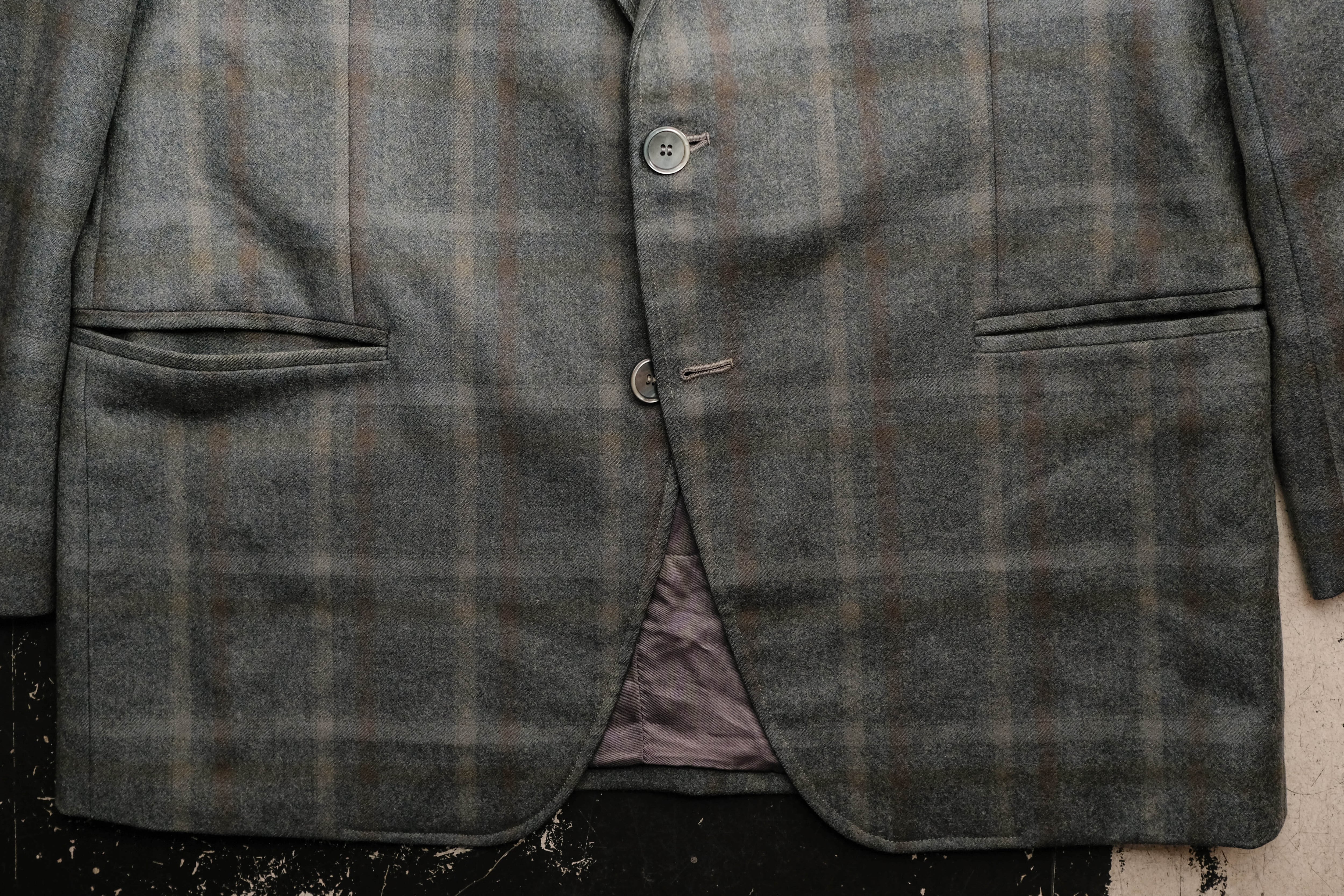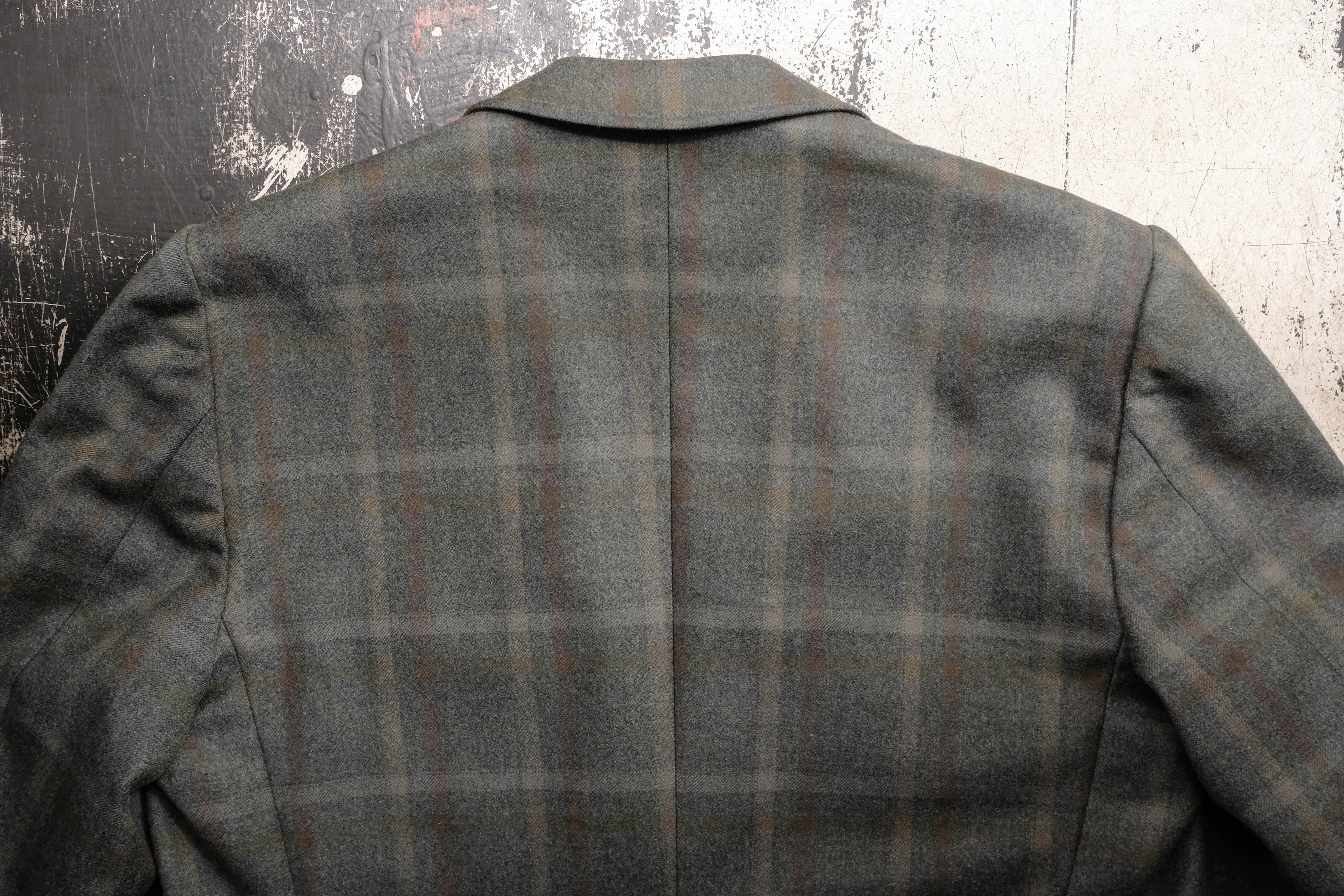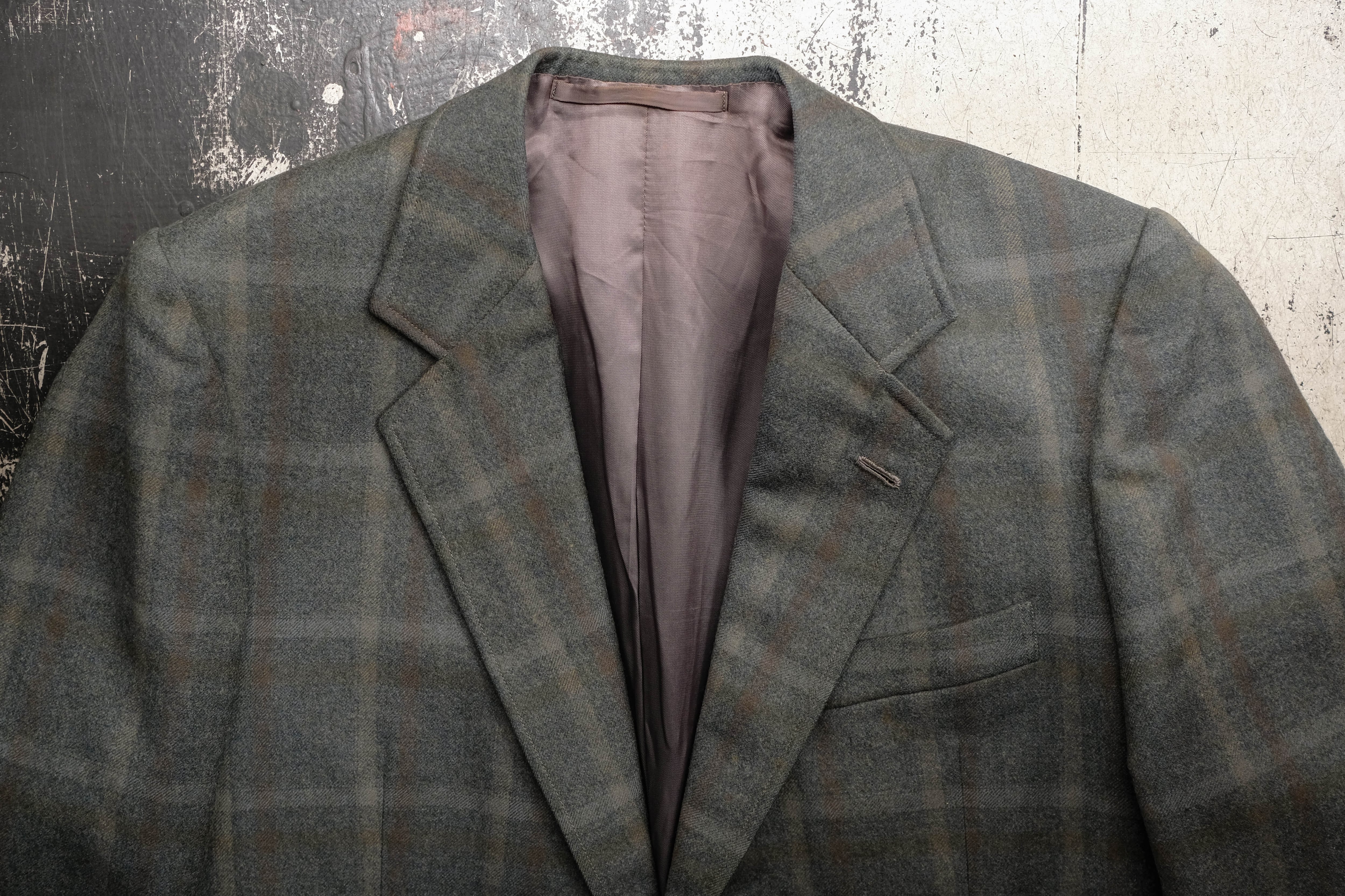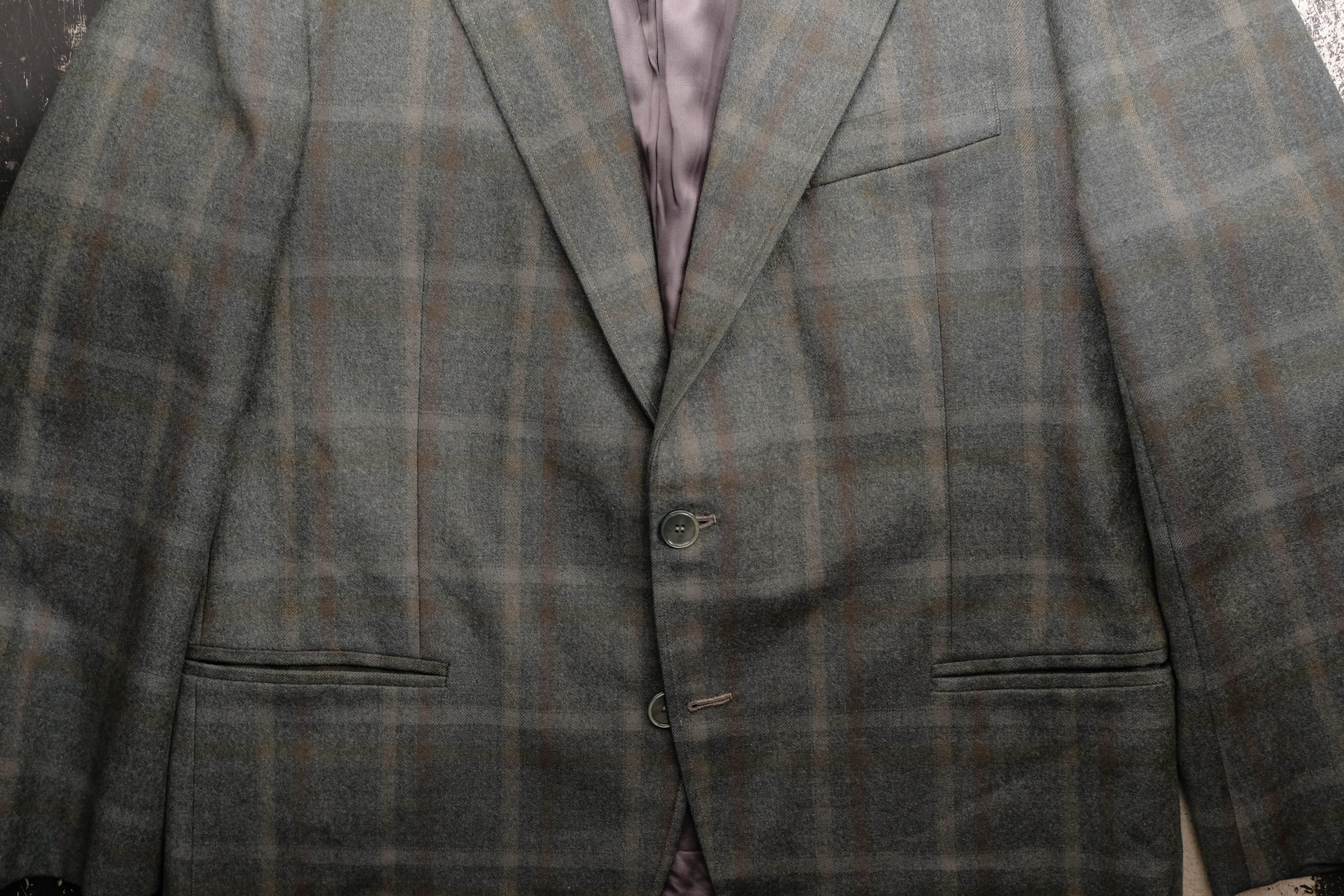 落ち着いたトーンのチェック柄が印象的なヨーロッパのテーラードジャケット。