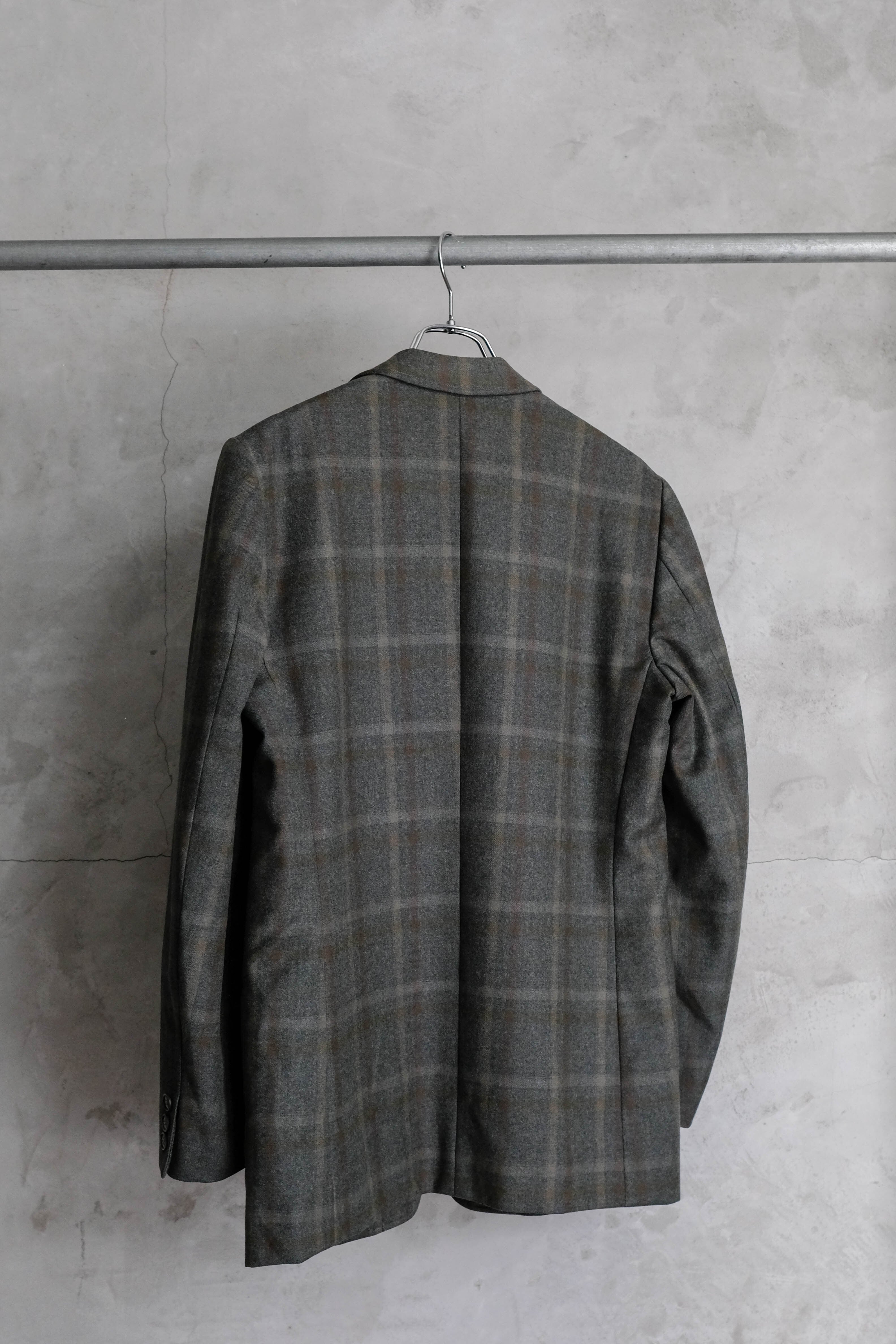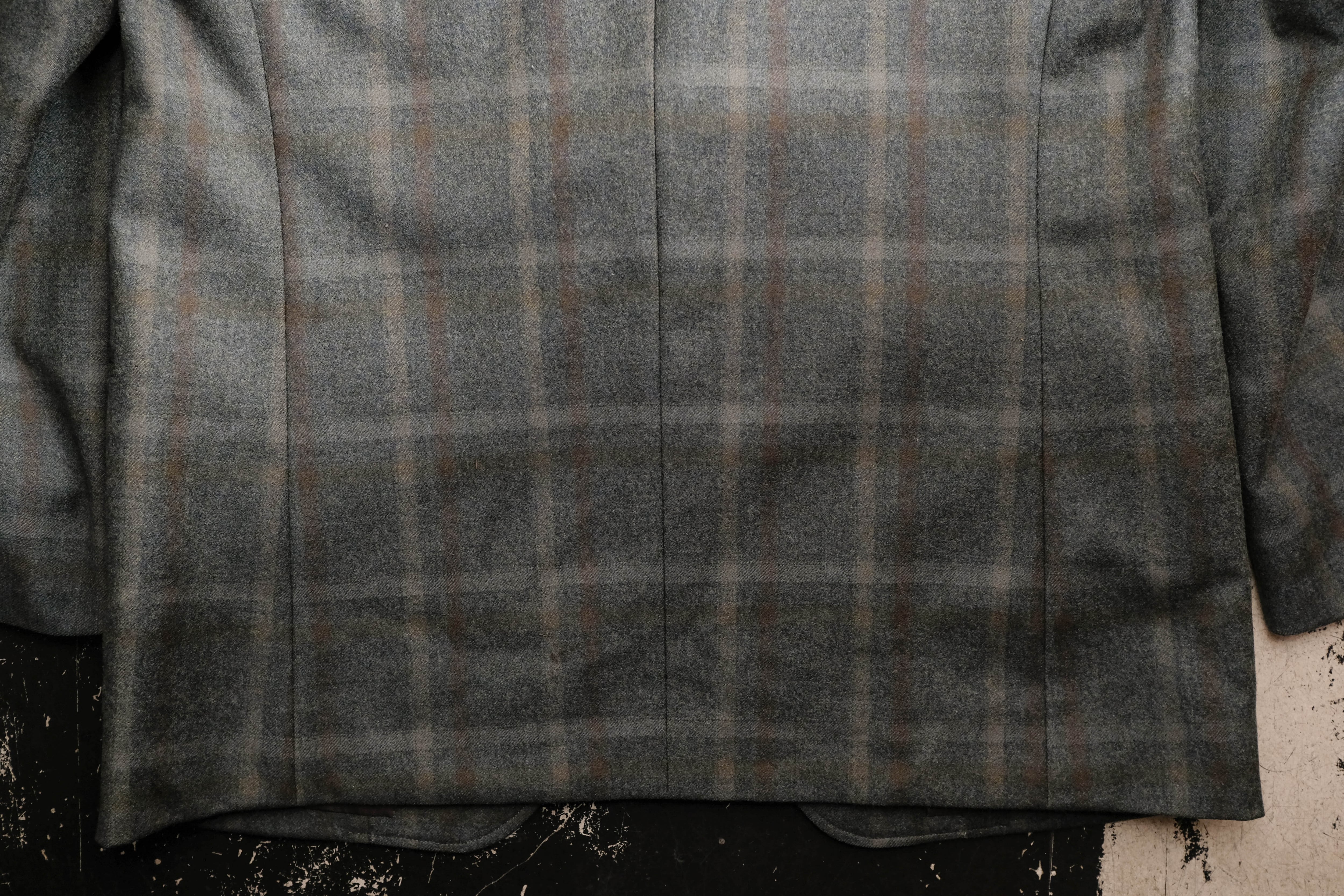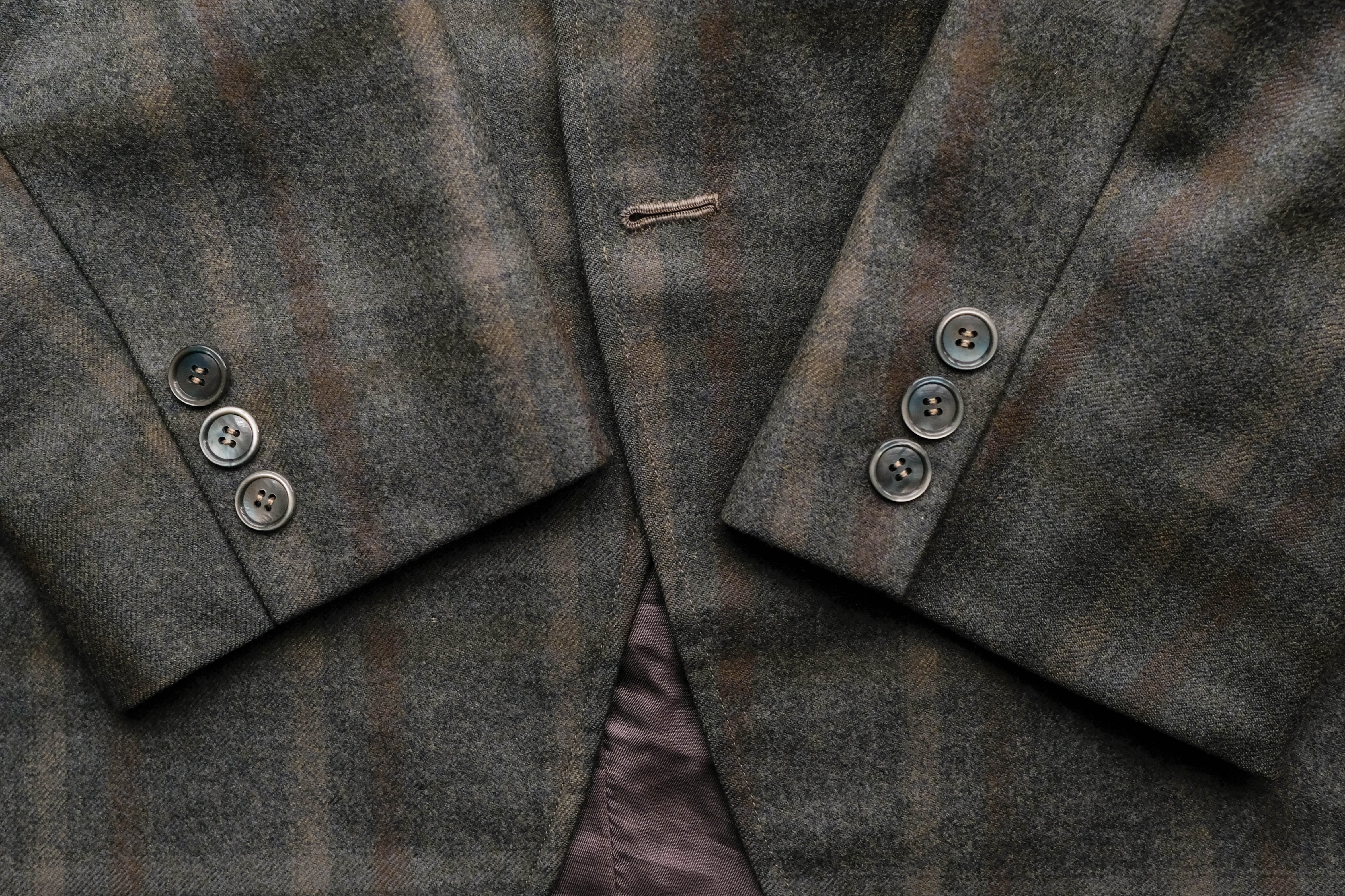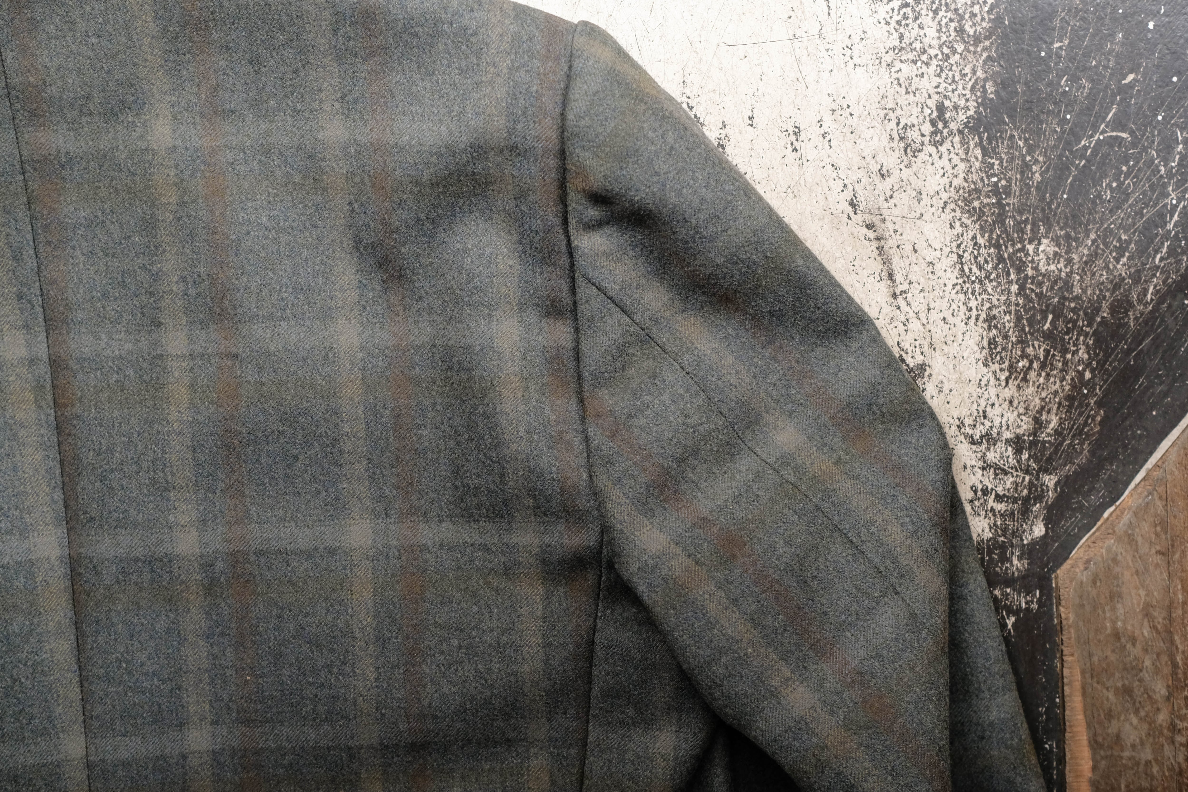 落ち着いたトーンのチェック柄が印象的なヨーロッパのテーラードジャケット。