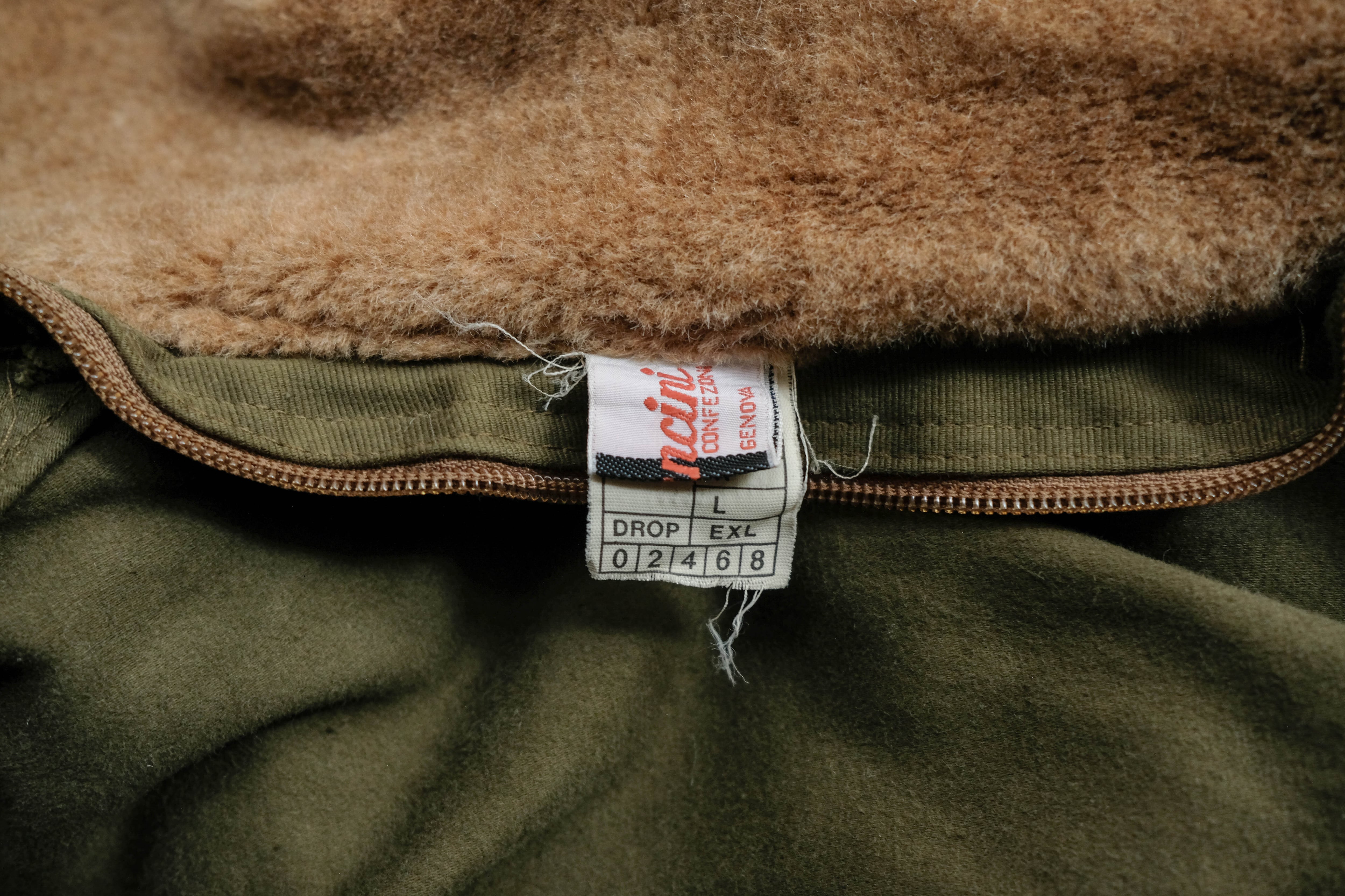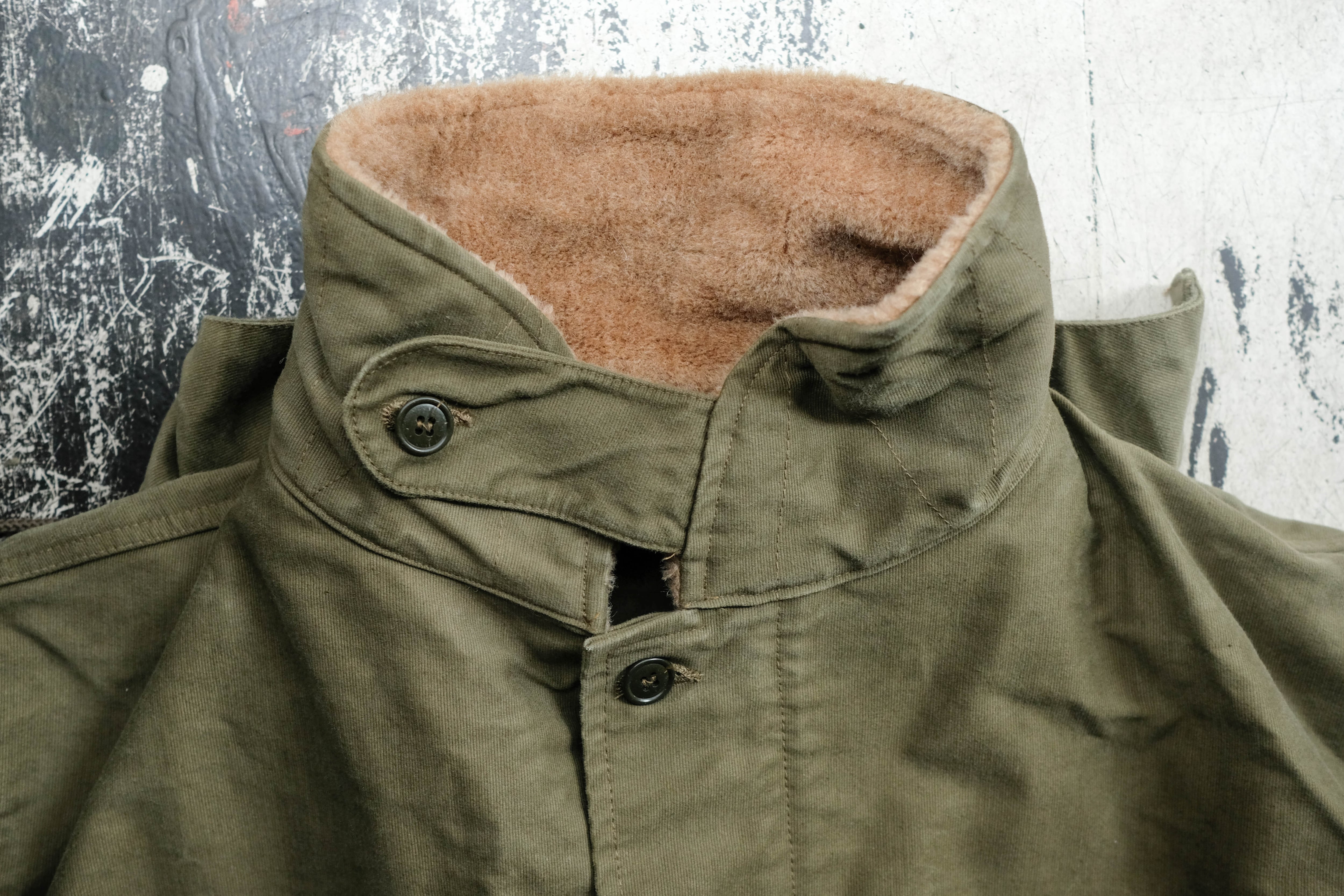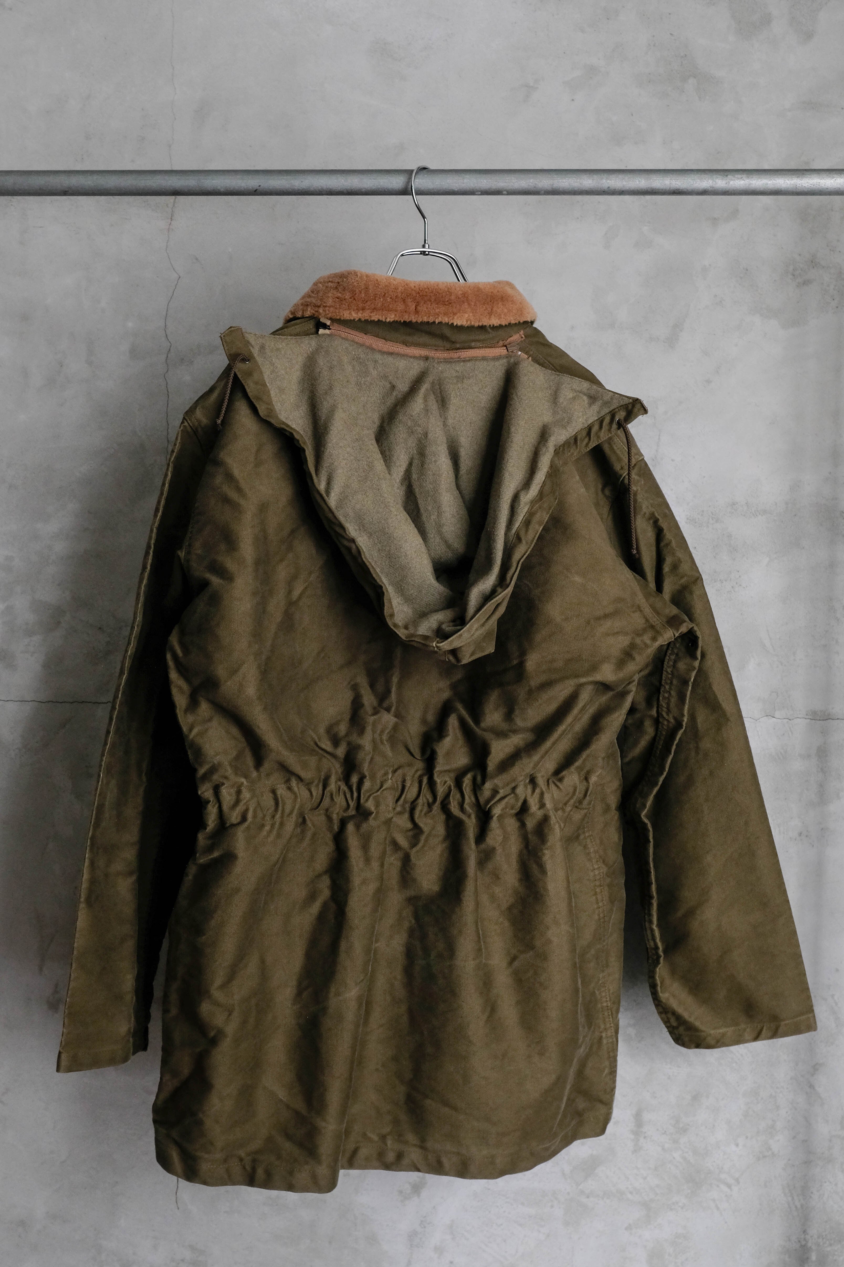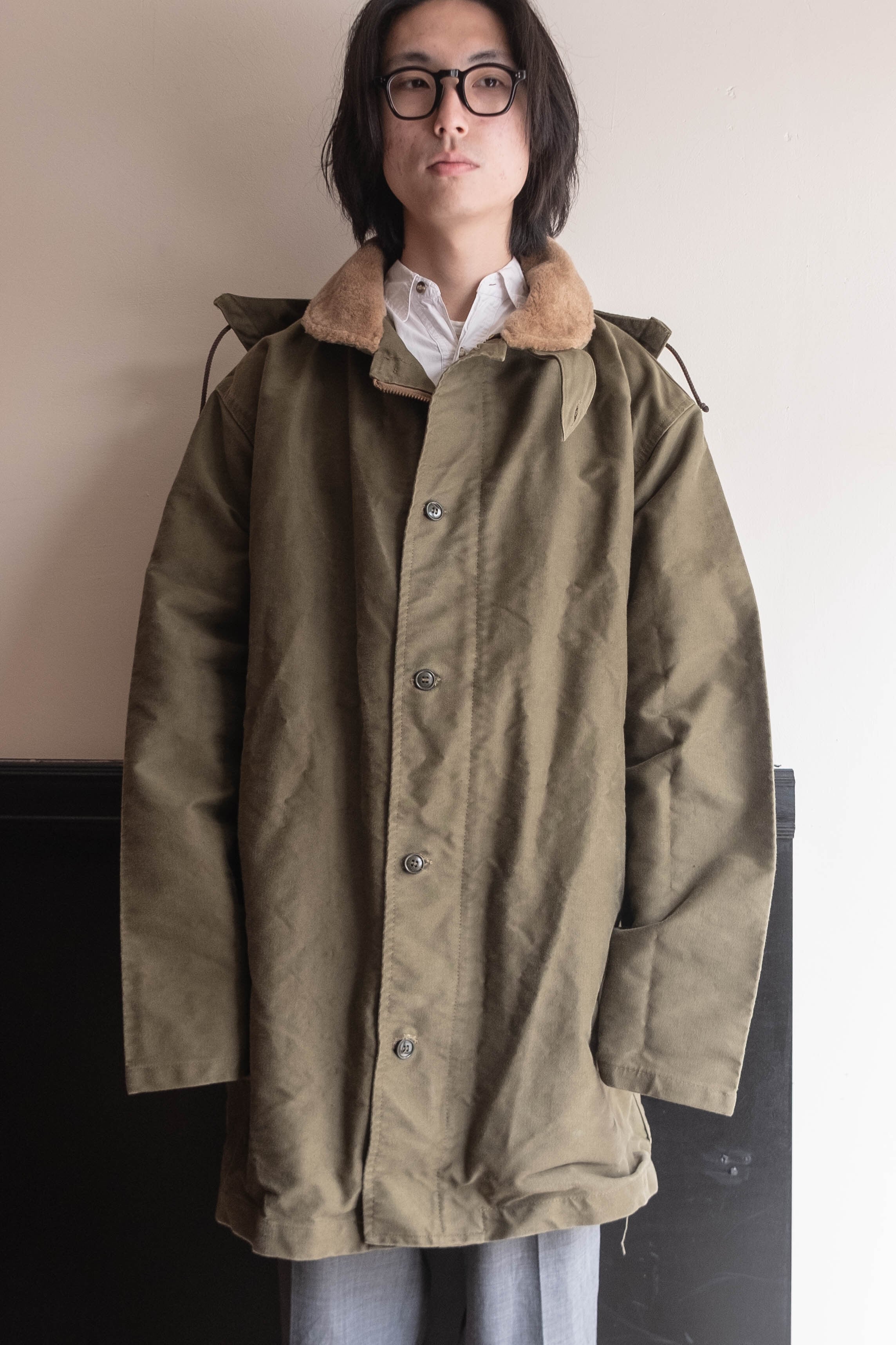 程よくゆとりのあるシルエットと、襟についたボアが特徴的な1着です。