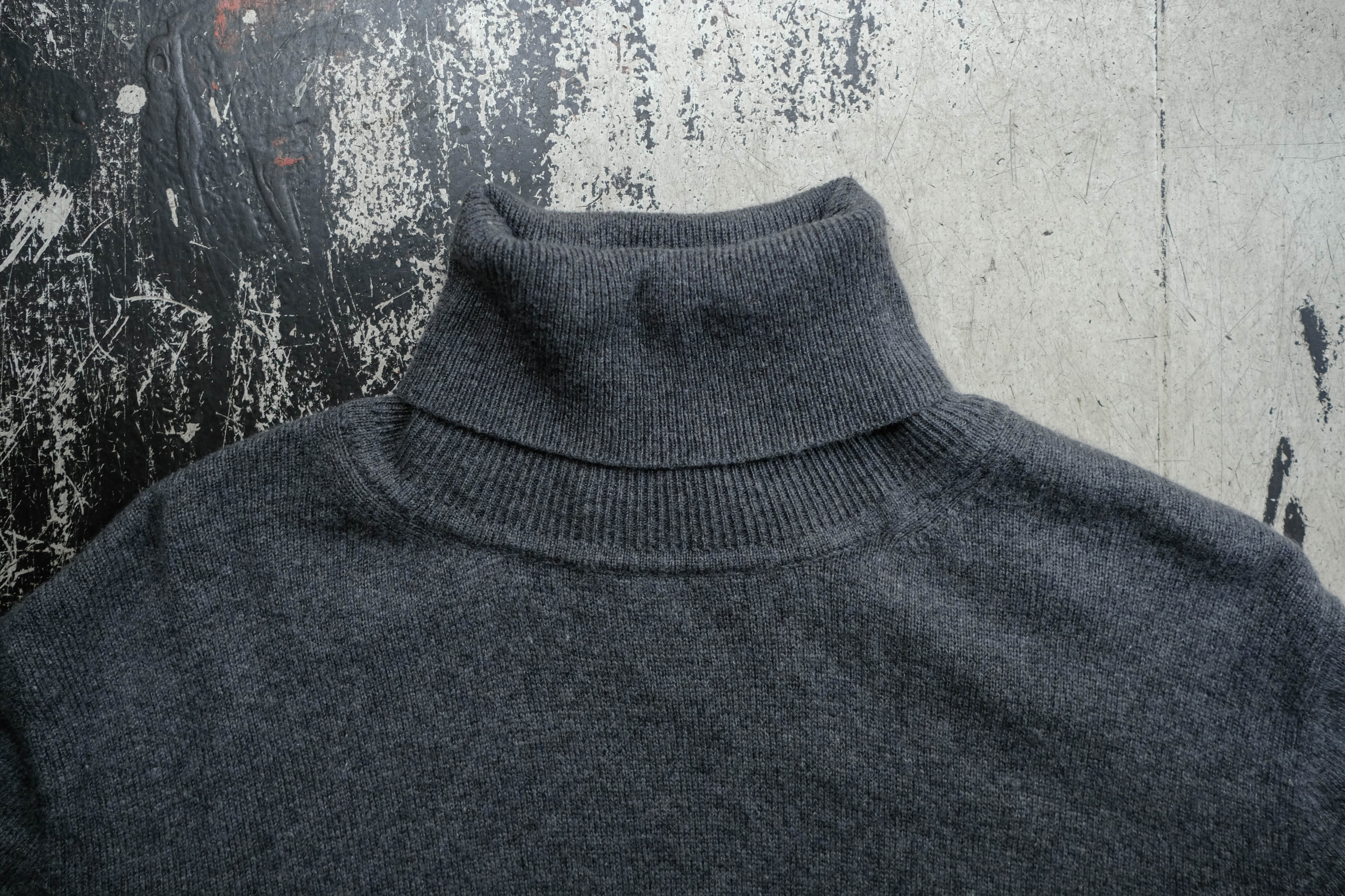 グレーのウールカシミアタートルネックです。