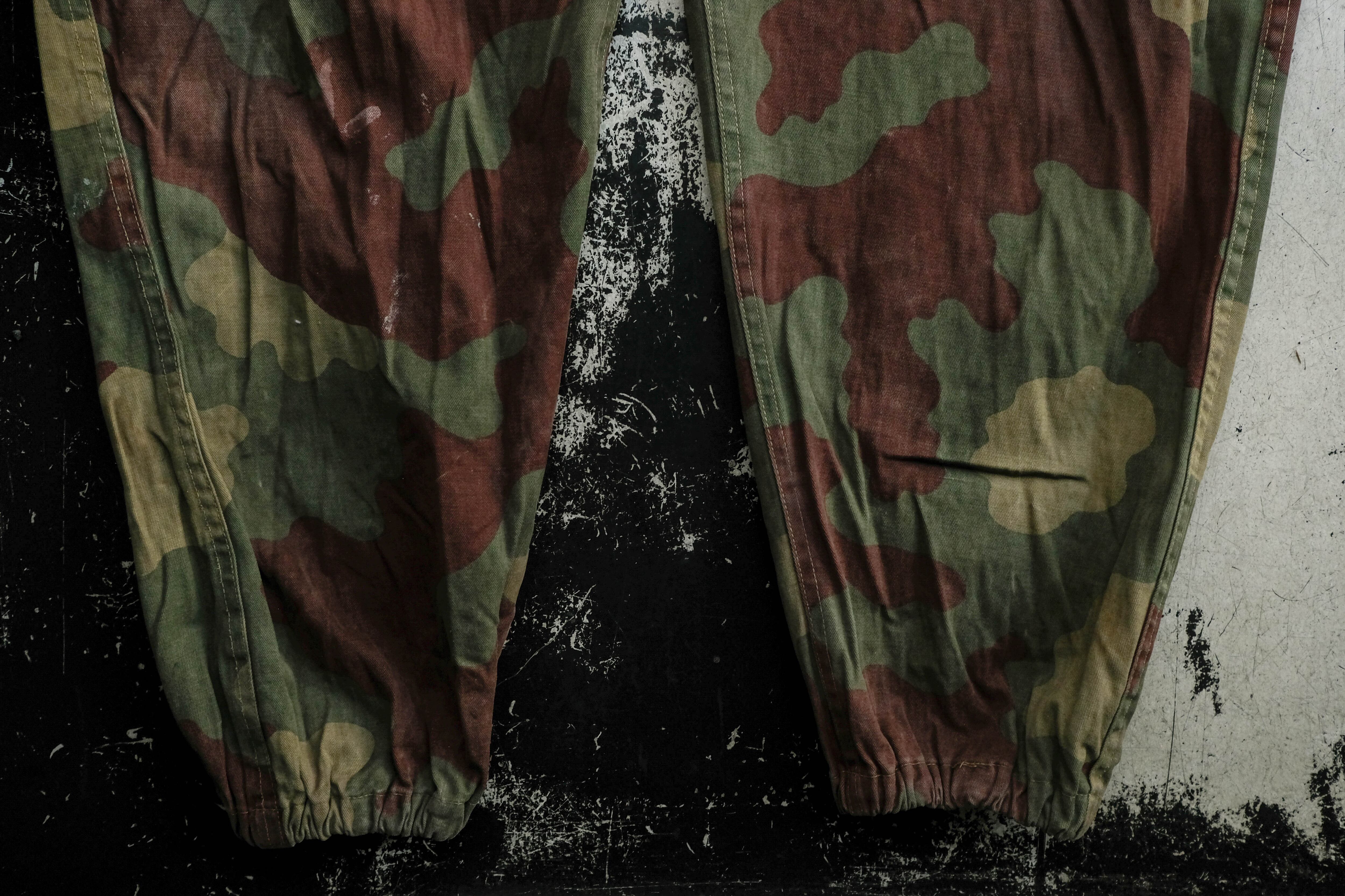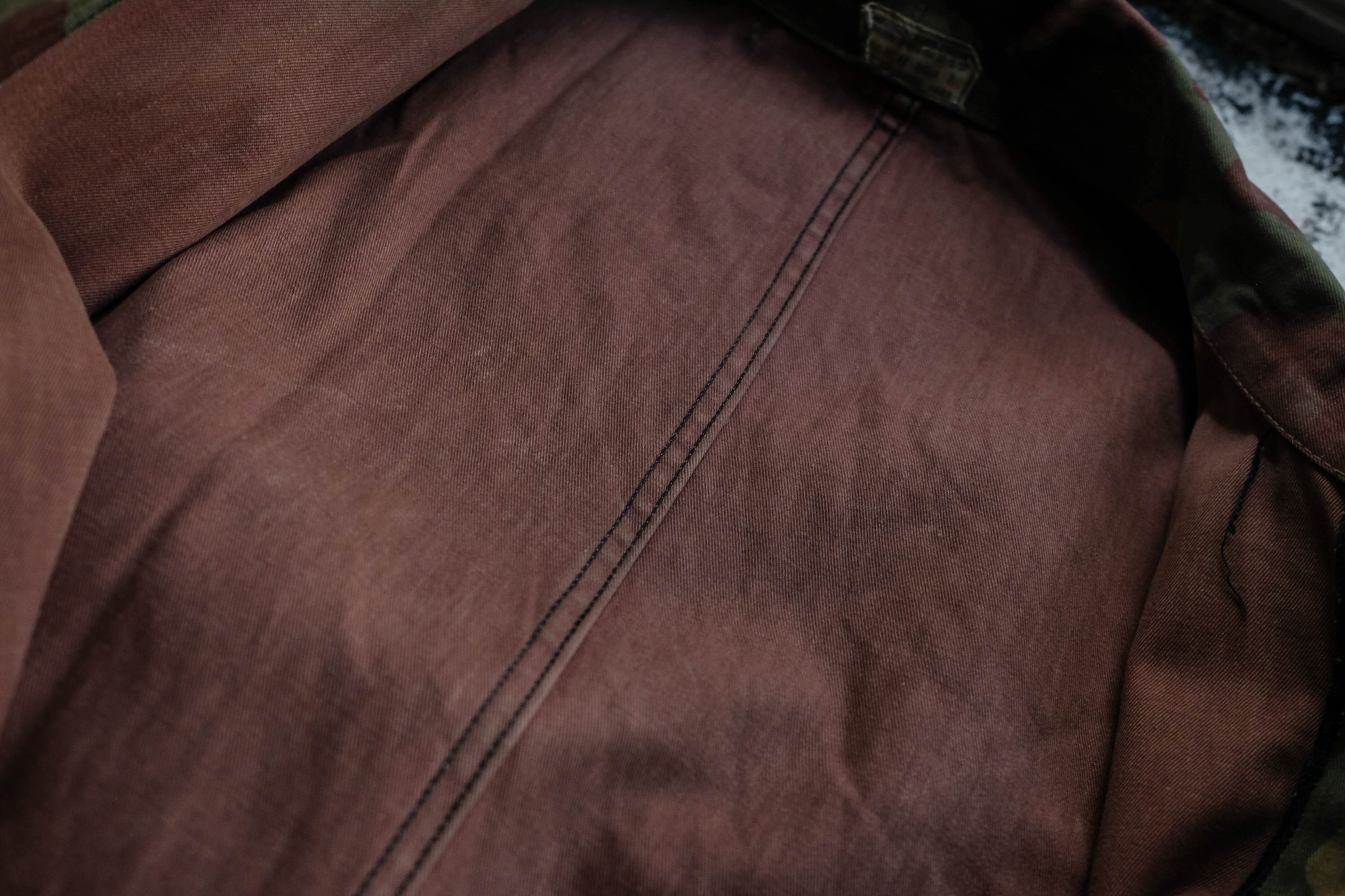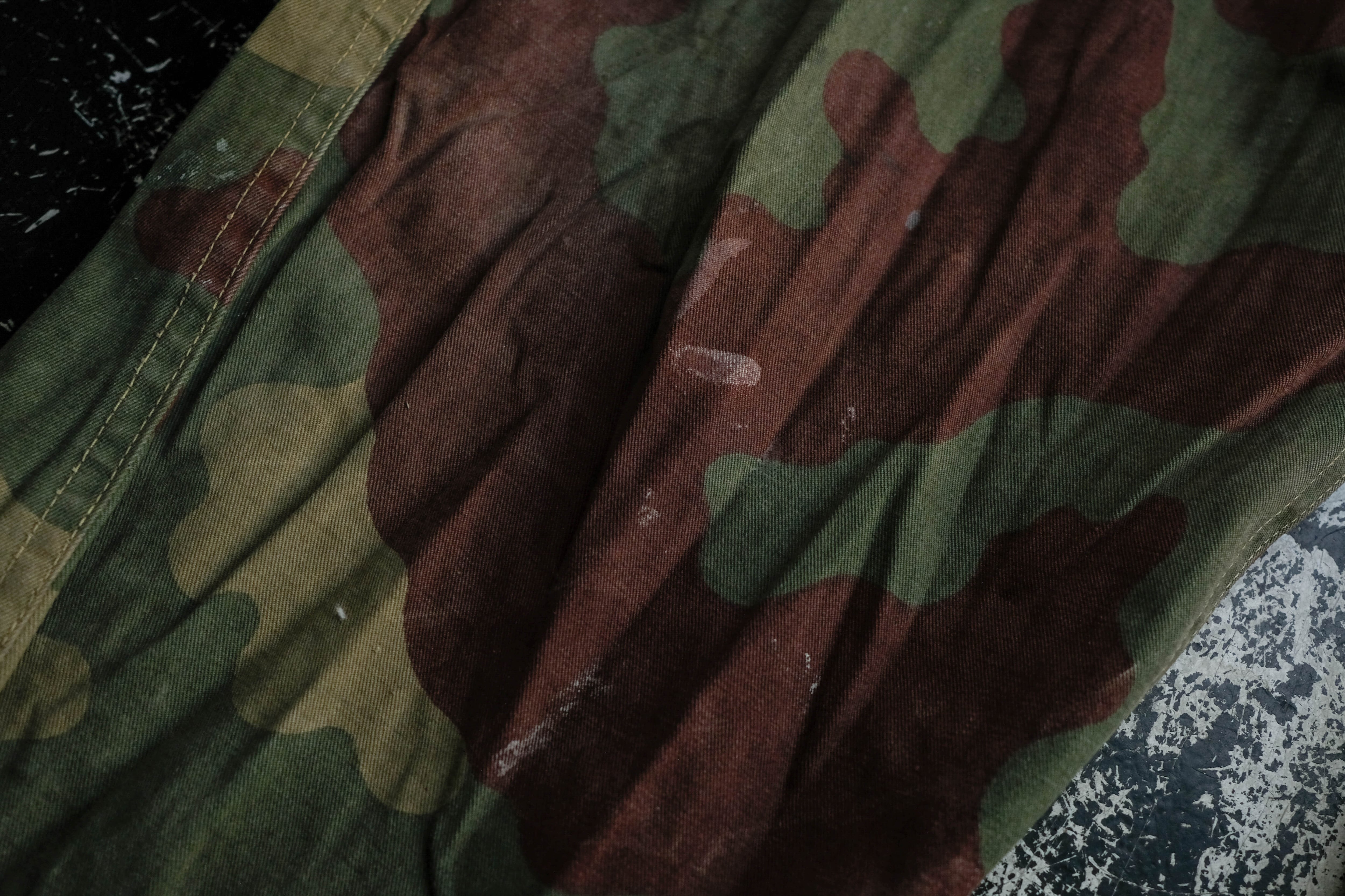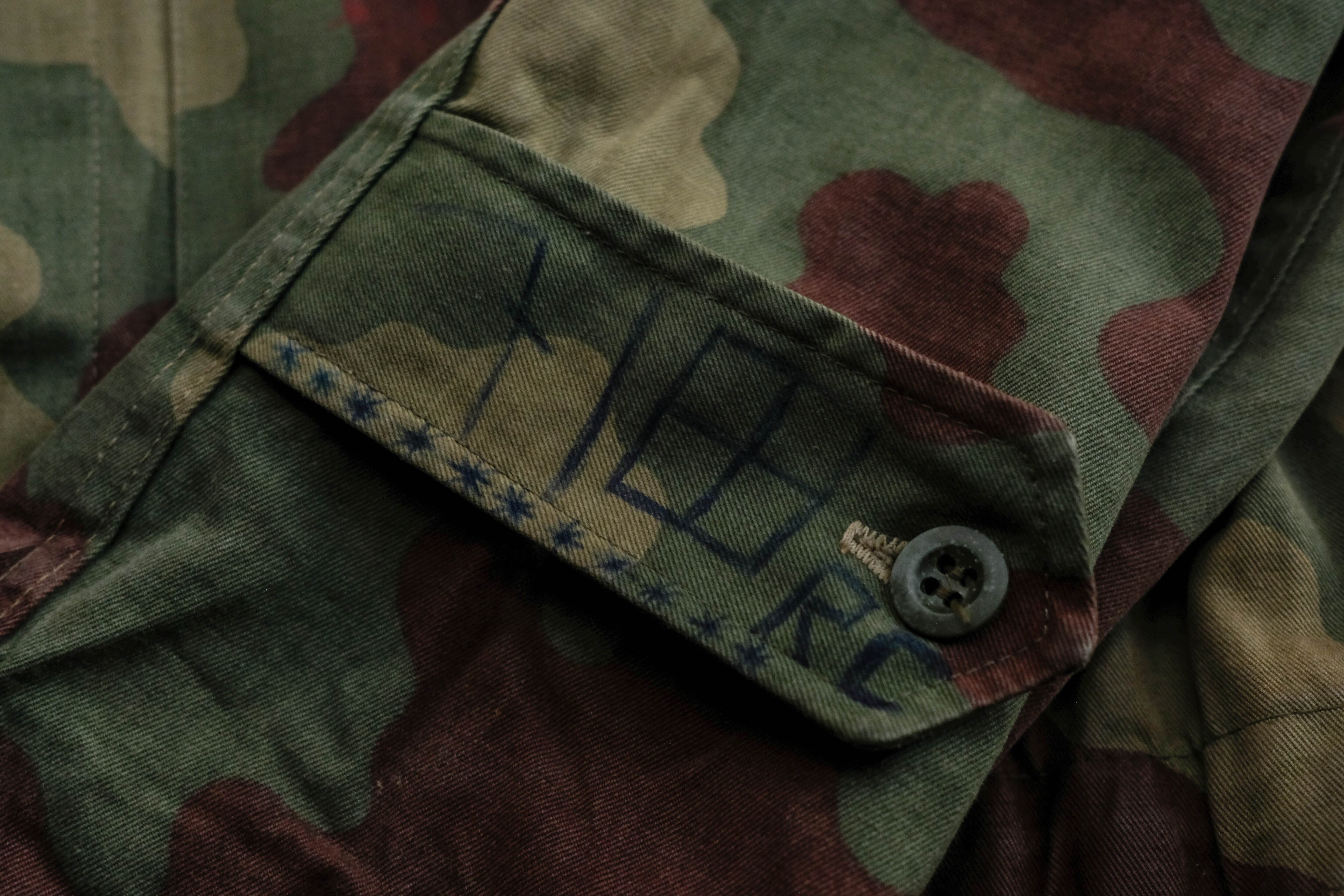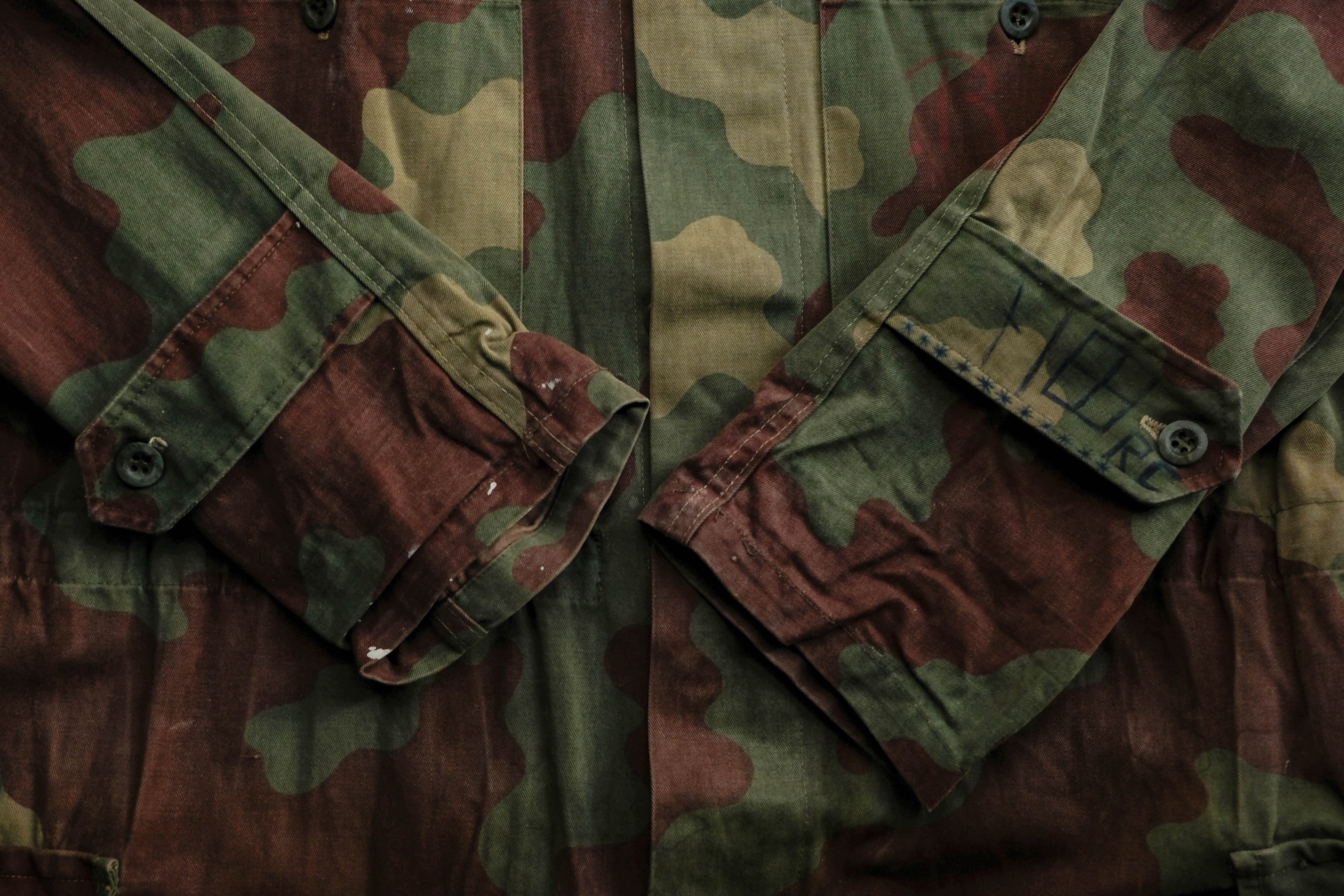 ブラウン、オリーブ、ベージュが混ざる独特の迷彩パターンは、他国のカモとはまた違う、どこか柔らかくてファッションにも馴染む色合い。
