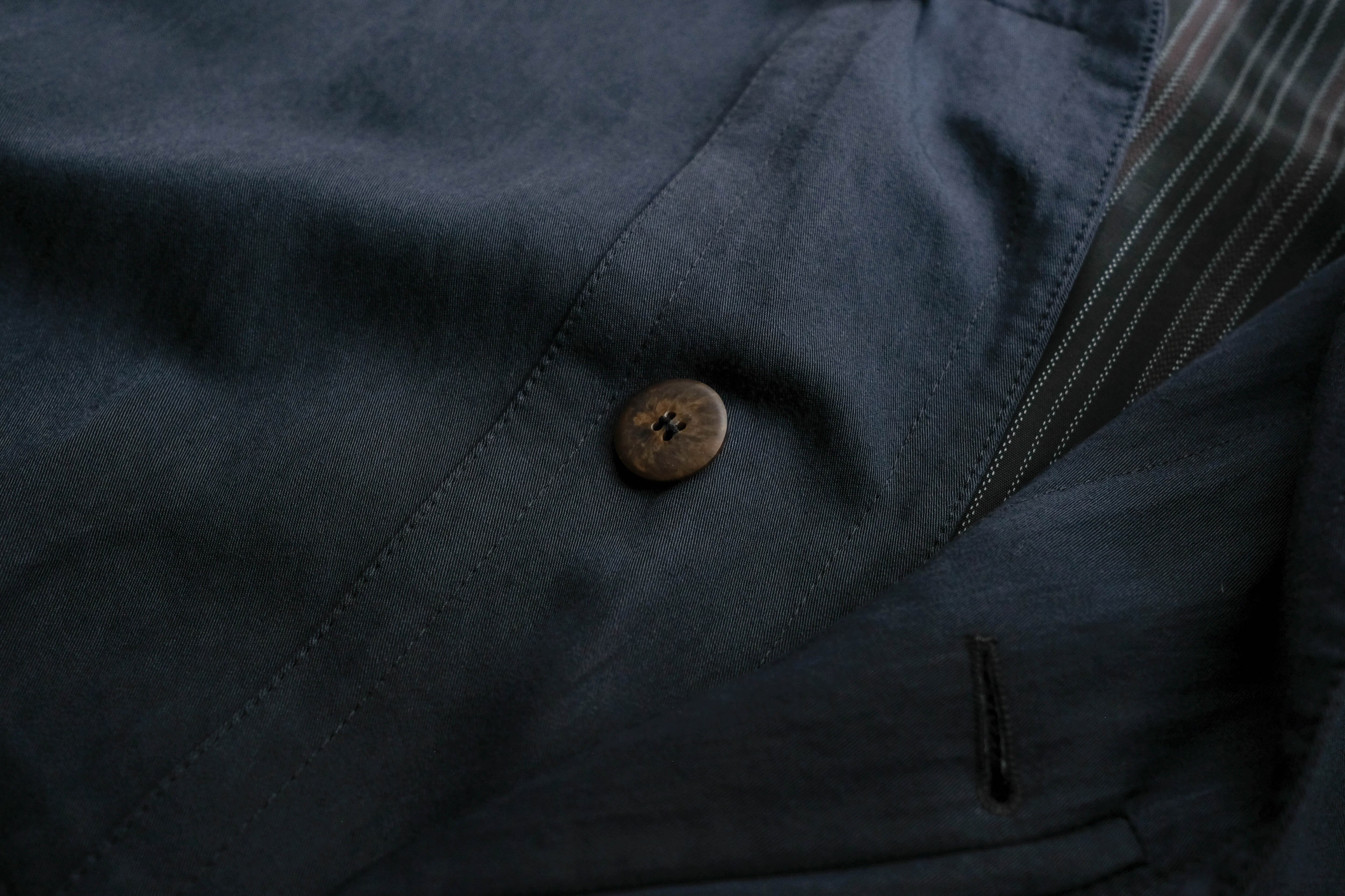 エポレット付きですが、肩はしっかり収まるバランスの良いシルエット。ミリタリーの要素を持ちながらも、上品にまとまっています。