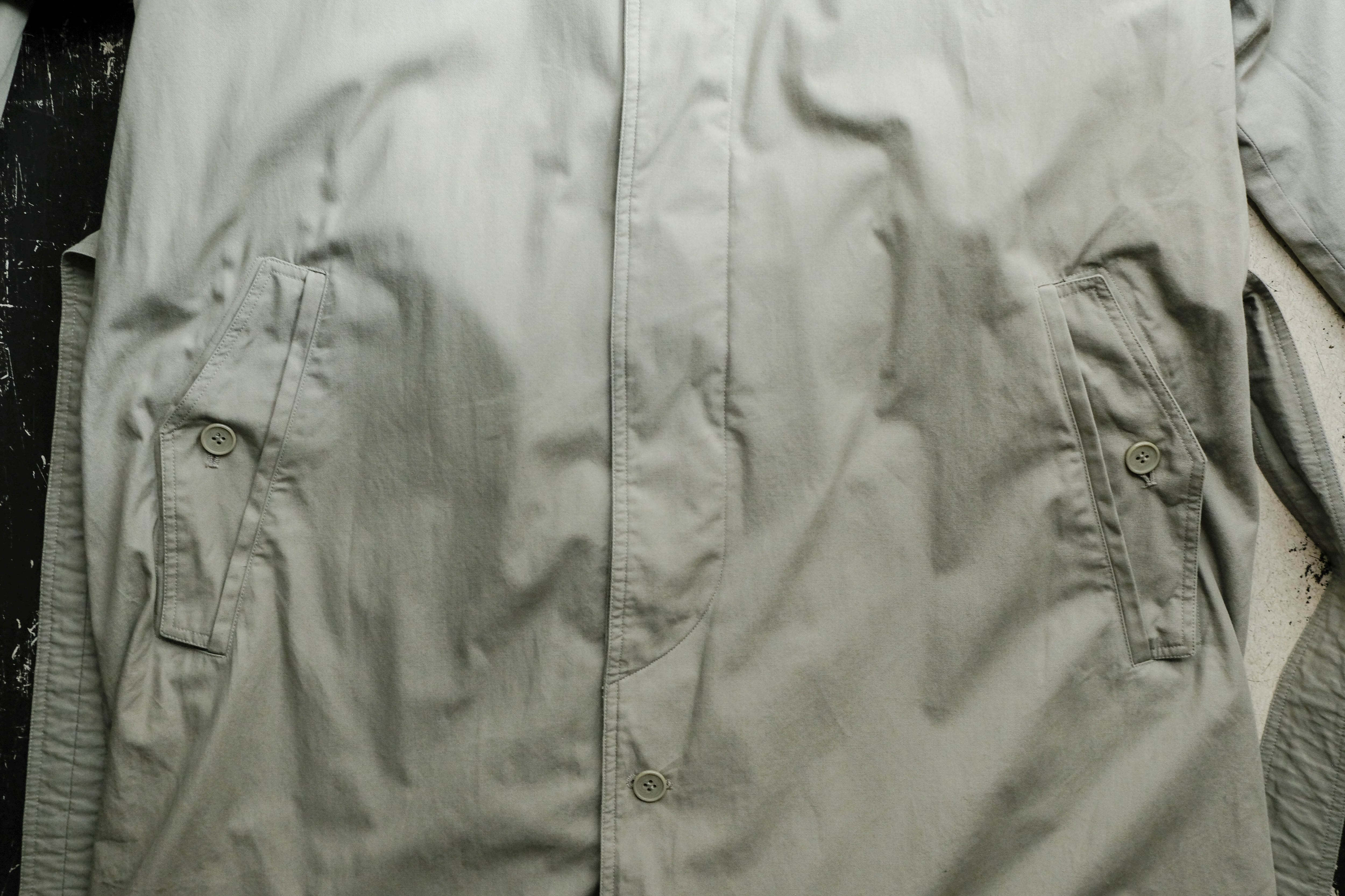 レインコートをルーツに持つブランドらしく、機能性と上品さのバランスが絶妙な一着です。軽くしなやかな生地感で、さらっと羽織れる着心地の良さも魅力。