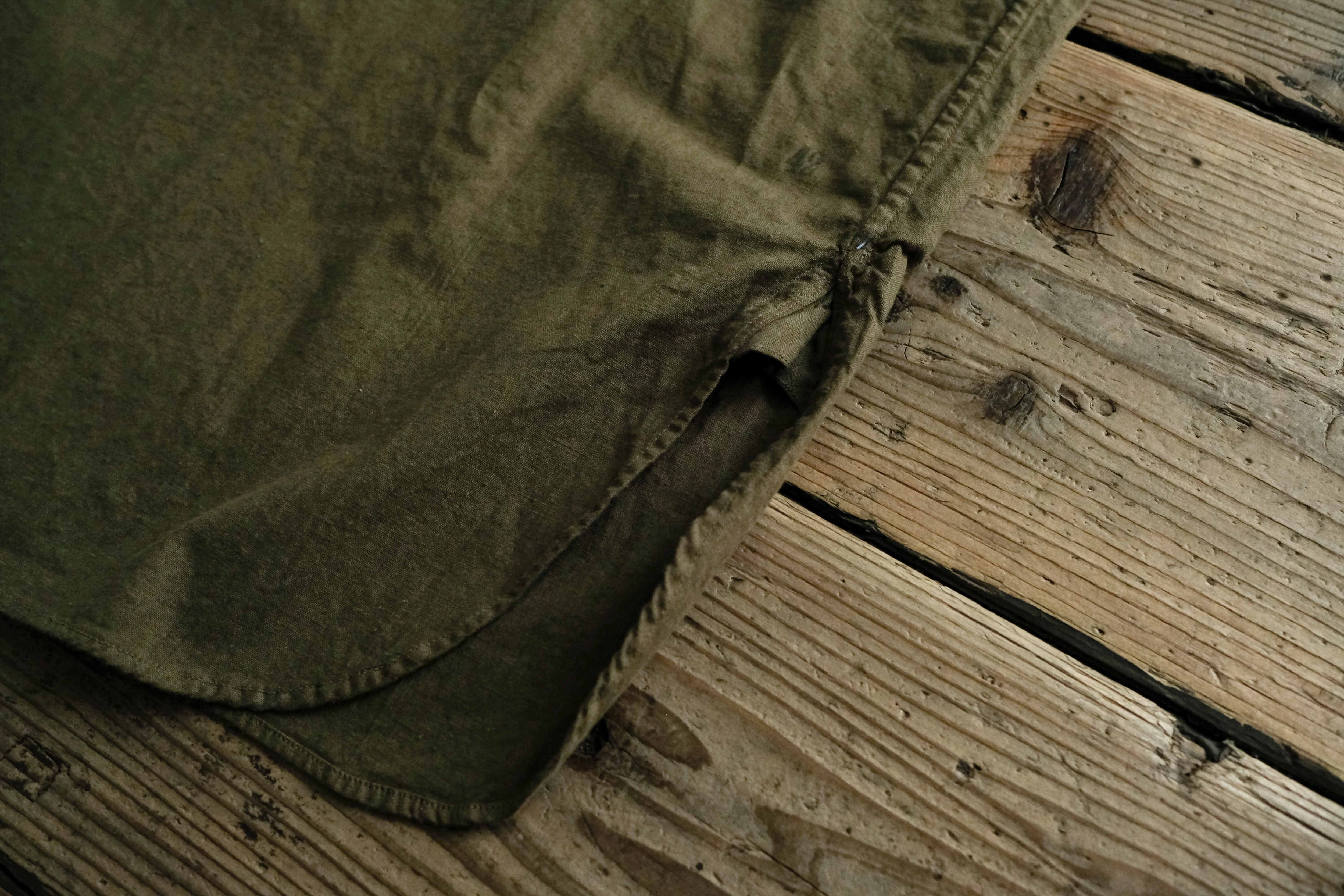 スウェーデン軍によく見られる素材で、体に張りつかず、適度なハリを持っているので、着用時に緩くなりすぎないよい生地です。