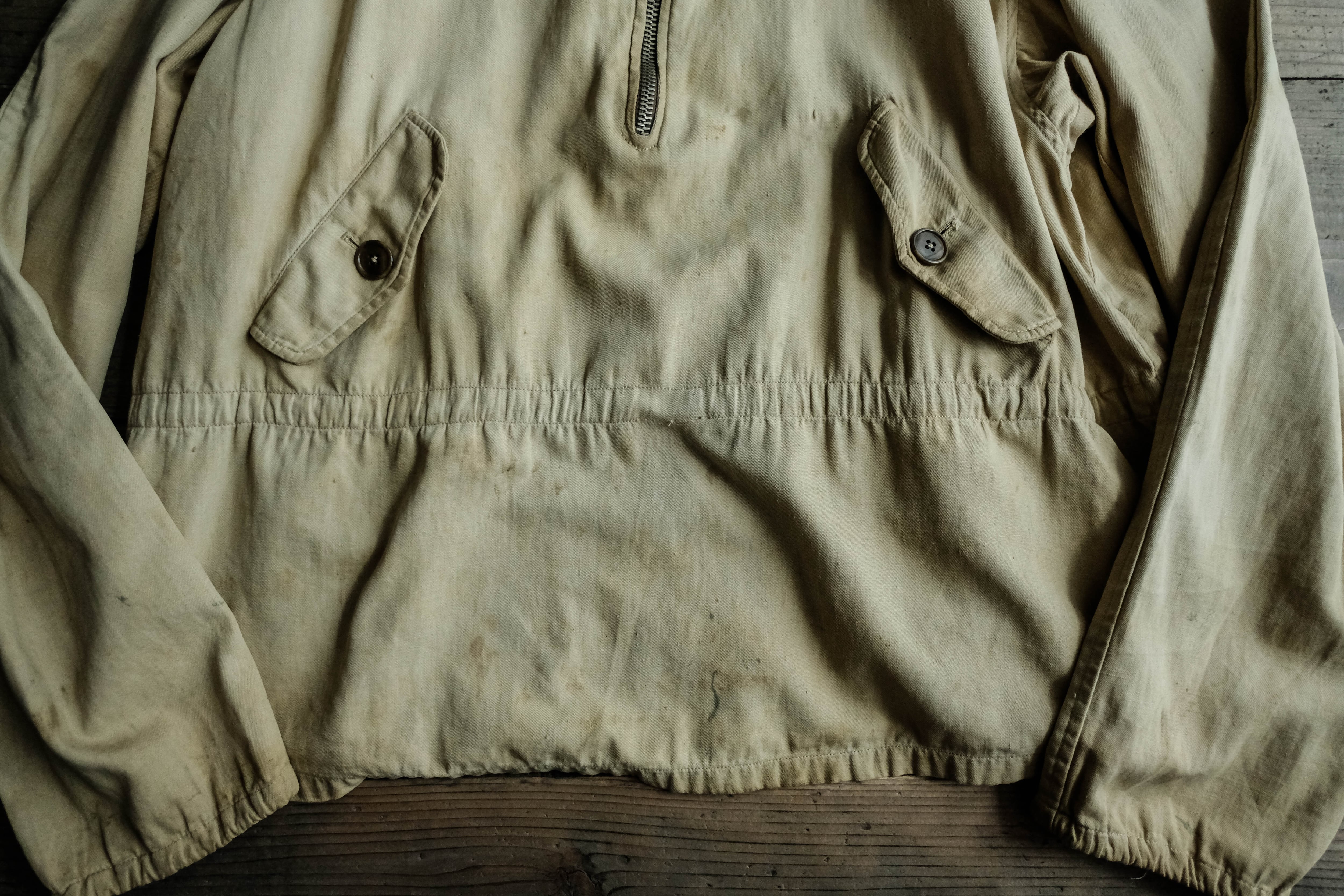 ハーフジップデザインに、斜めについたフラップポケット、チンストラップなどのグッドデザイン多めで、スモック好きにおすすめしたいコレクションピースです。