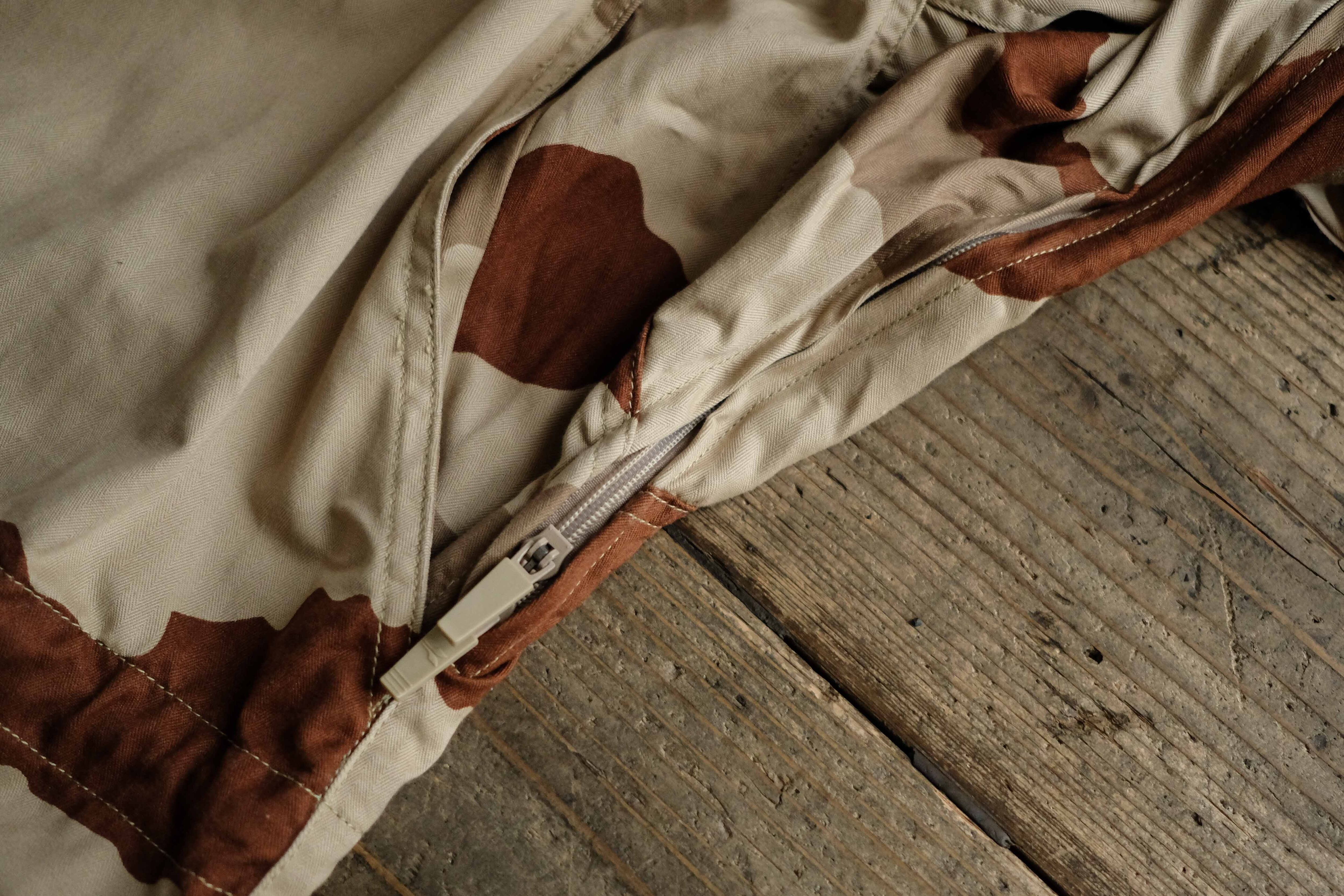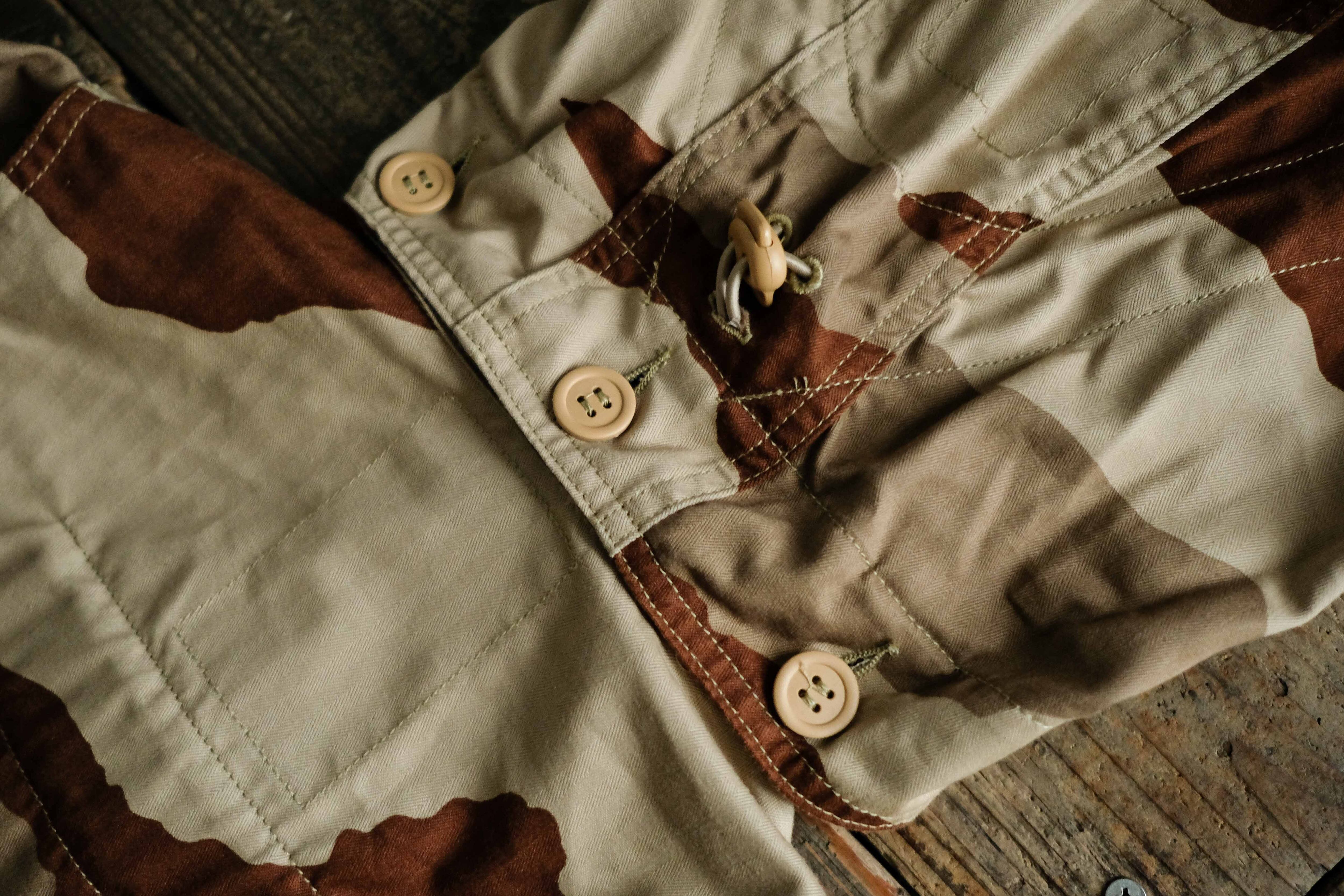 柔らかいサンドベージュのカモ、柄自体にも角がなく、カモ柄の中では愛想がよいといえそうなパターンです。