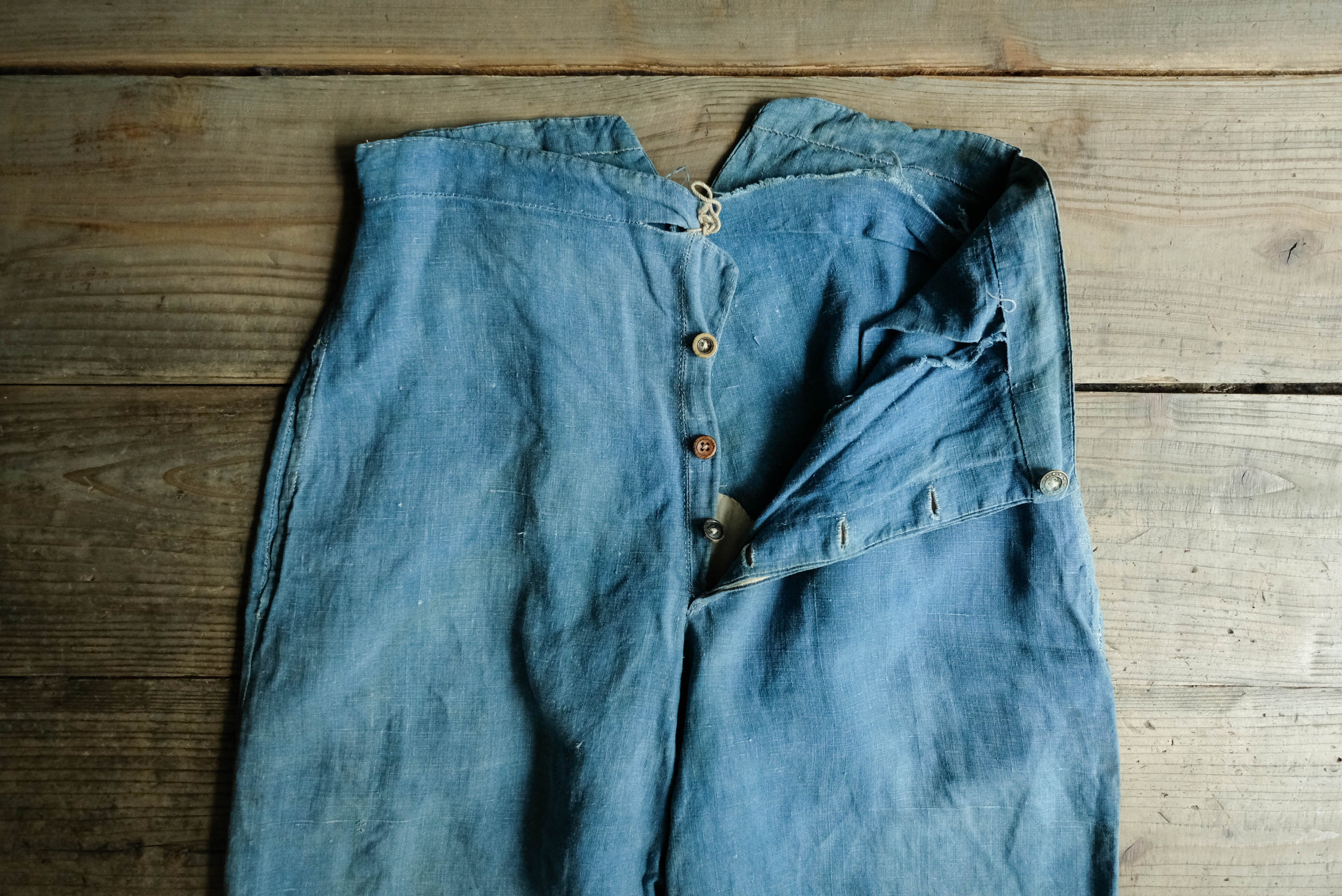 19世紀後半から20世紀初頭にかけて作られた、古いインディゴパンツが入荷しました。