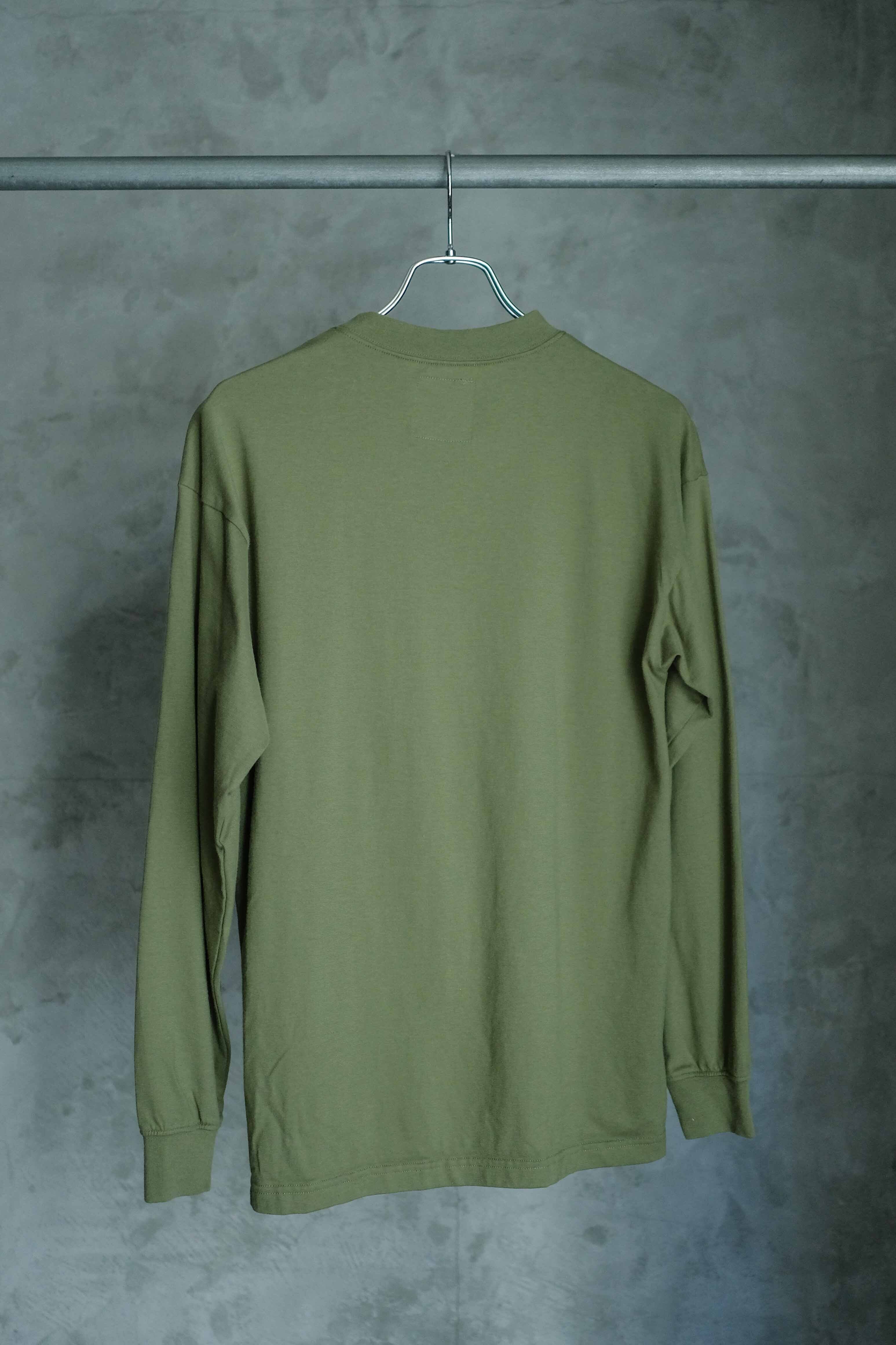 しっかりと詰まった丸首に、爽やかなグリーンカラーが印象的な1着。