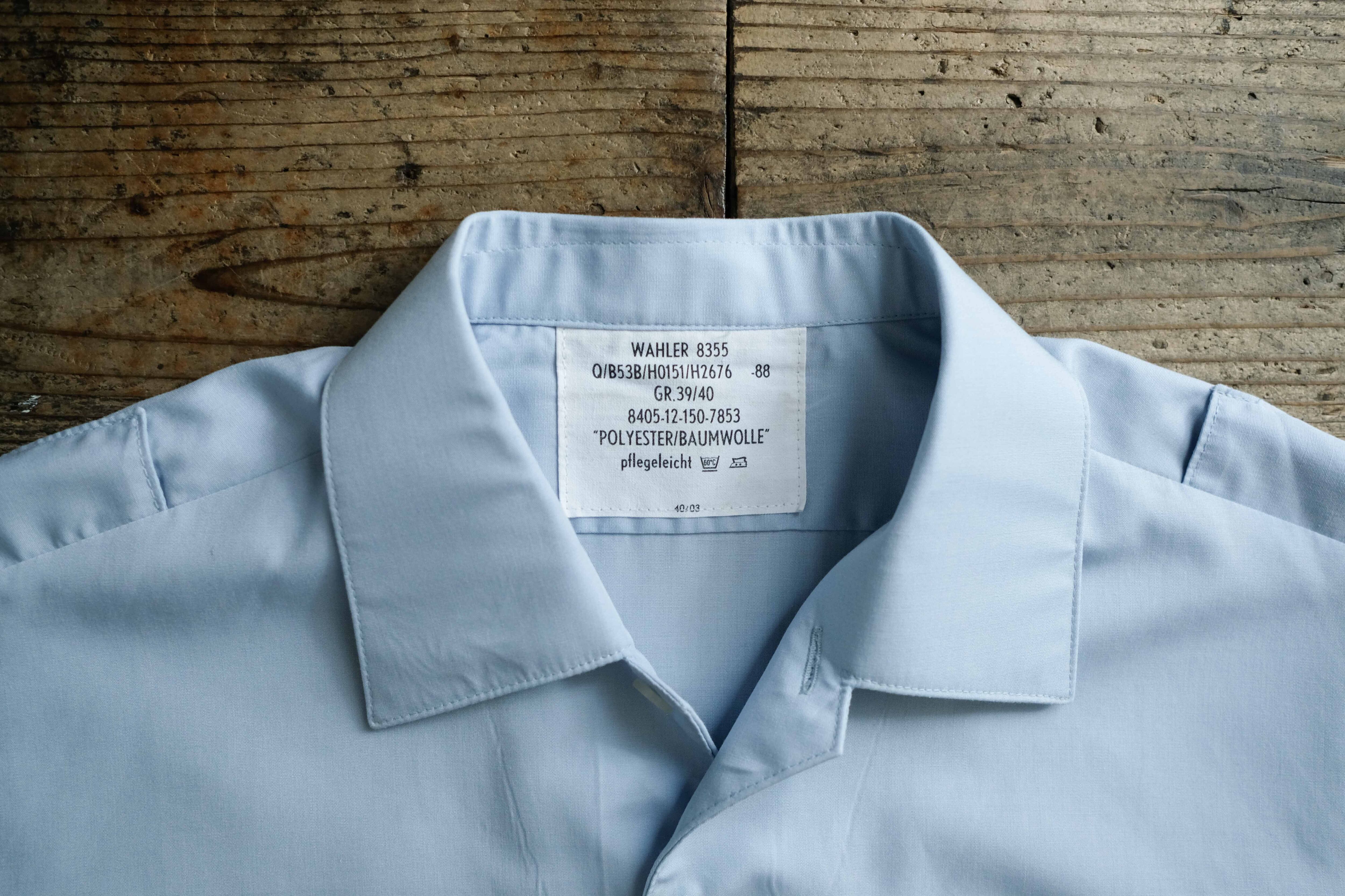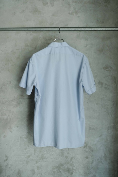 爽やかなサックスブルーカラーにやや開き気味な襟元が涼しげな印象です。