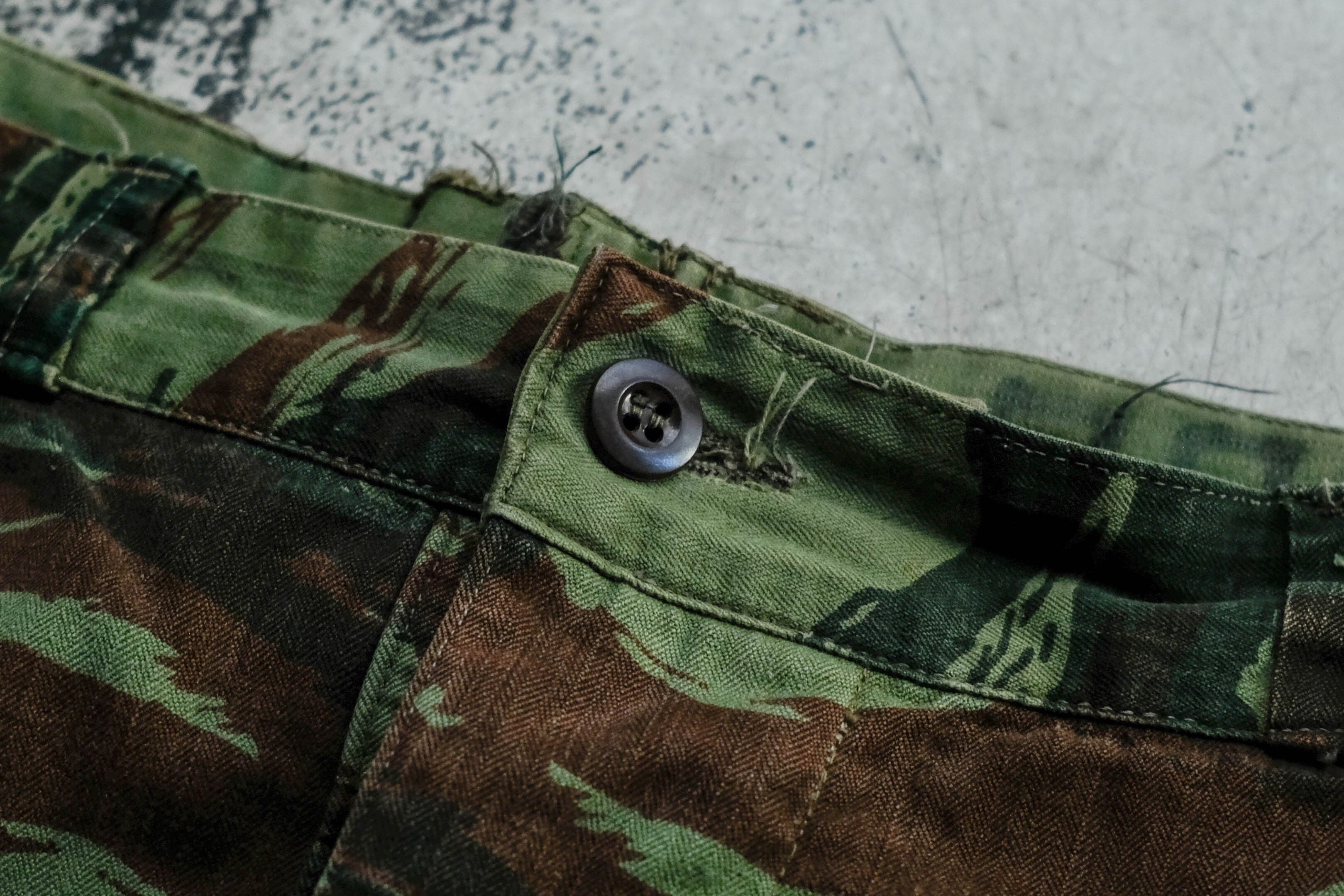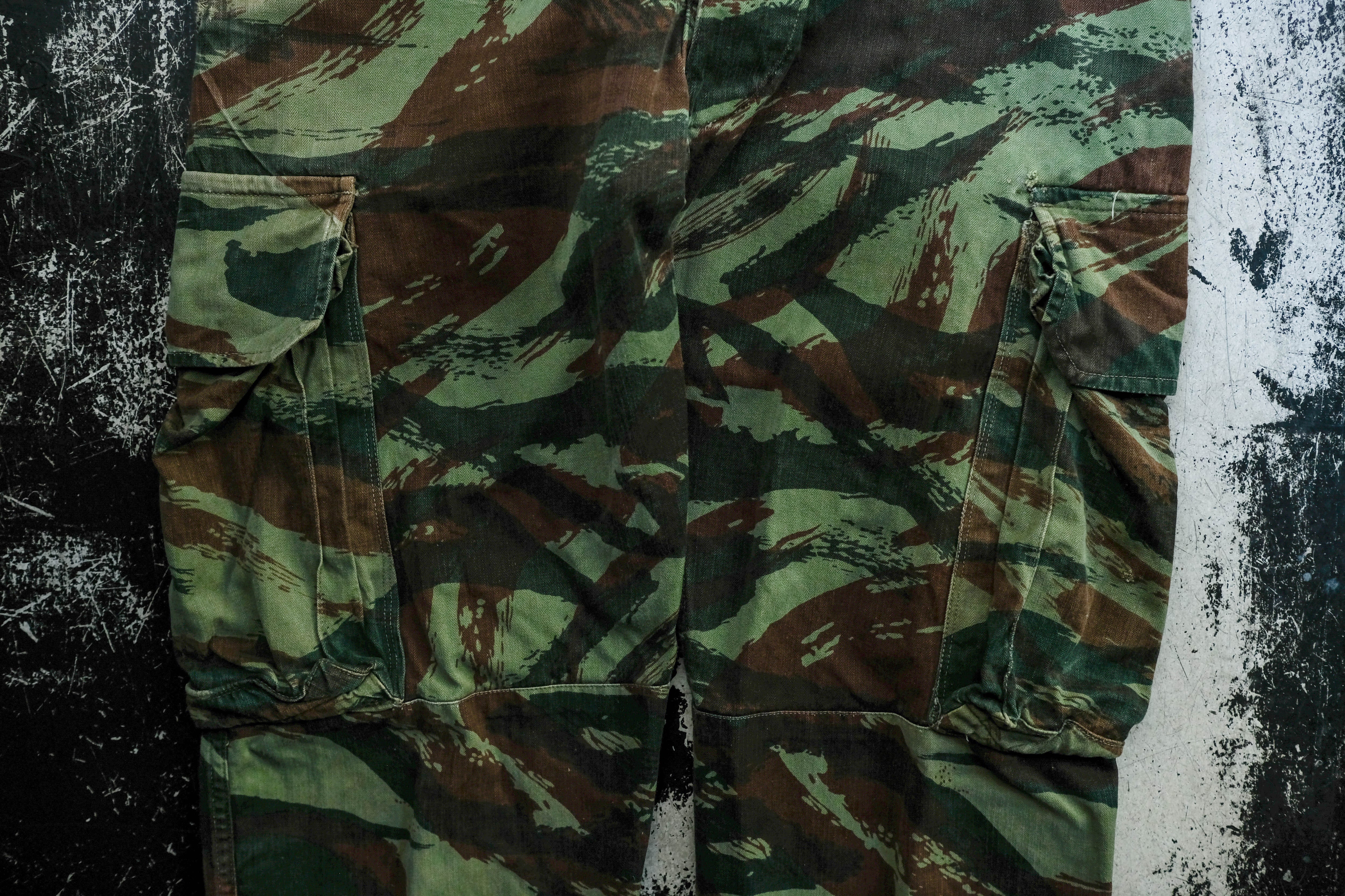 ブラシで描いたような迷彩柄が目を引くパンツはフランス軍外人部隊が使用していたもの。