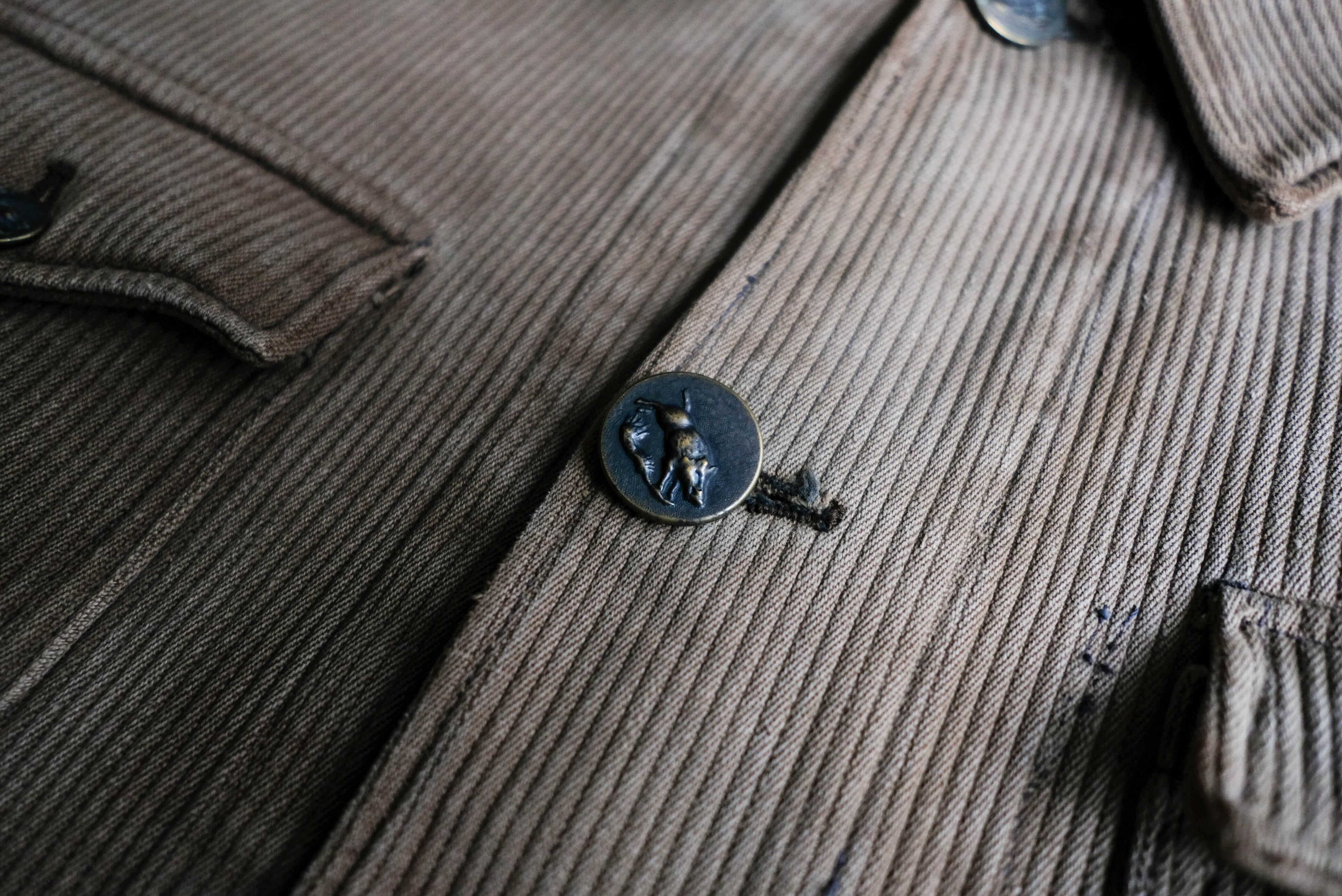 ボタンは全てハンティングを象徴する動物ボタン。馬・鹿・イノシシなどが型取られています。