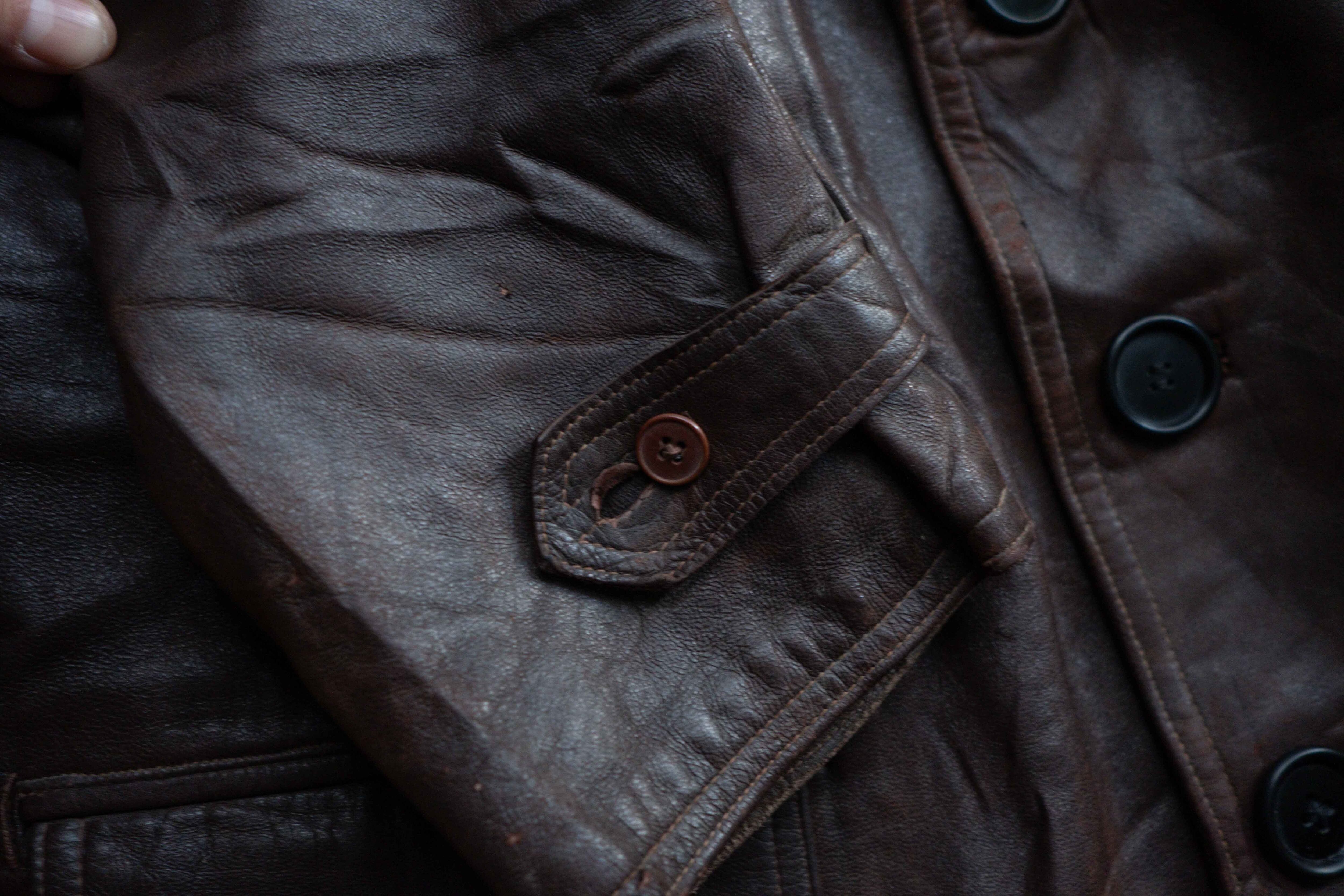 良いエイジングが見られるもちっとしたブラウンレザーが魅力的。
