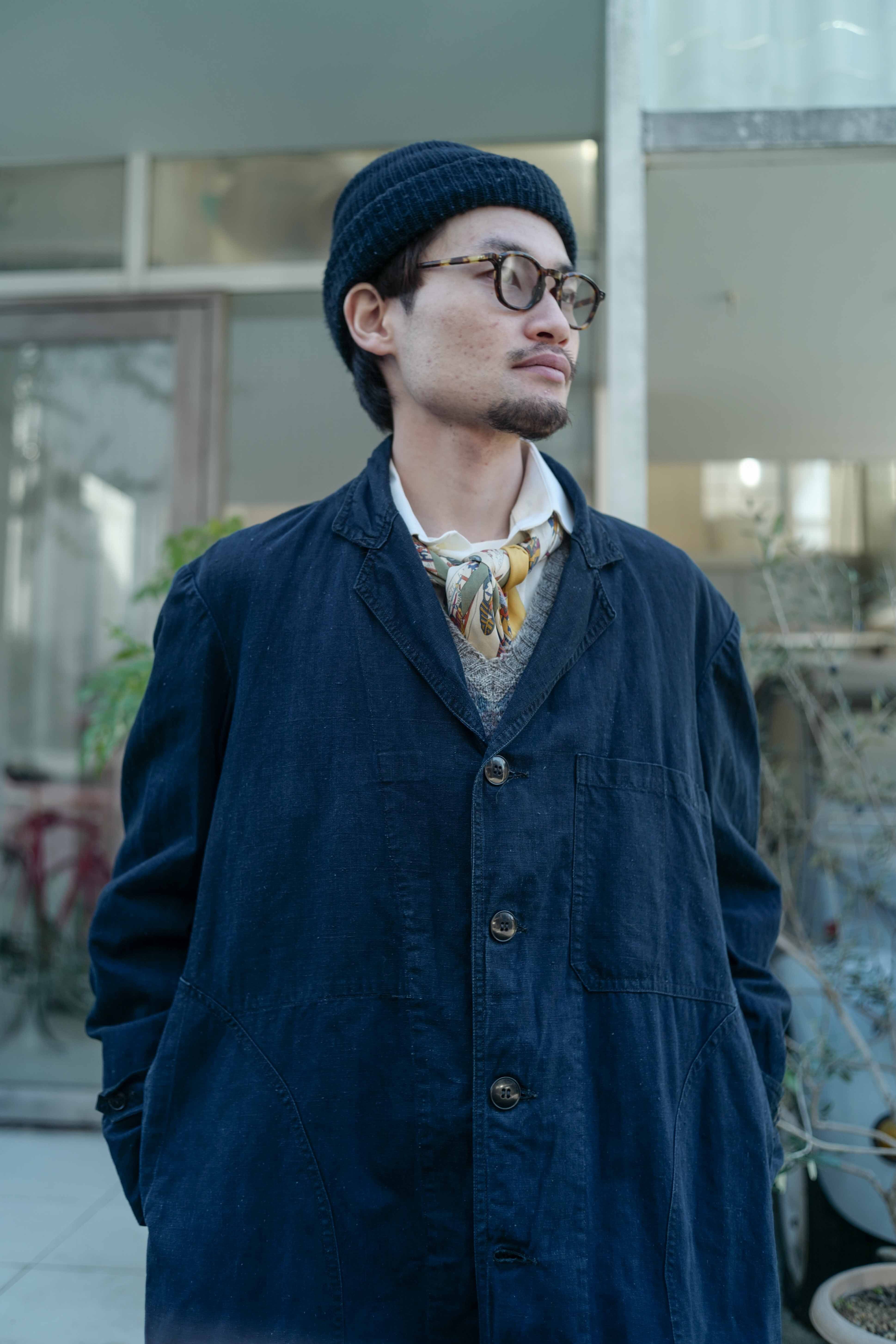 1940〜50年代フランスのインディゴコットンリネンのマキニョンコートです。