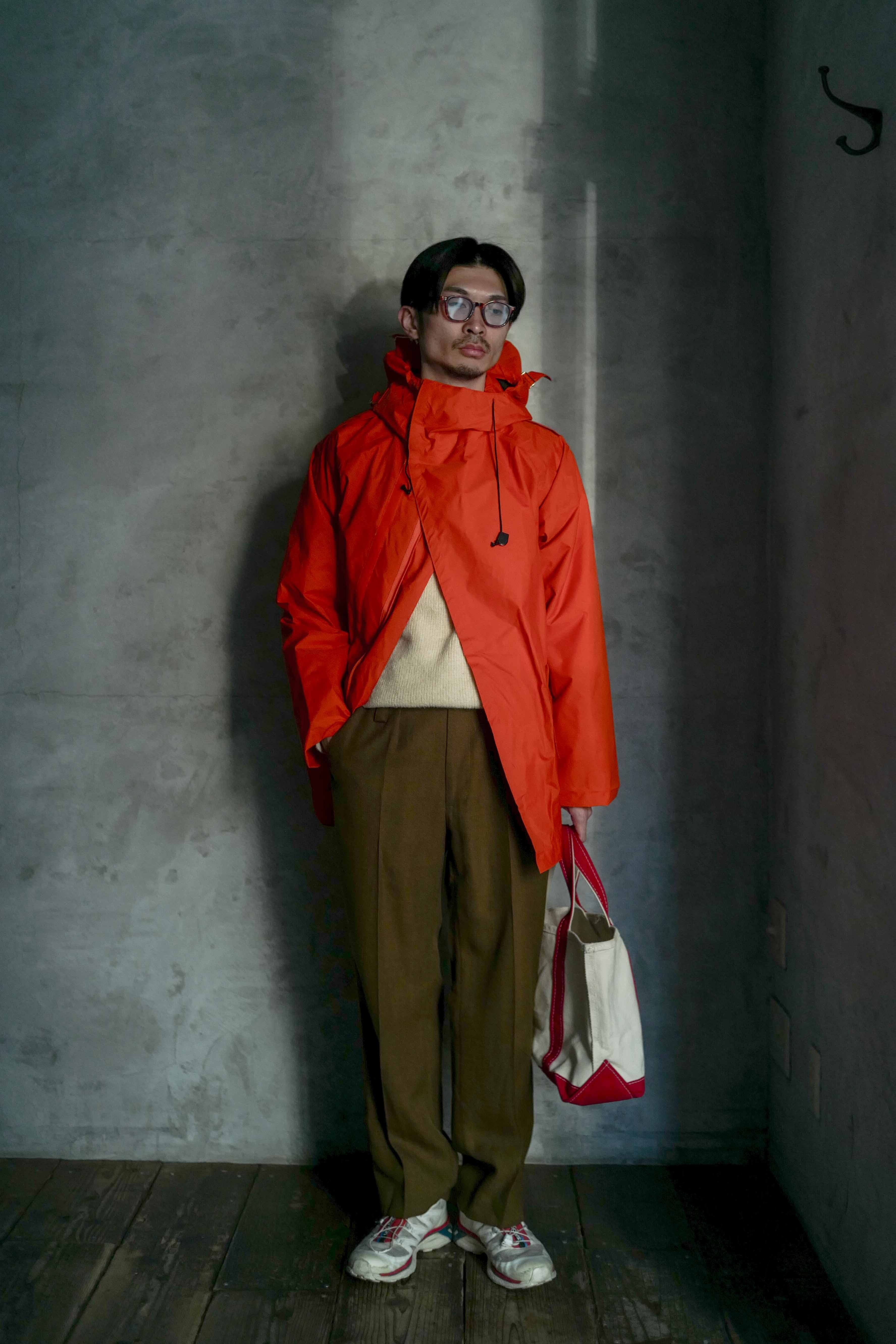 ボリュームがあるジャケットなので太めのチノパンやウールパンツと合わせるとバランスよく取り入れられると思います。