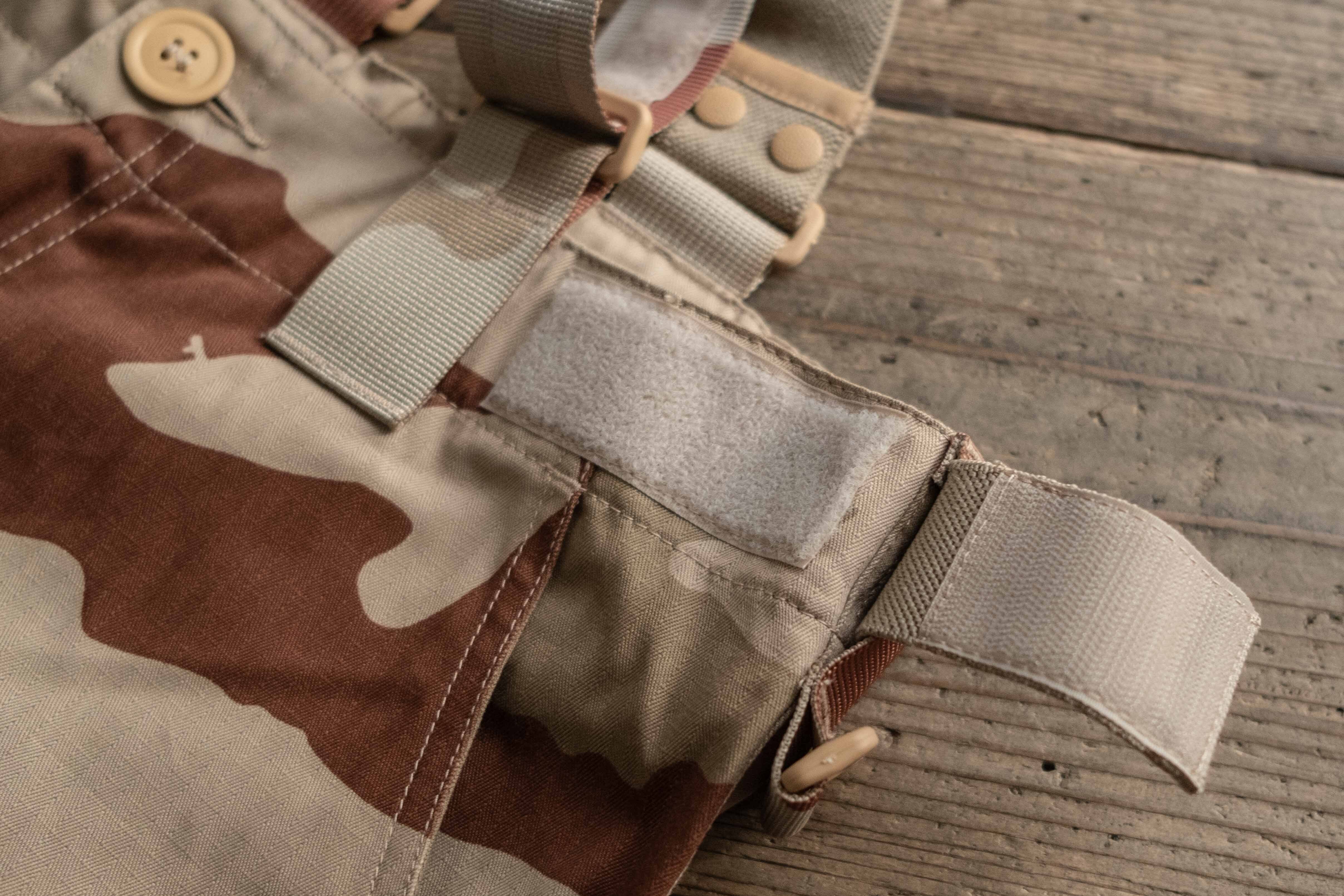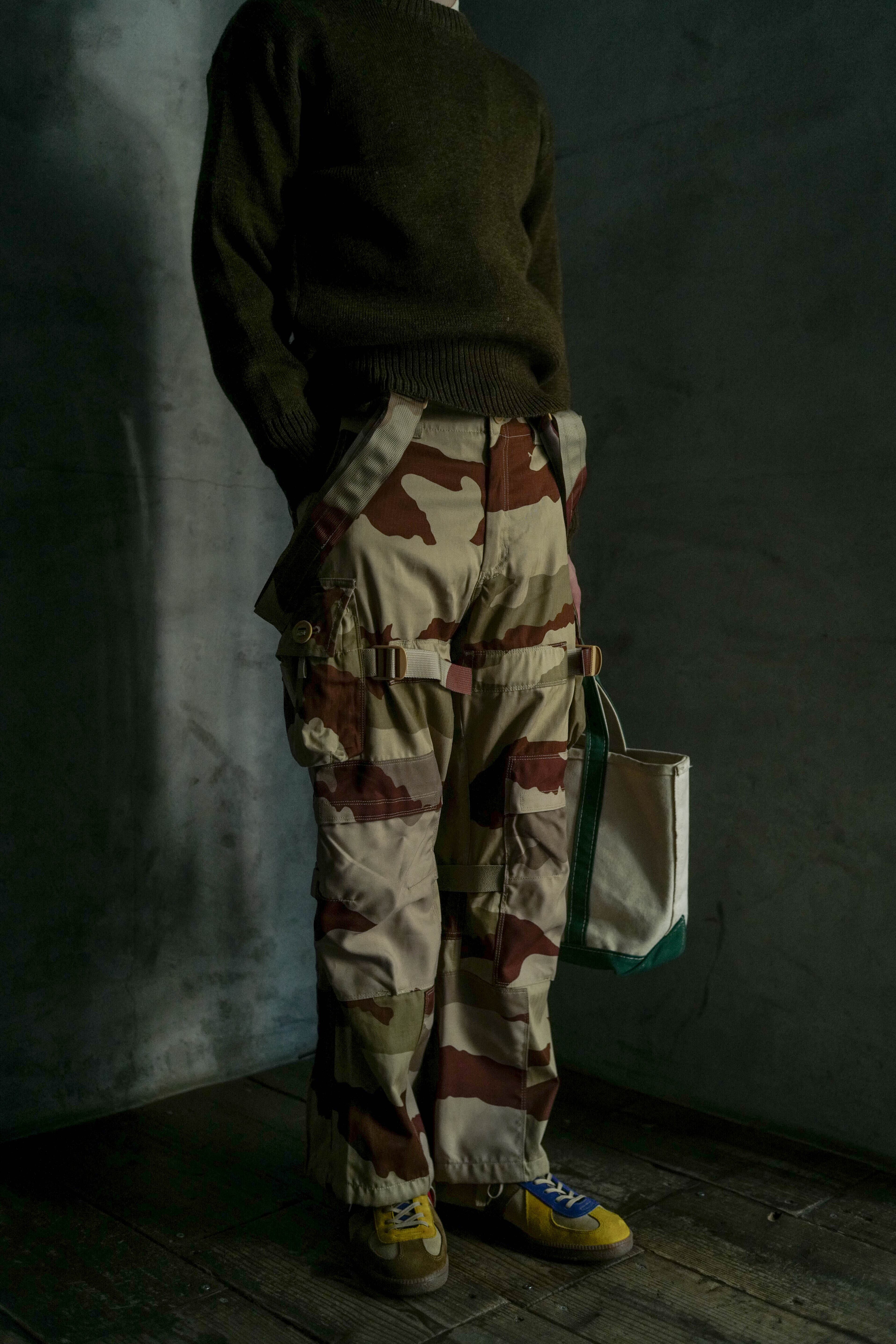 サスペンダー部分までカモ柄になっており、スタイリングに統一感を出してくれます。