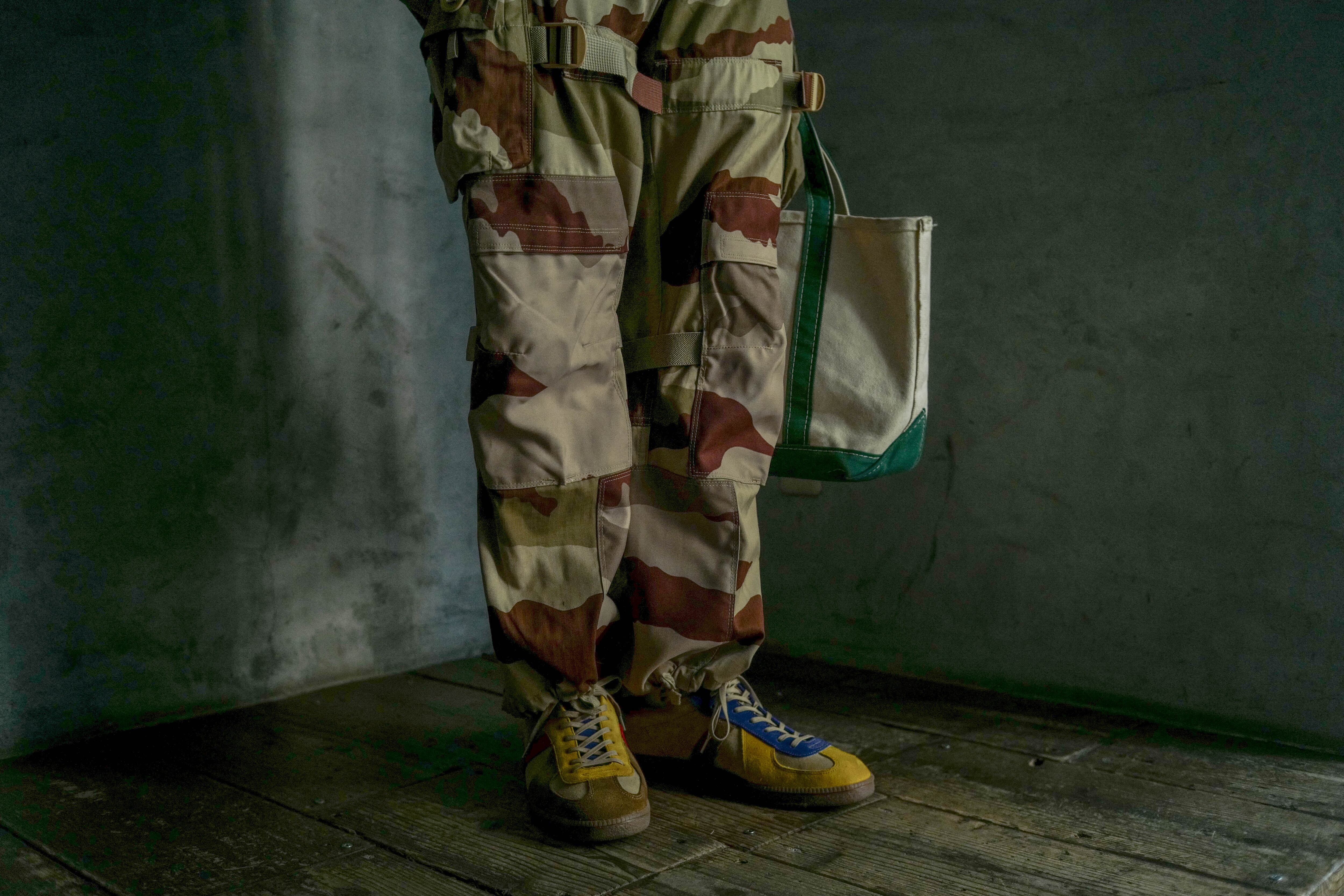 また、悪目立ちしやすいカモ柄ですが、サンドベージュと赤みのあるブラウンで構成されており、そこまで強い印象はなく取り入れやすいパターンです。