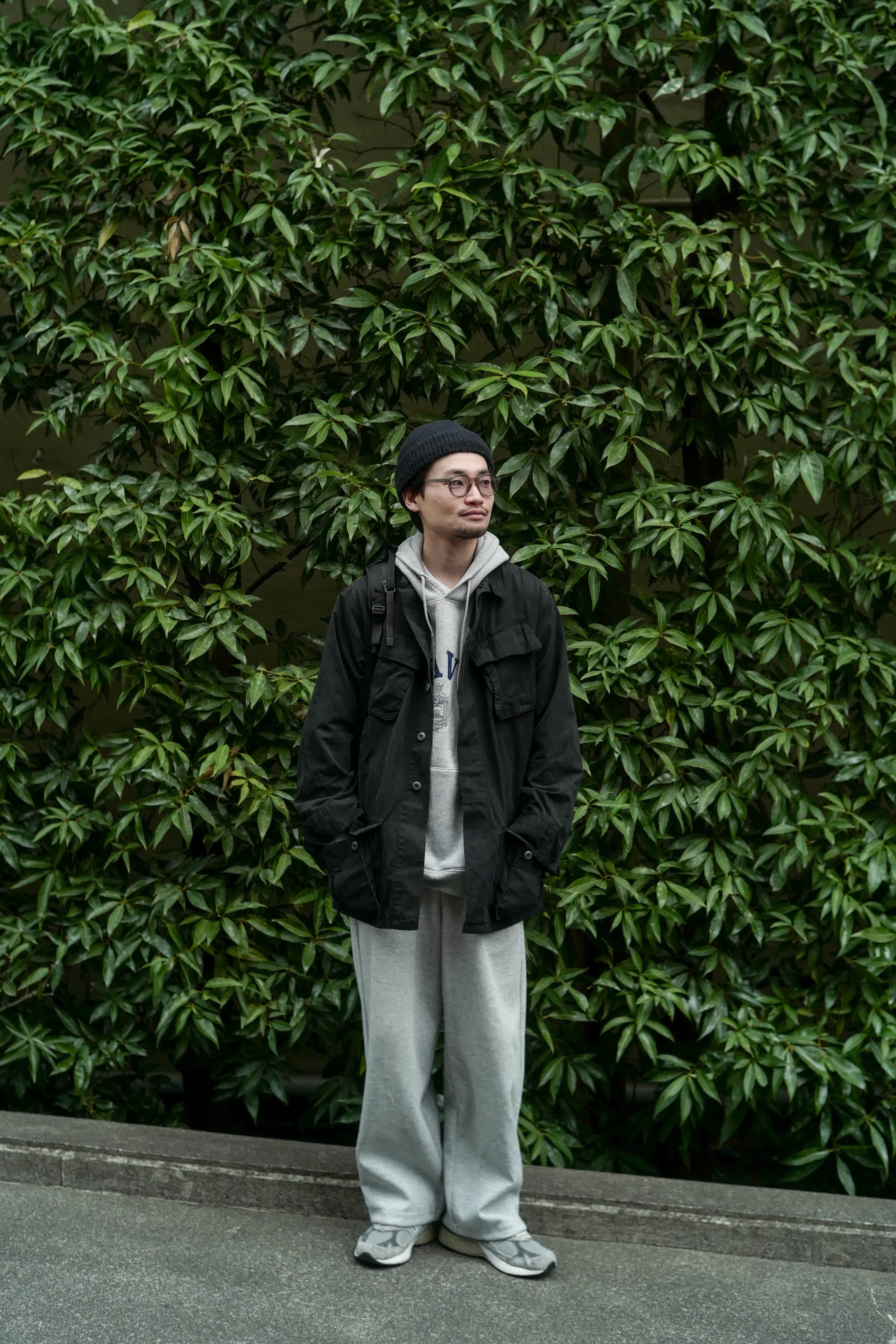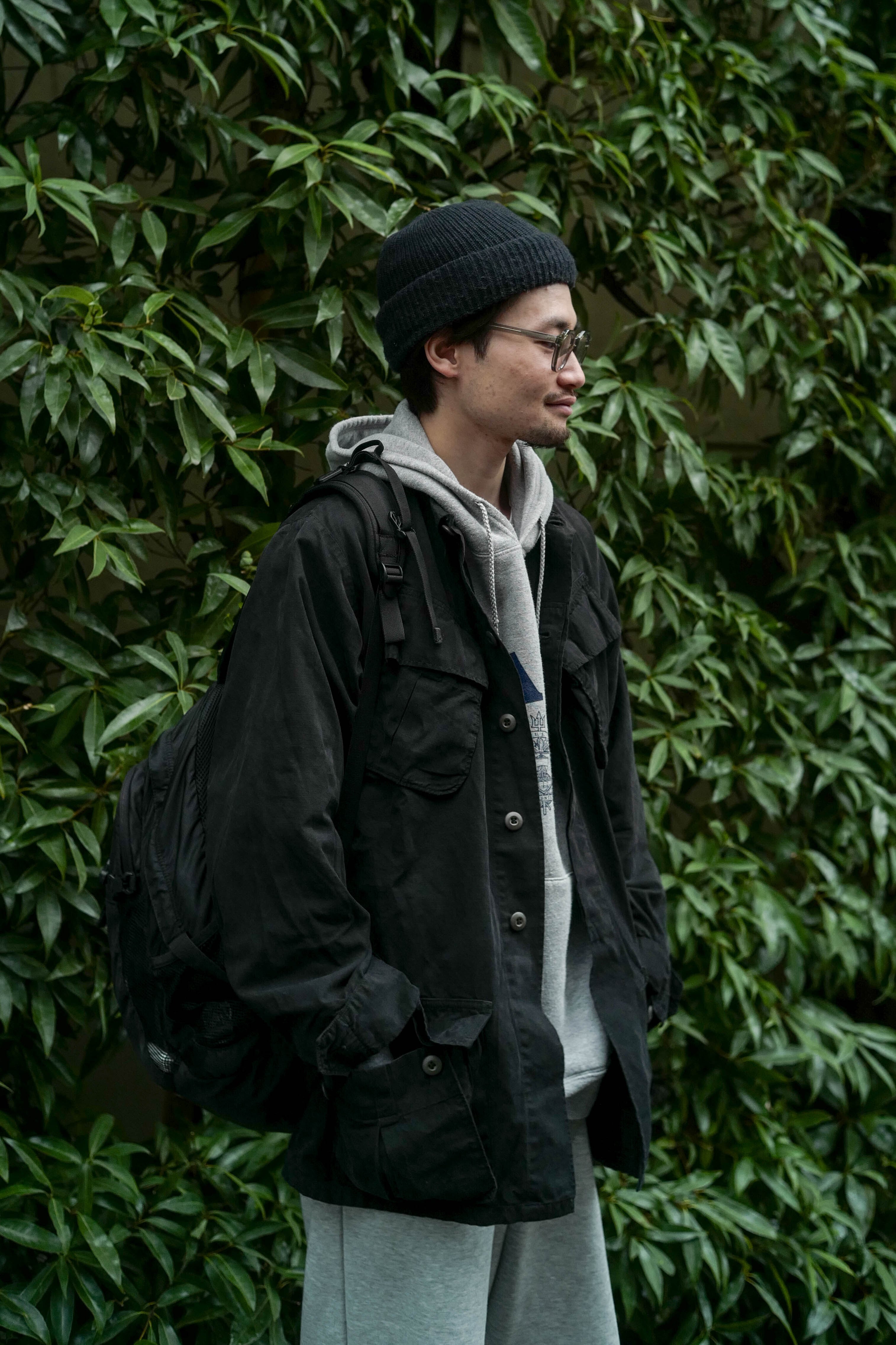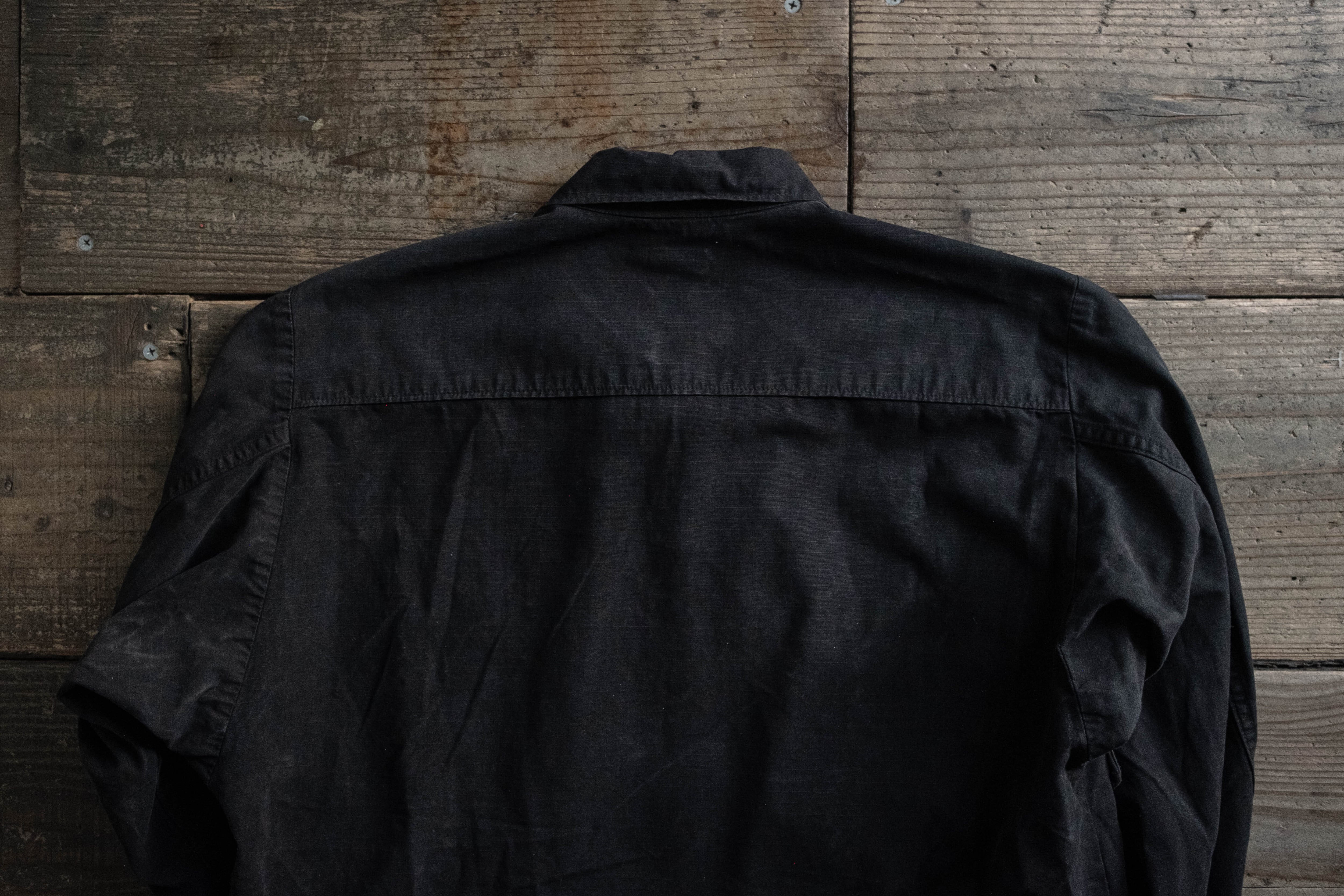 今やデザインソースとして不動の地位を持つアメリカ軍のジャングルファティーグジャケットを黒染めしました。